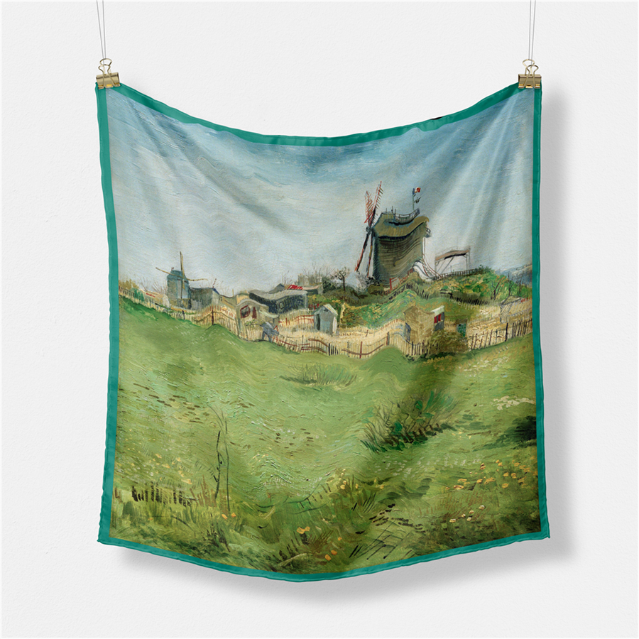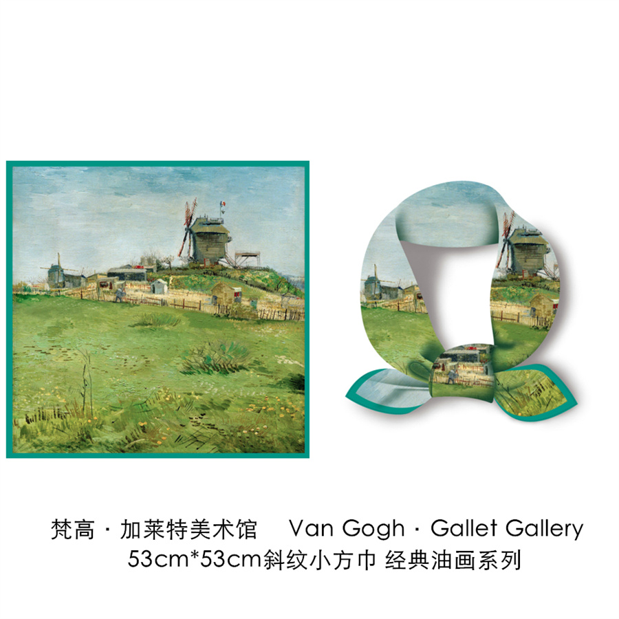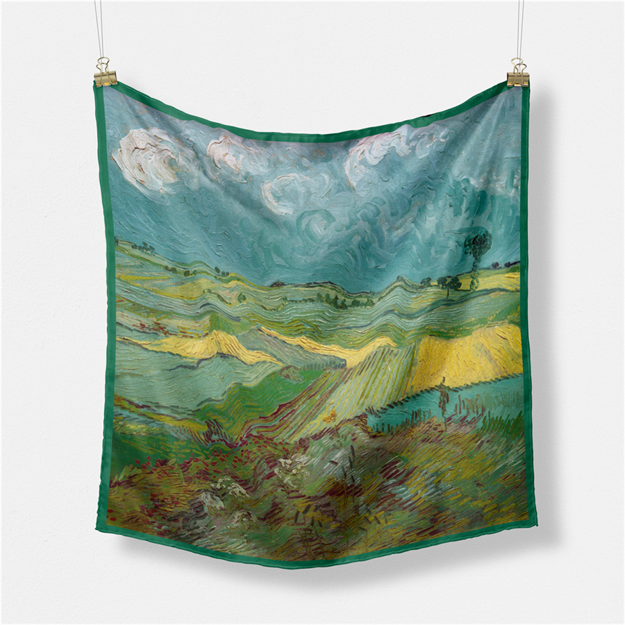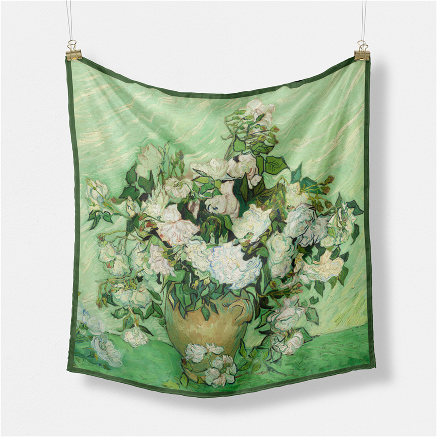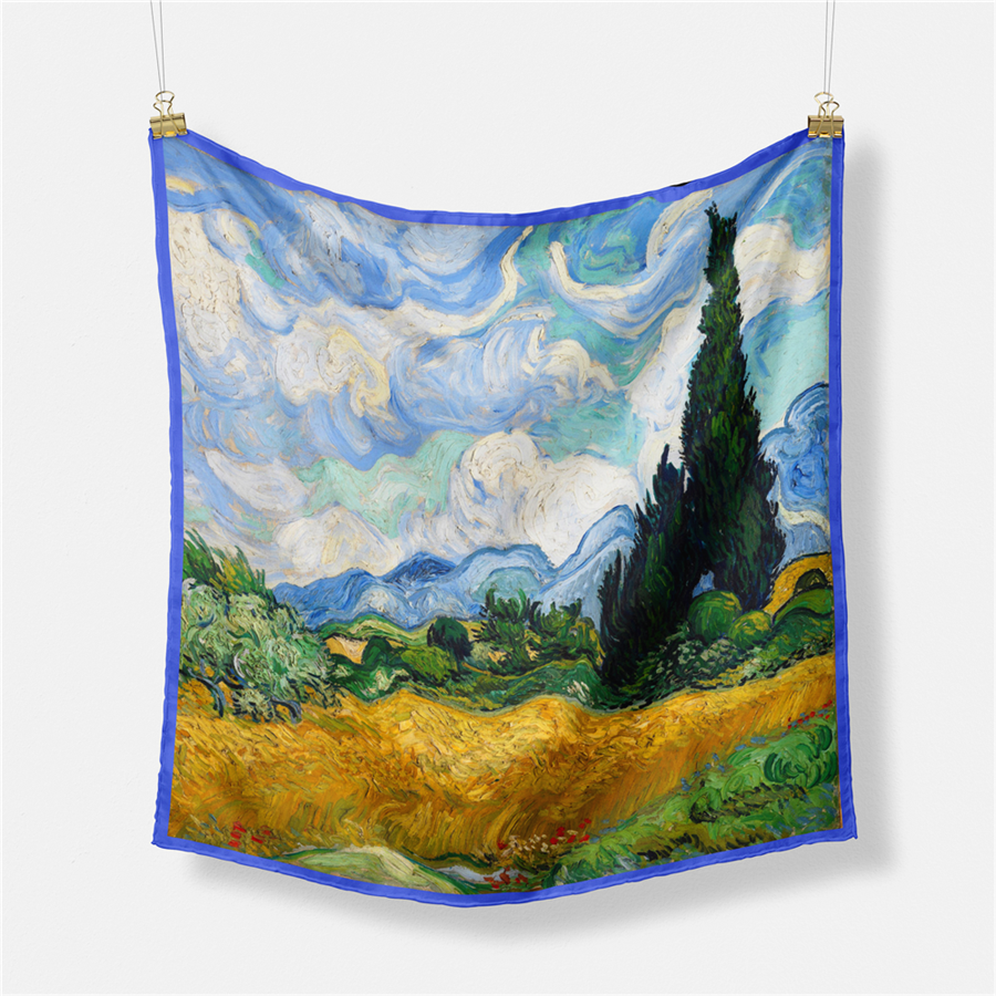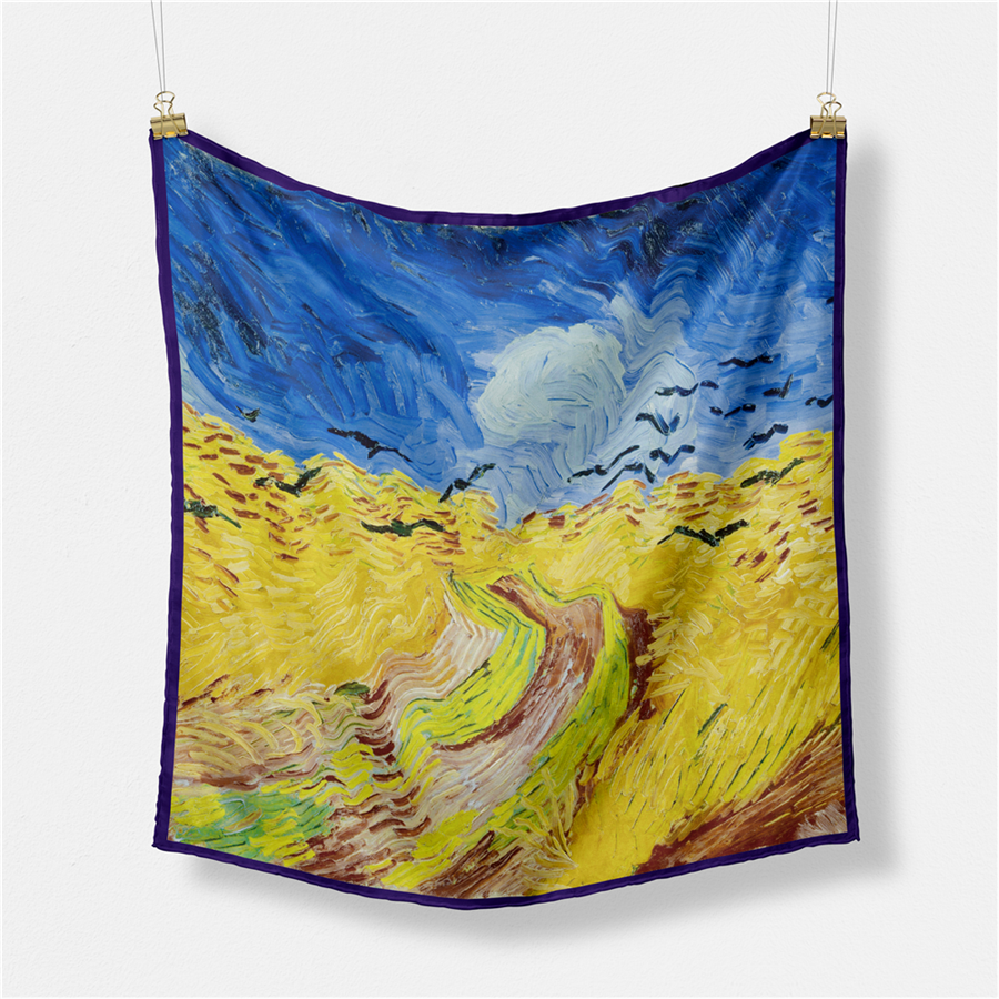 회화 장식 거실 교수형 회화 반 고흐 회화 전시회 유화 시리즈 55cm 작은 사각 스카프 스카프 2023 새로운 스타일