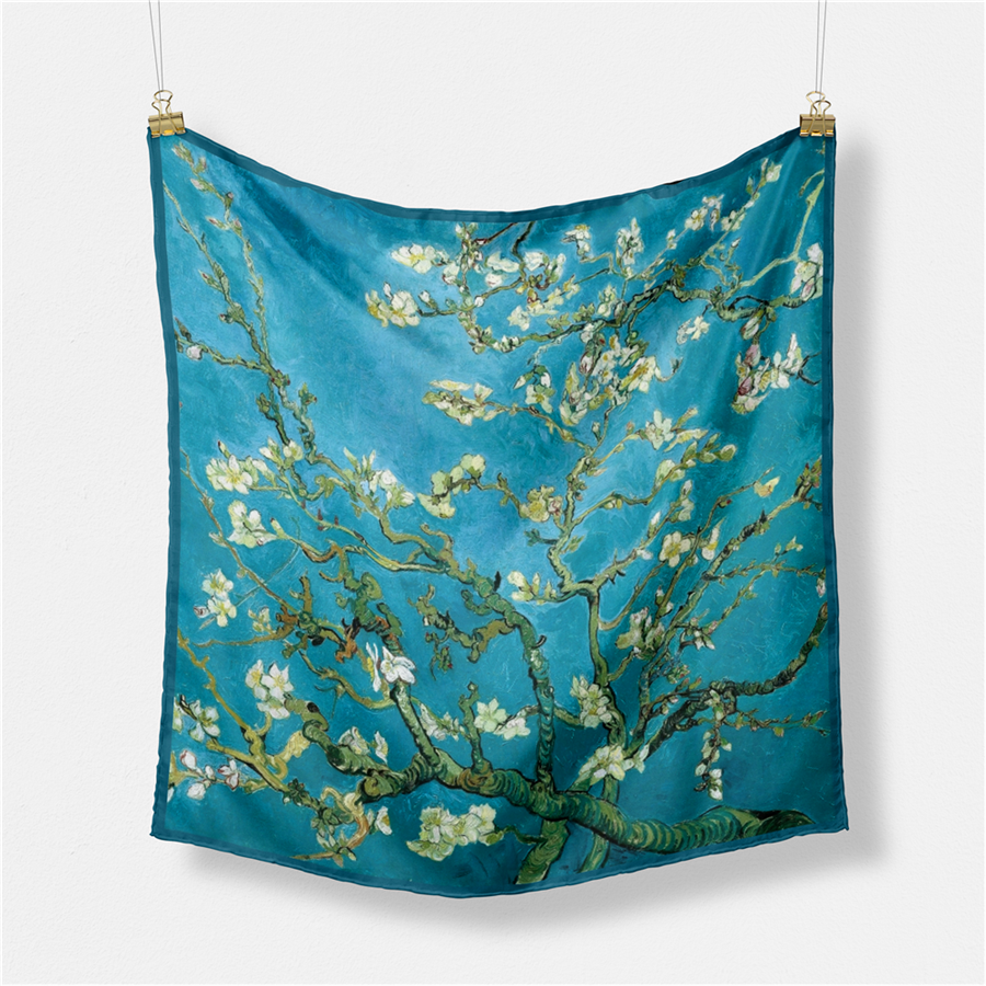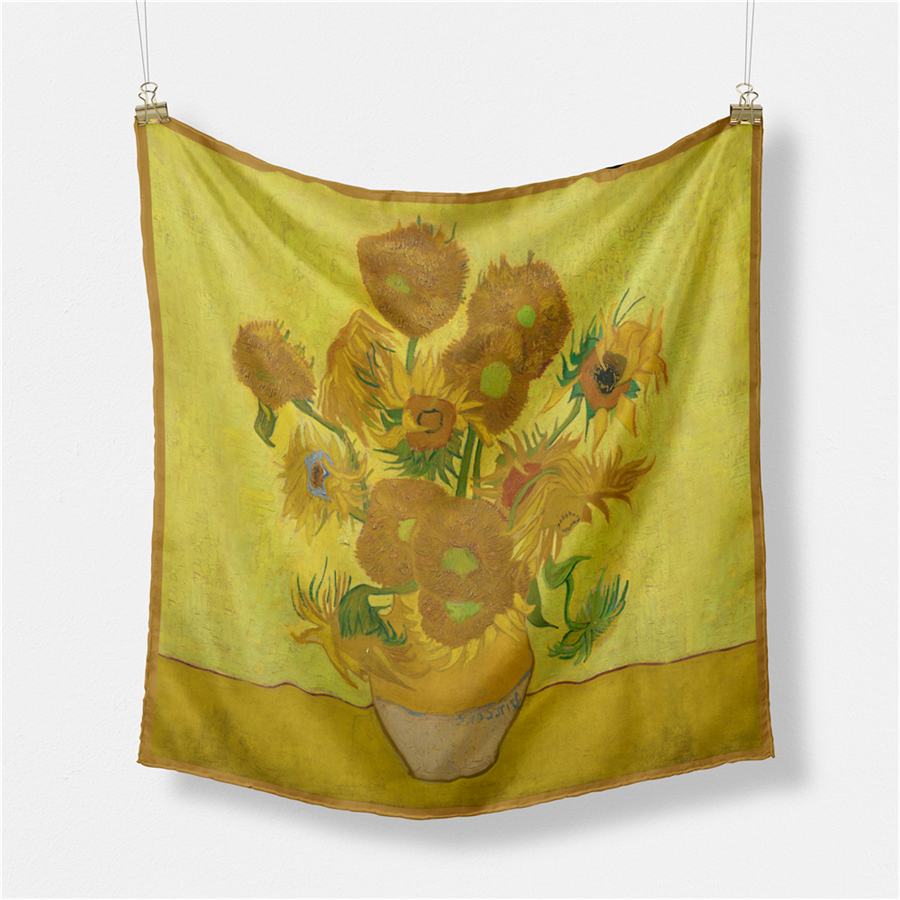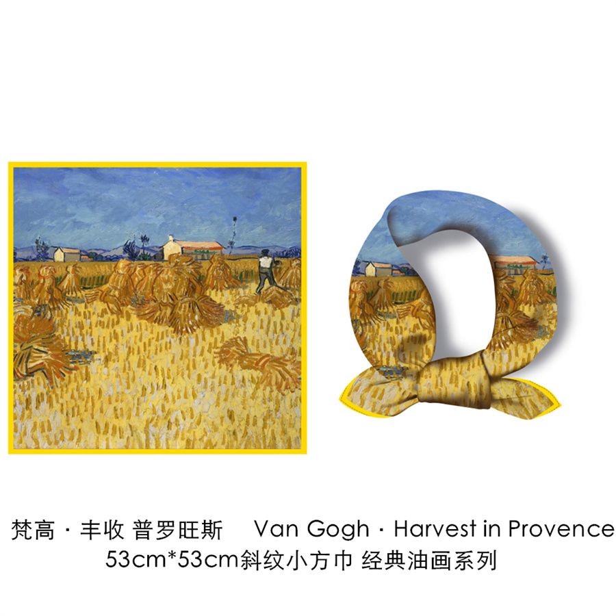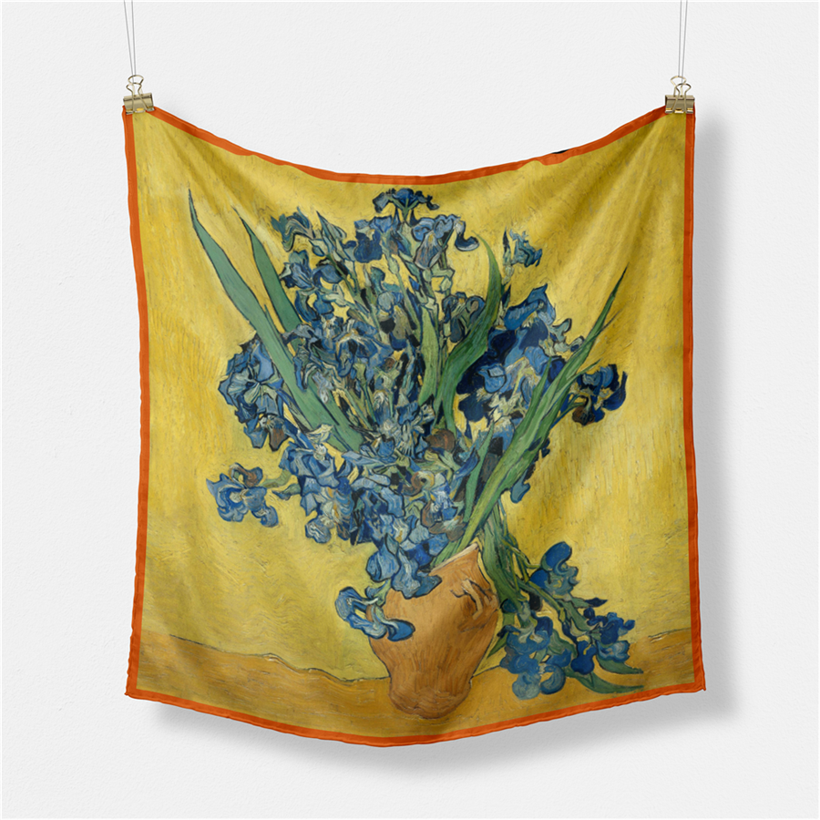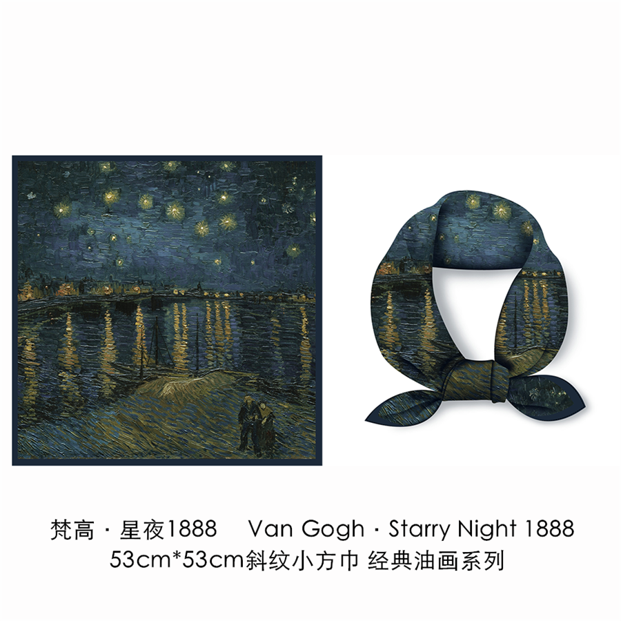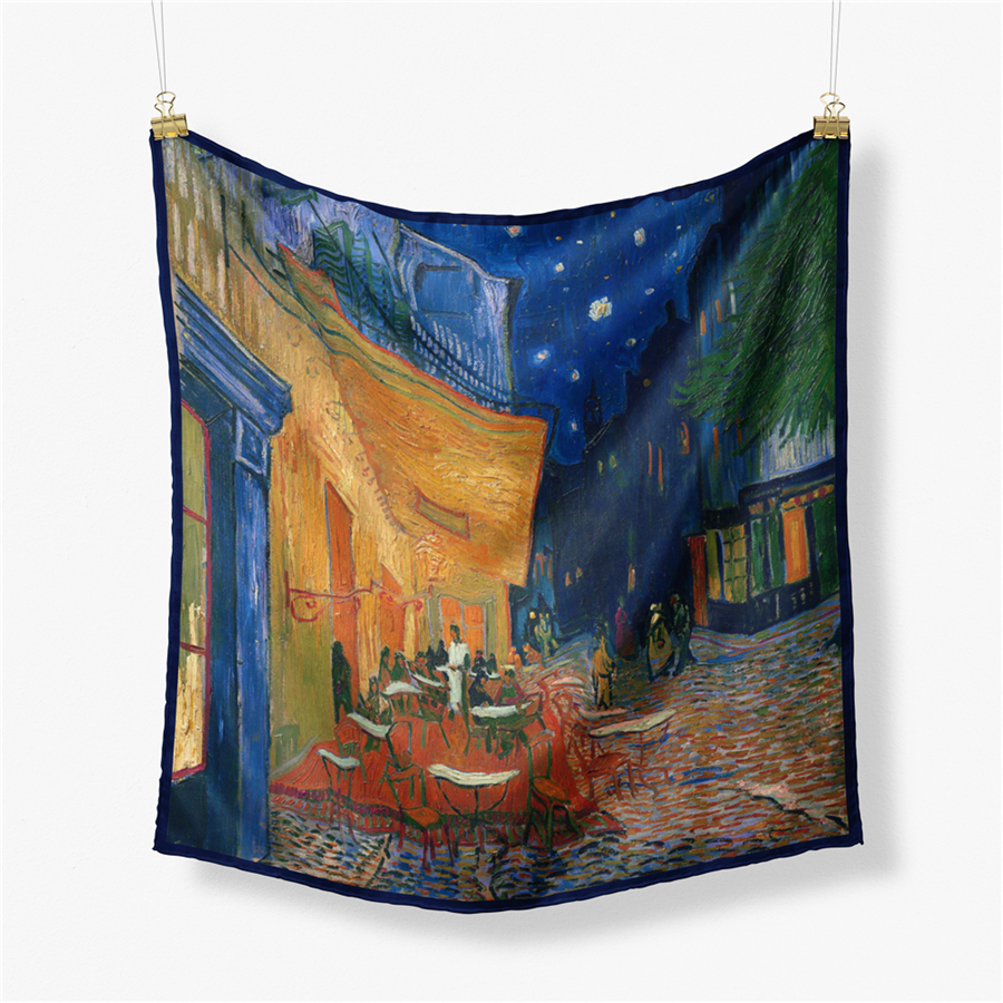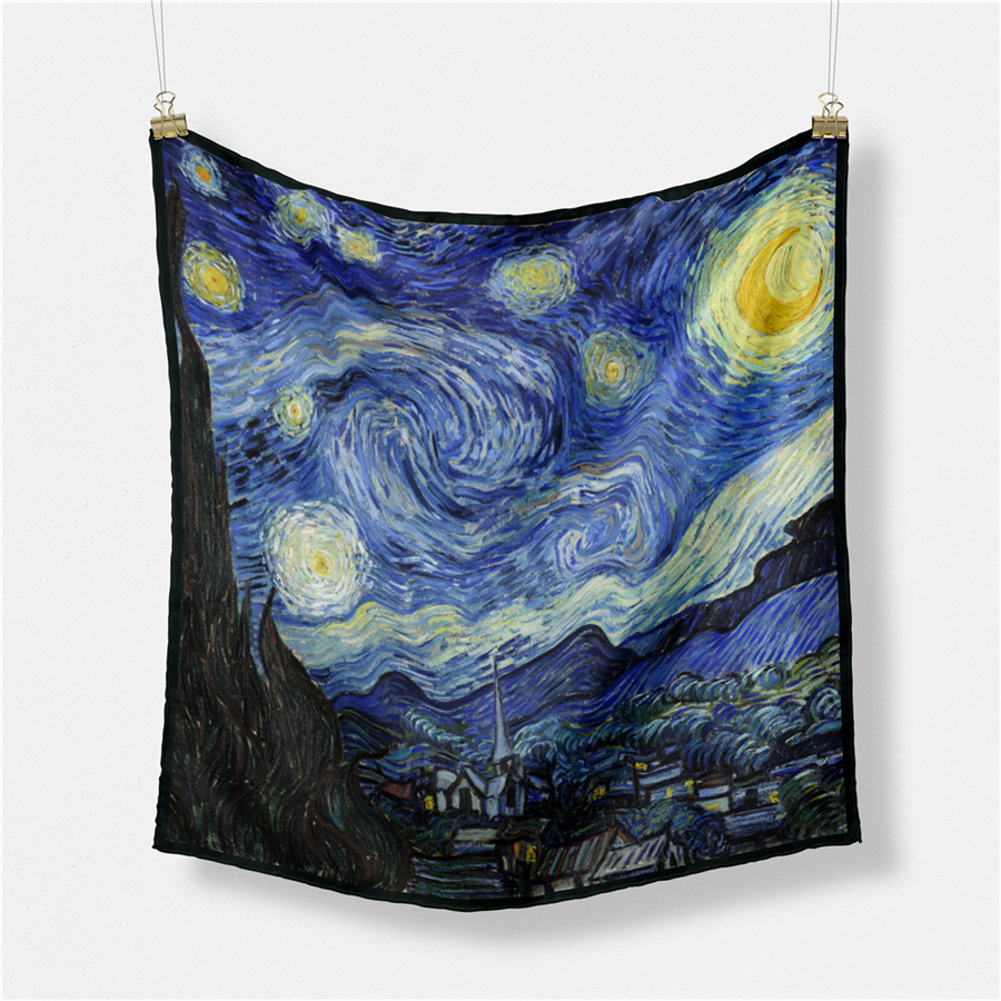 회화 장식 거실 교수형 회화 반 고흐 회화 전시회 유화 시리즈 55cm 작은 사각 스카프 스카프 2023 새로운 스타일스토어 가기