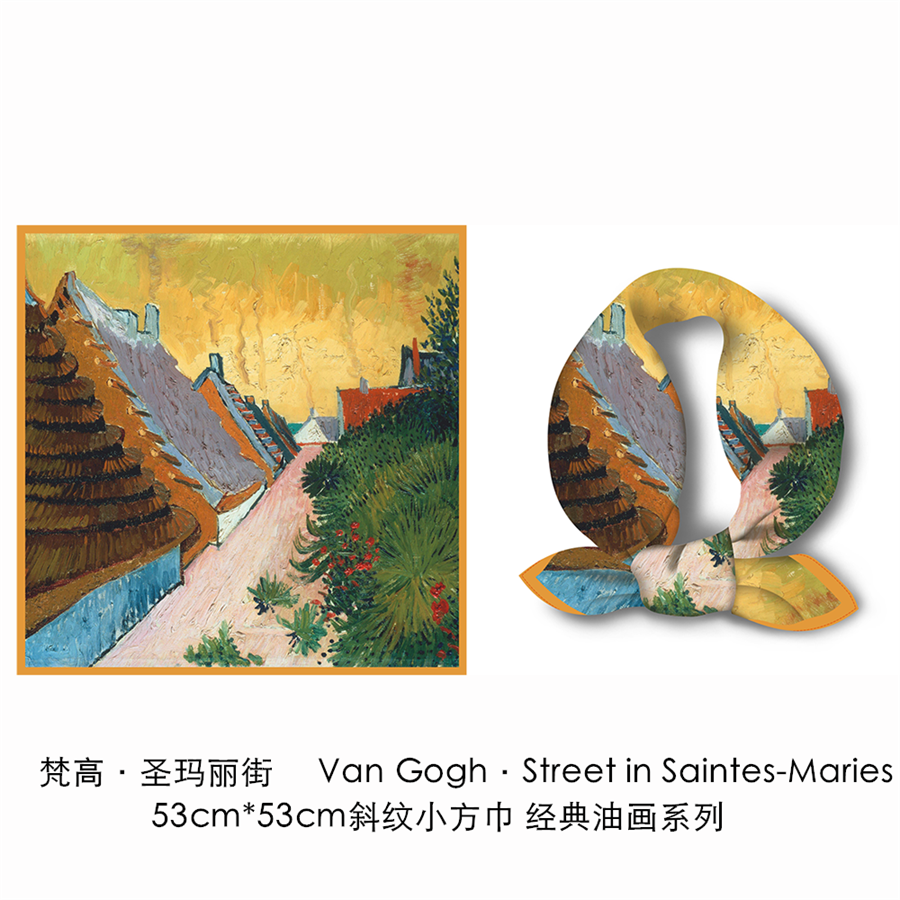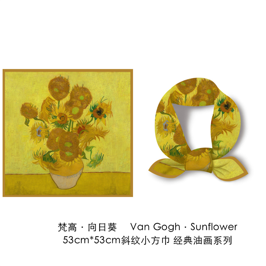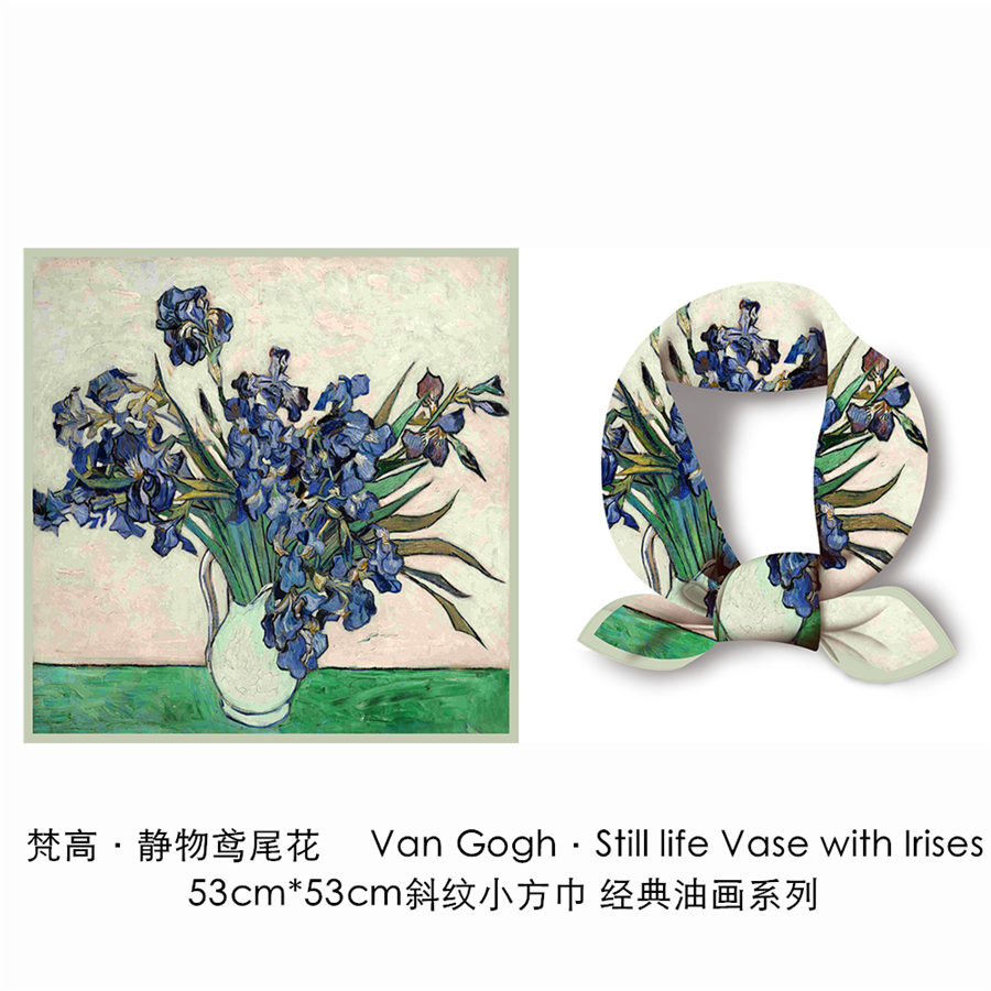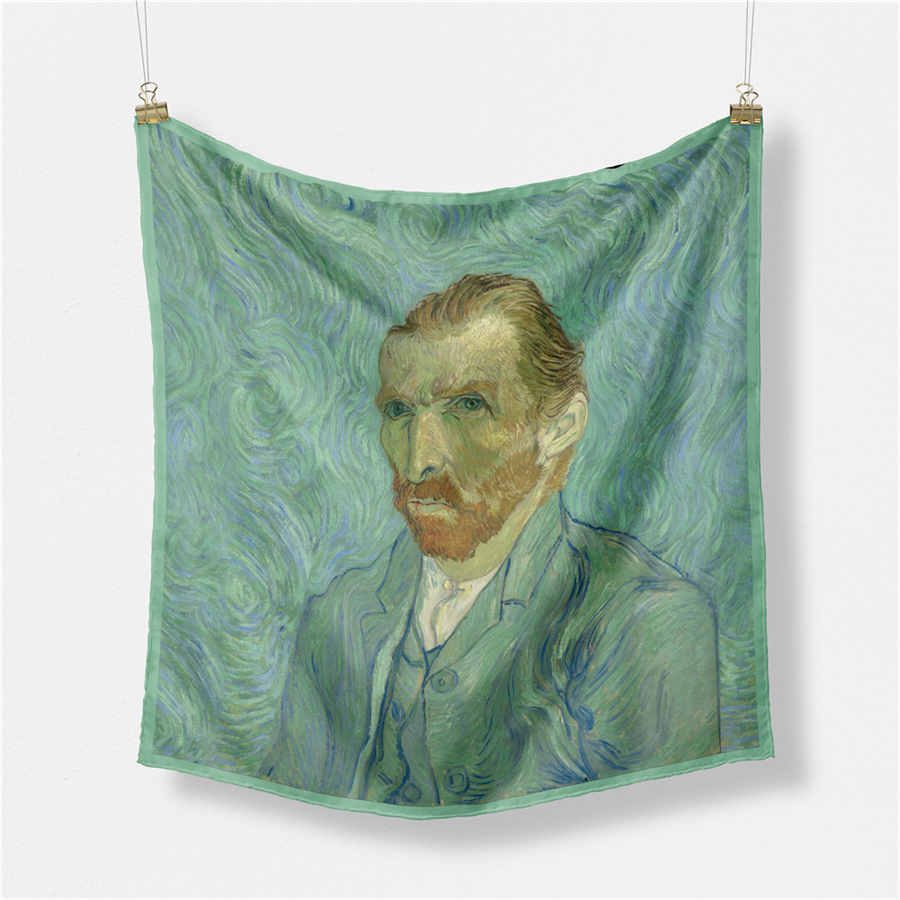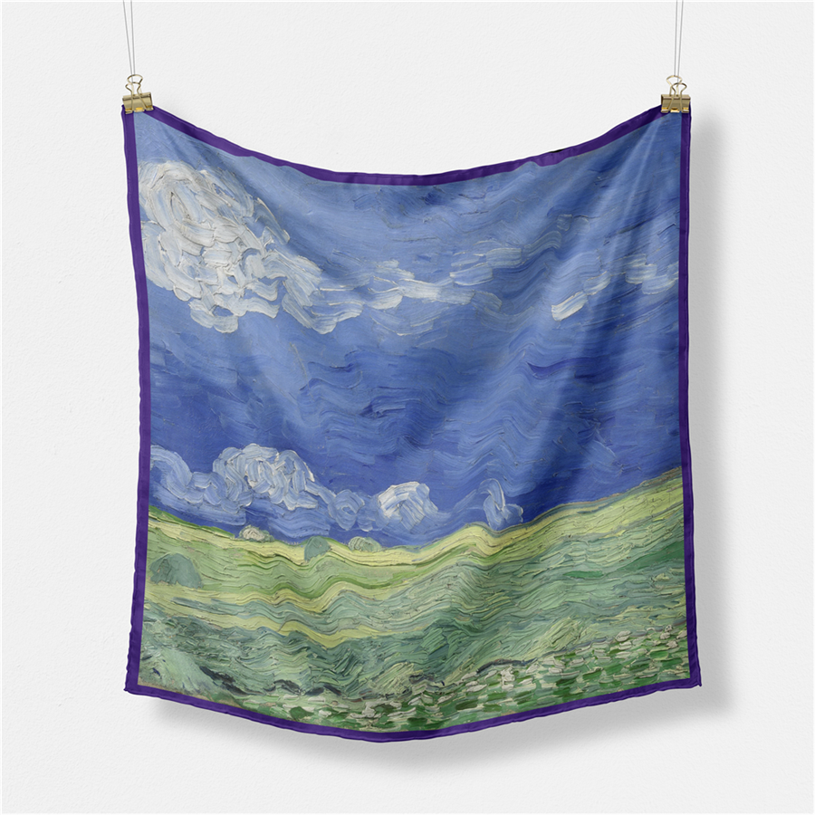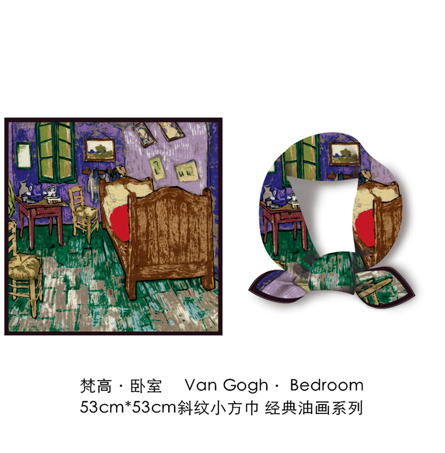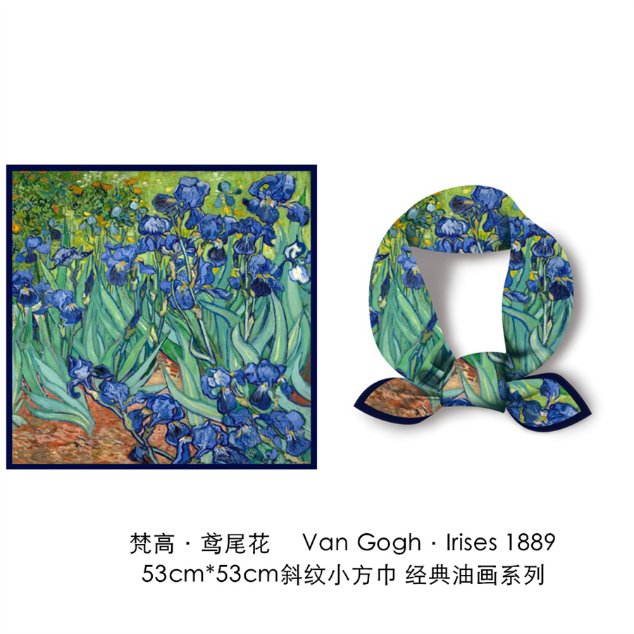 회화 장식 거실 교수형 회화 반 고흐 회화 전시회 유화 시리즈 55cm 작은 사각 스카프 스카프 2023 새로운 스타일스토어 가기