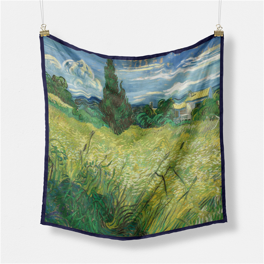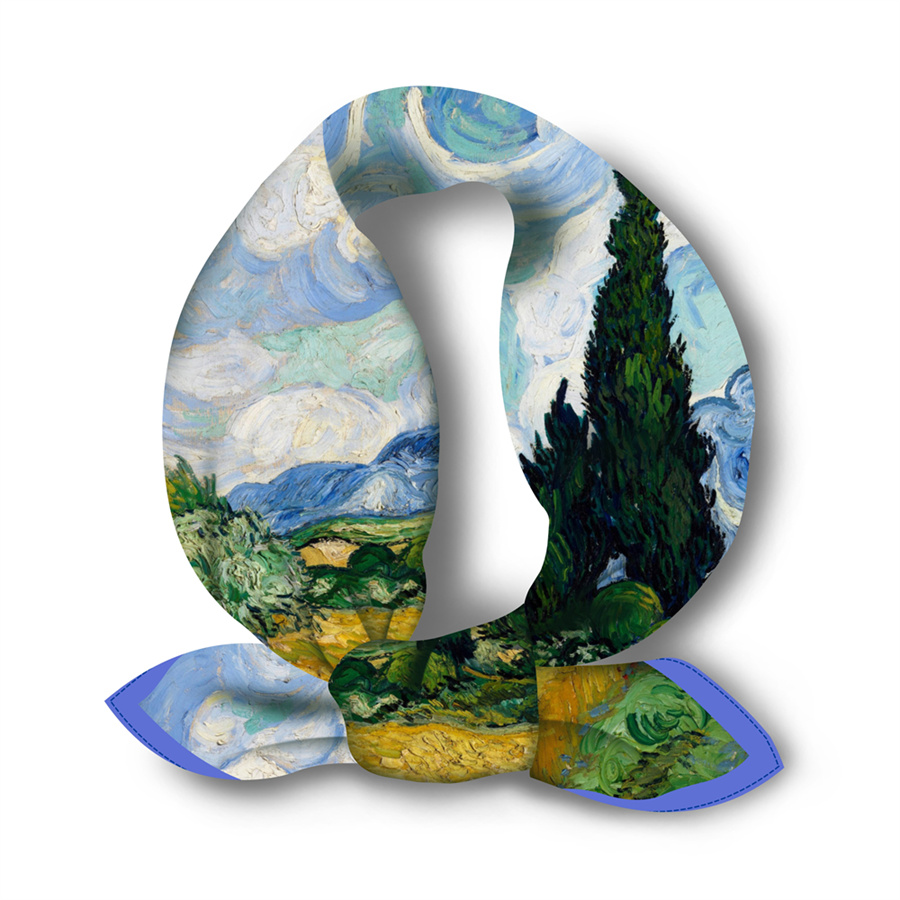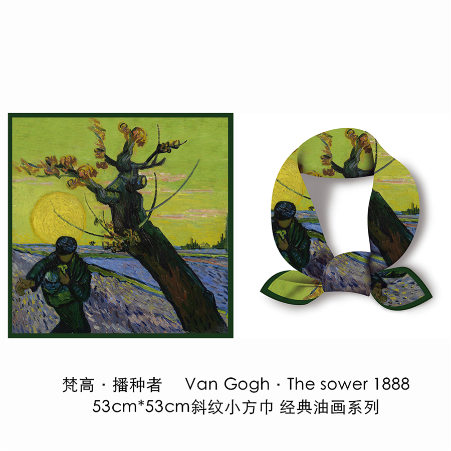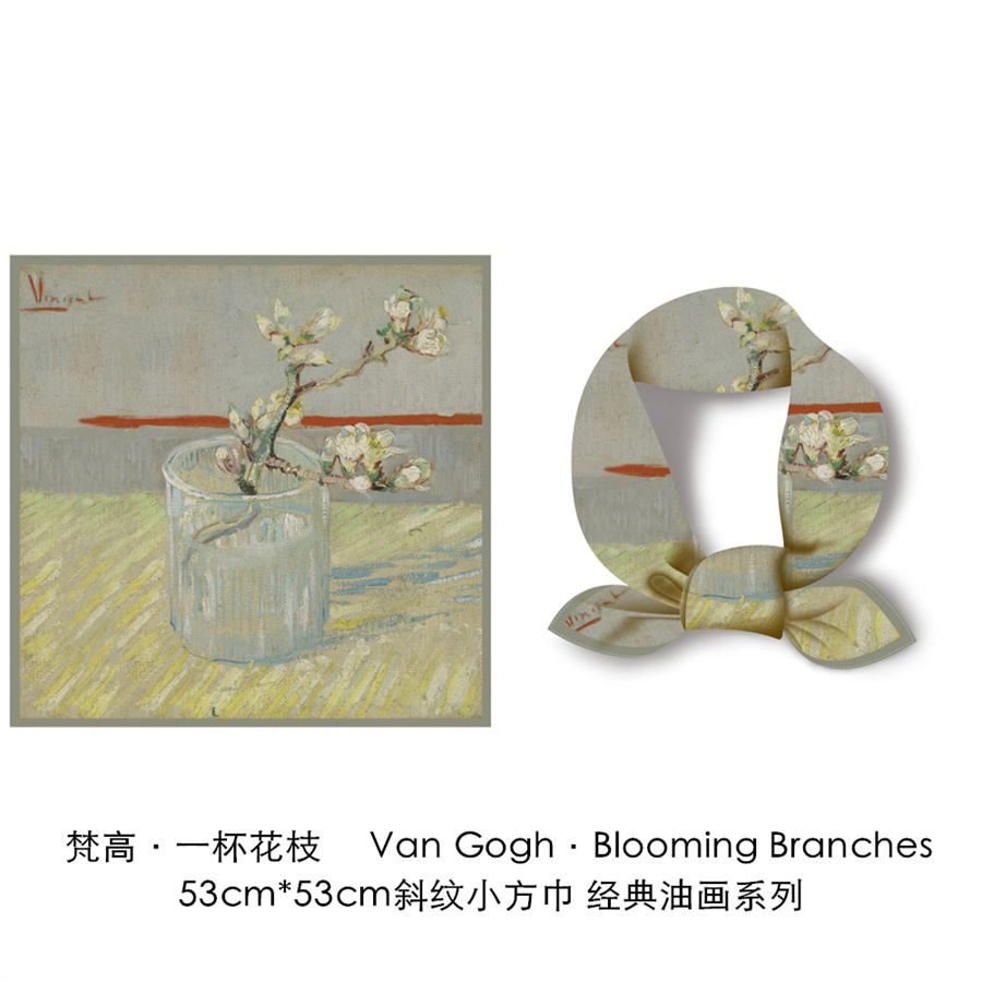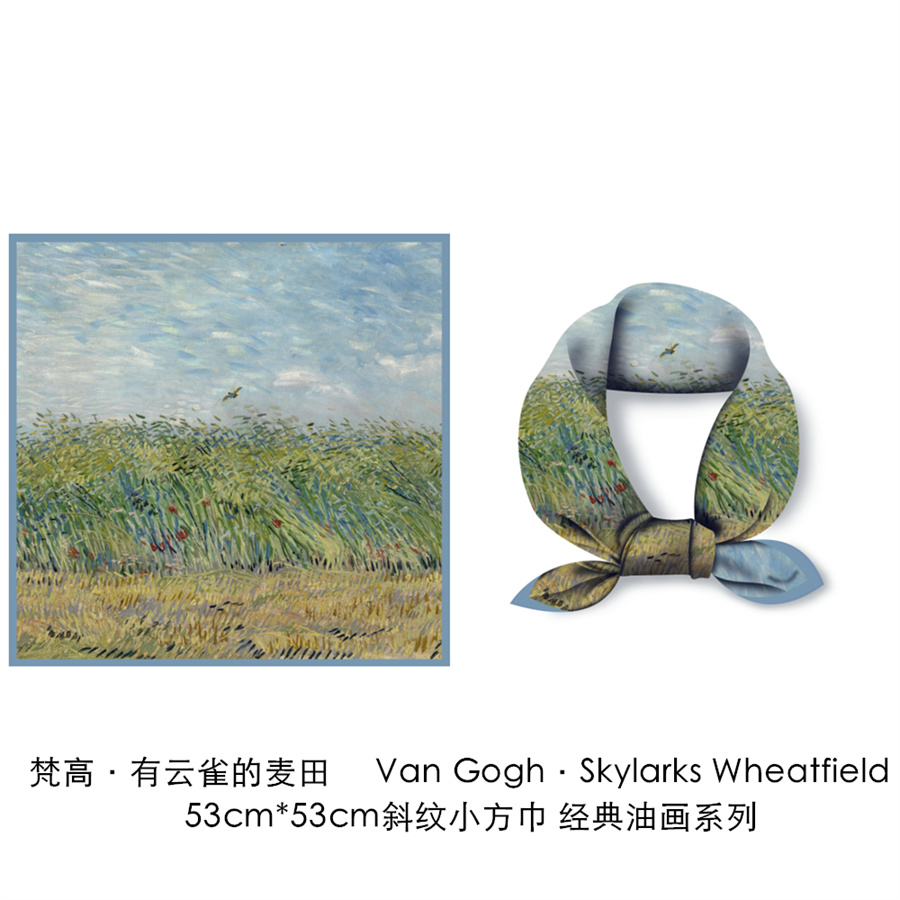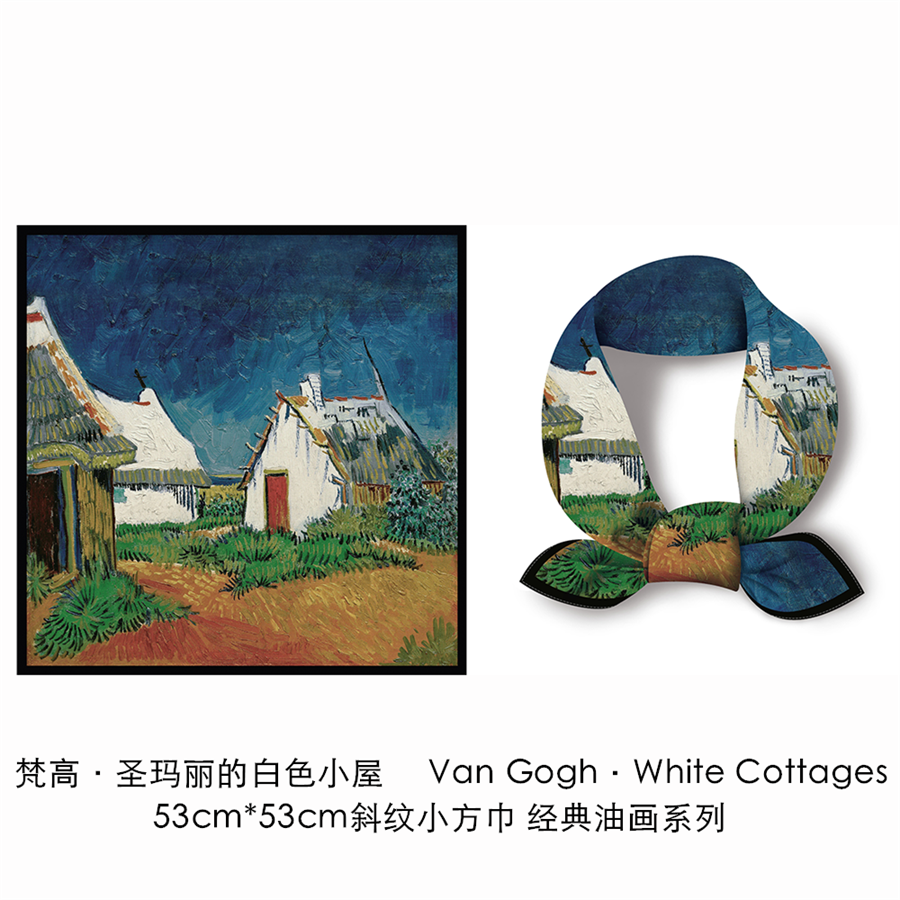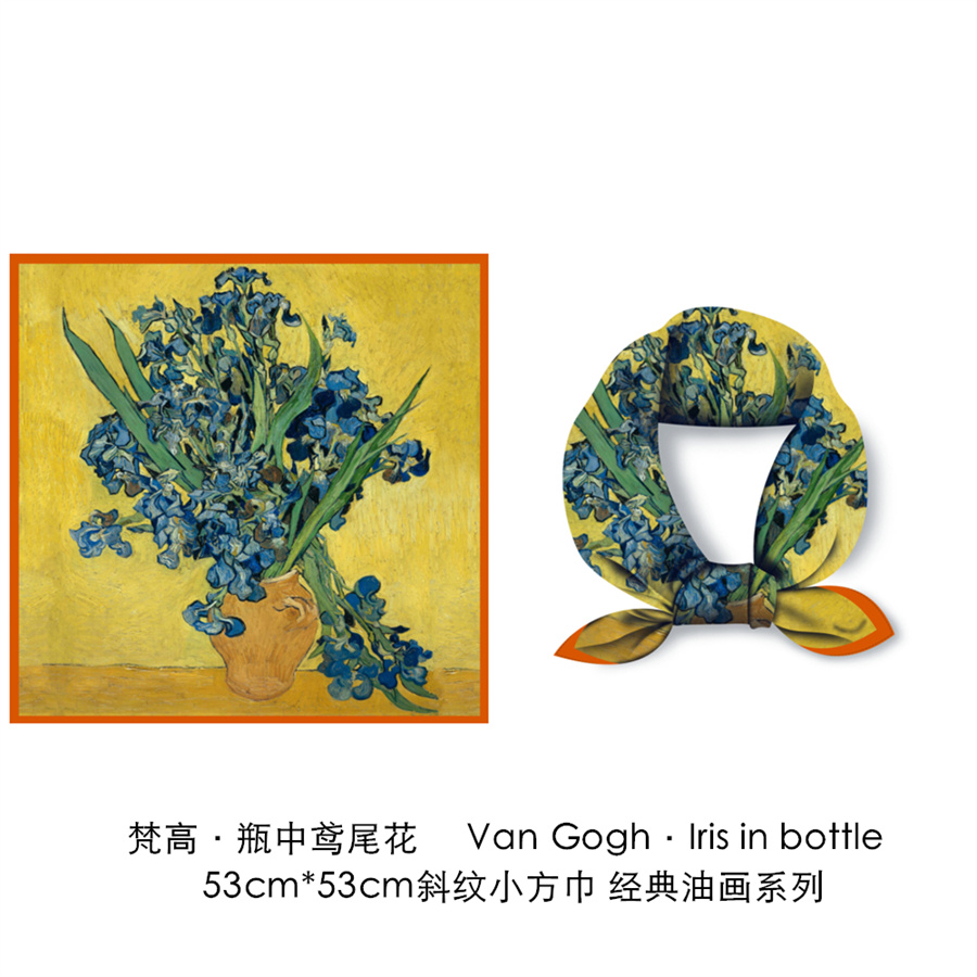 회화 장식 거실 교수형 회화 반 고흐 회화 전시회 유화 시리즈 55cm 작은 사각 스카프 스카프 2023 새로운 스타일스토어 가기