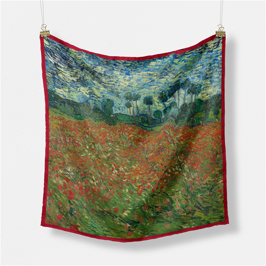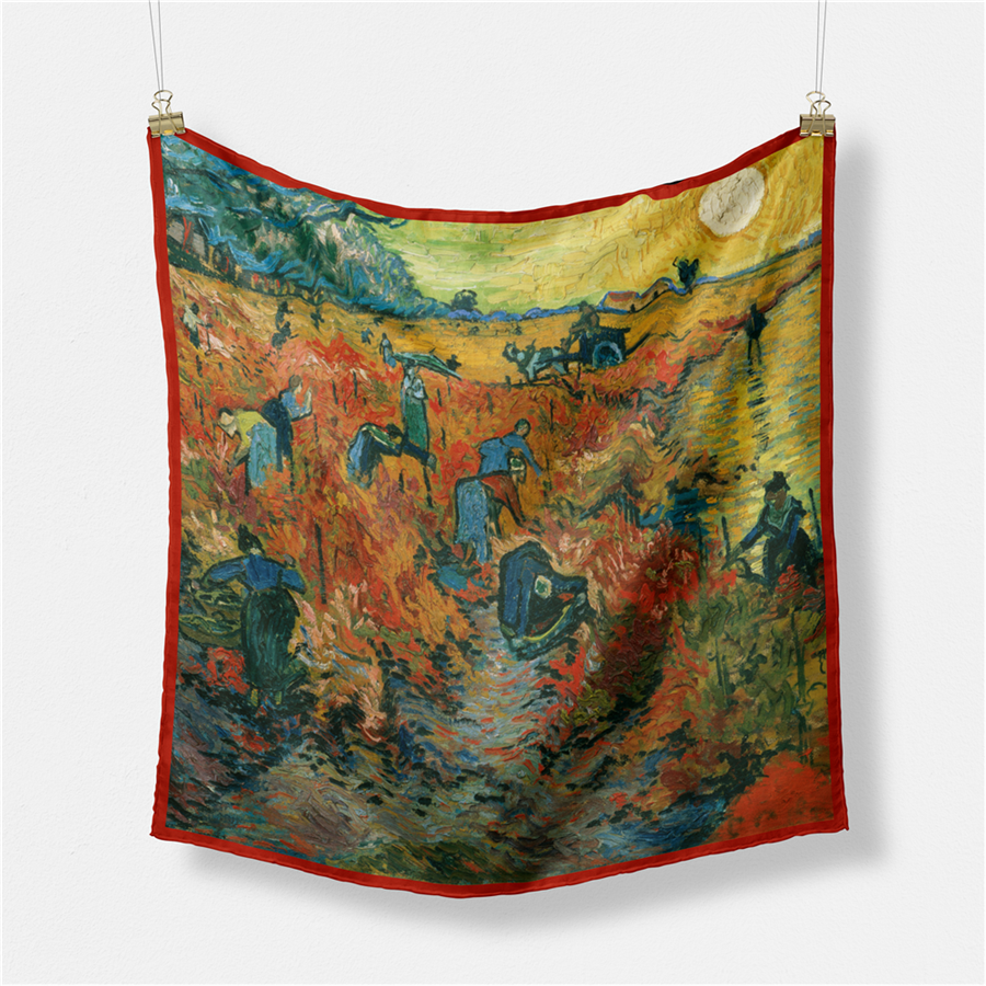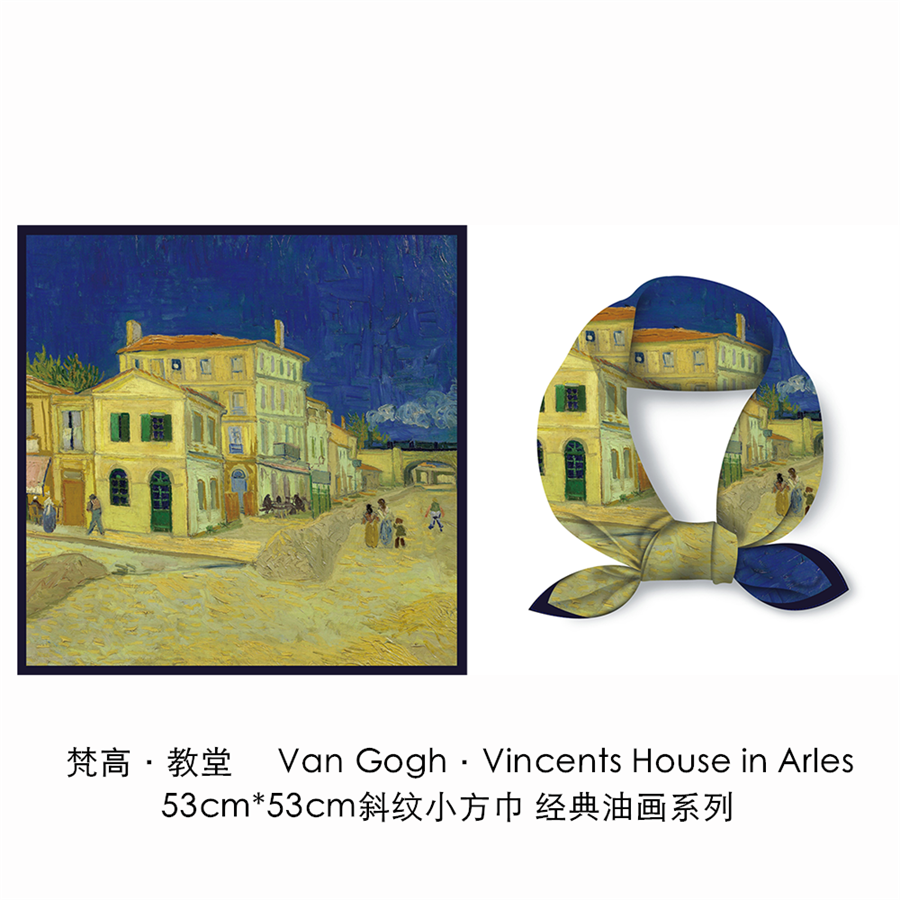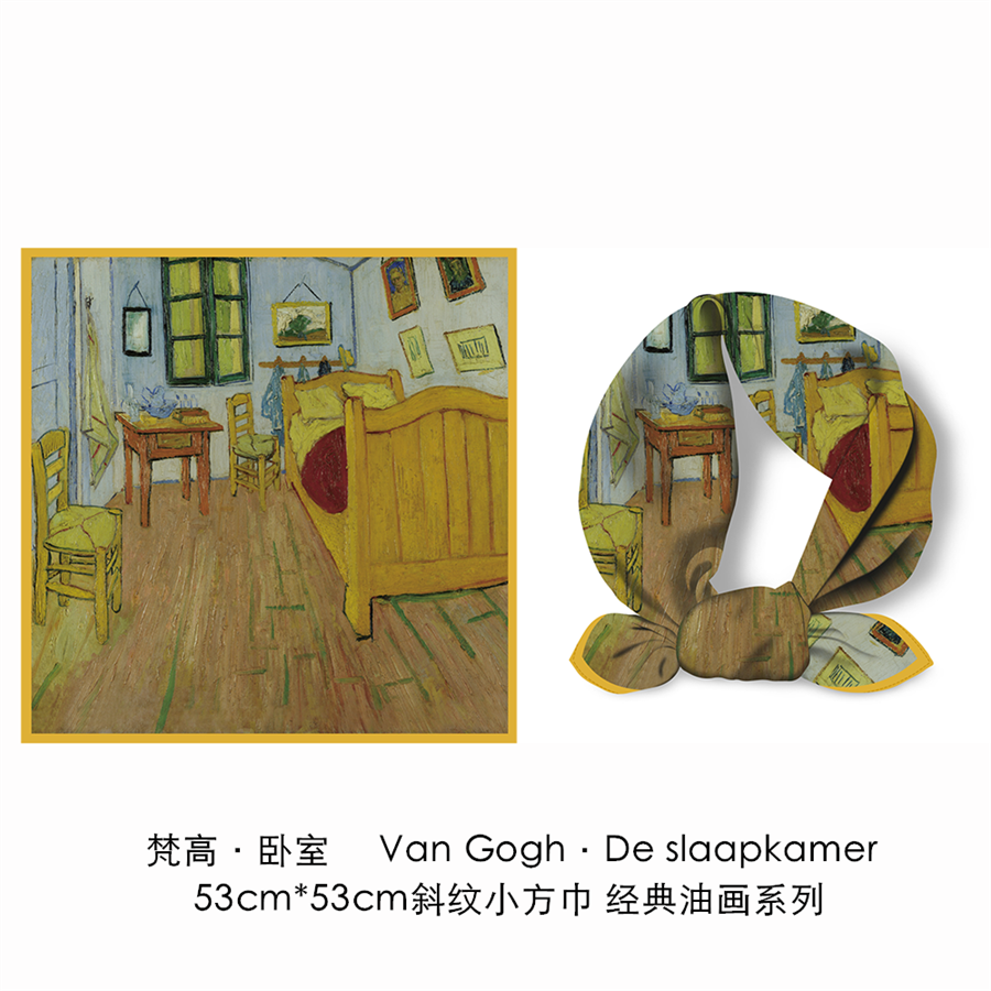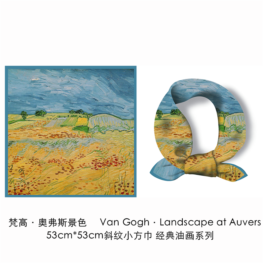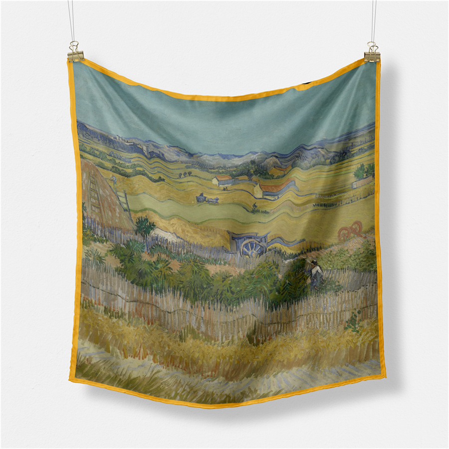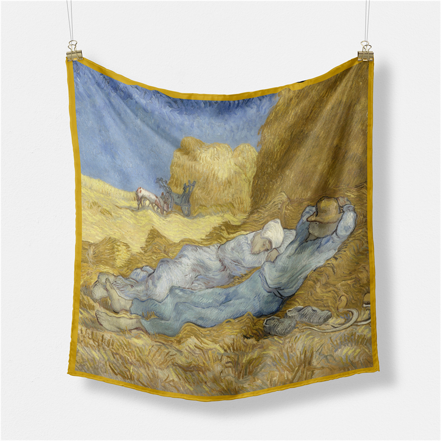 회화 장식 거실 교수형 회화 반 고흐 회화 전시회 유화 시리즈 55cm 작은 사각 스카프 스카프 2023 새로운 스타일스토어 가기