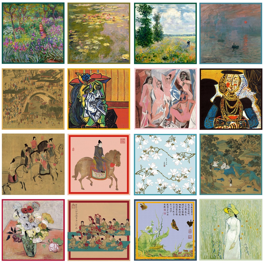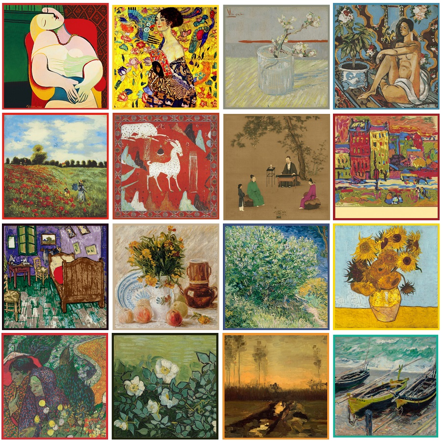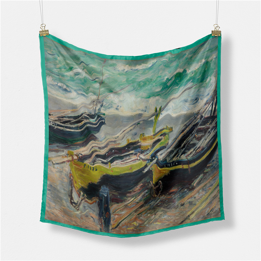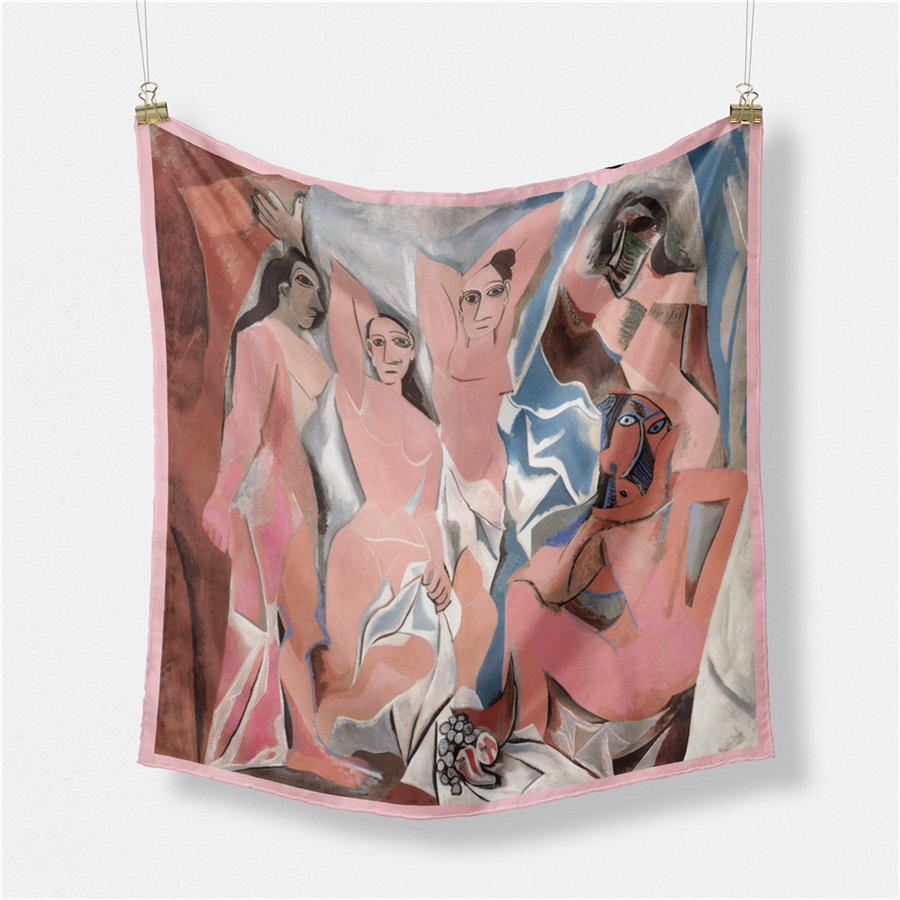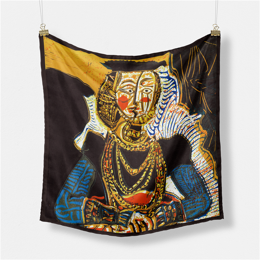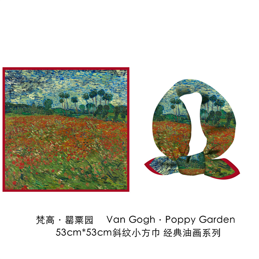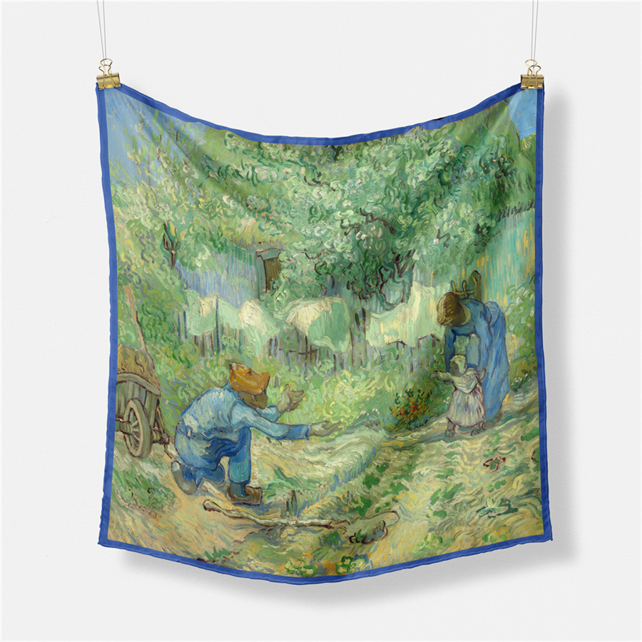 회화 장식 거실 교수형 회화 반 고흐 회화 전시회 유화 시리즈 55cm 작은 사각 스카프 스카프 2023 새로운 스타일스토어 가기