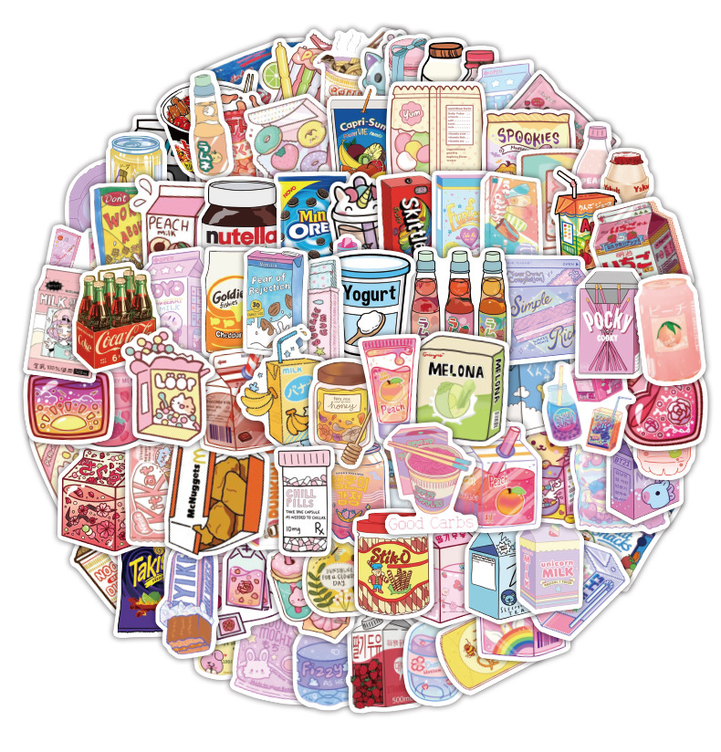 100 만화 간식 선물 가방 스티커 귀여운 원래 우유 콜라 비스킷 세척 컵 방수 작은 스티커