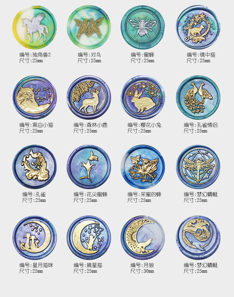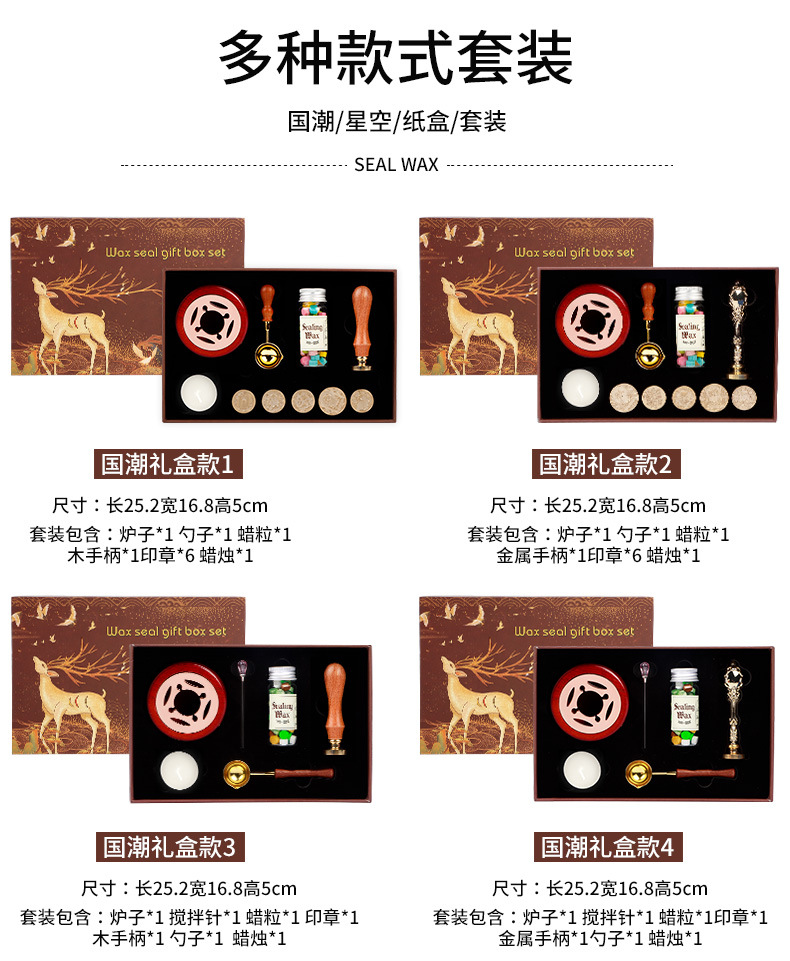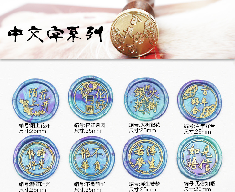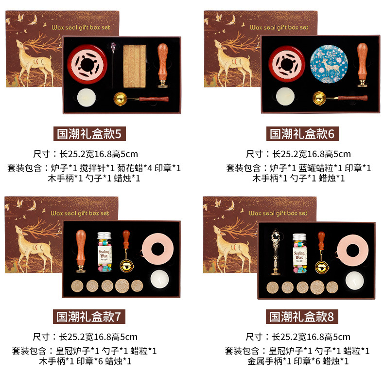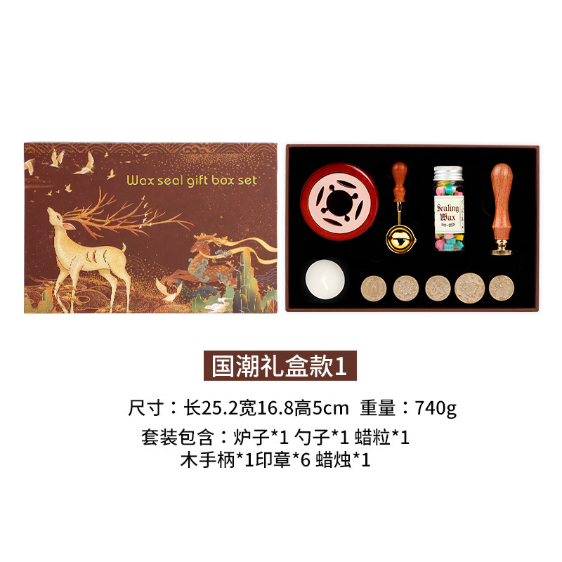 • Guochao 세트 1 (나무 손잡이가 달린 6 개의 씰)