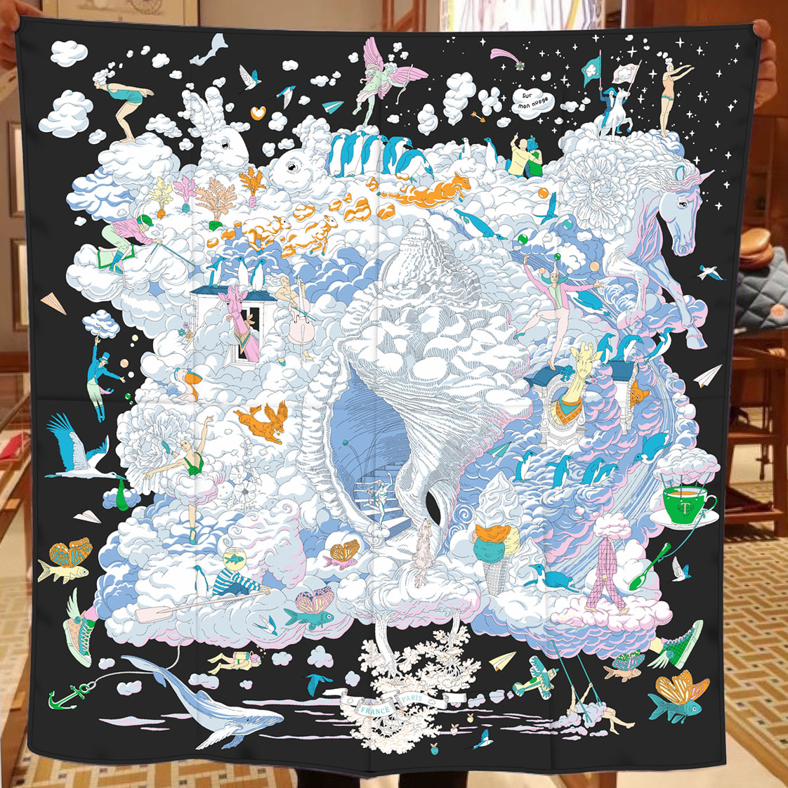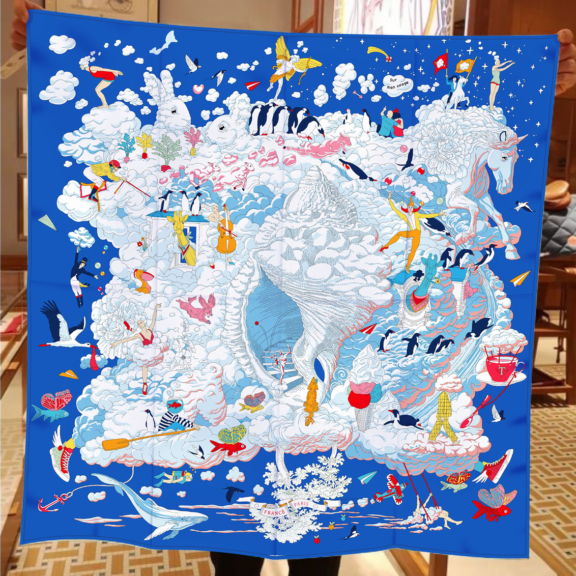 [구름 사이의 나의 비엔티안] 어드밴스드 센스 2022 올해의 새로운 모든 매치 프린트 스퀘어 스카프 여성용 봄과 가을 스카프