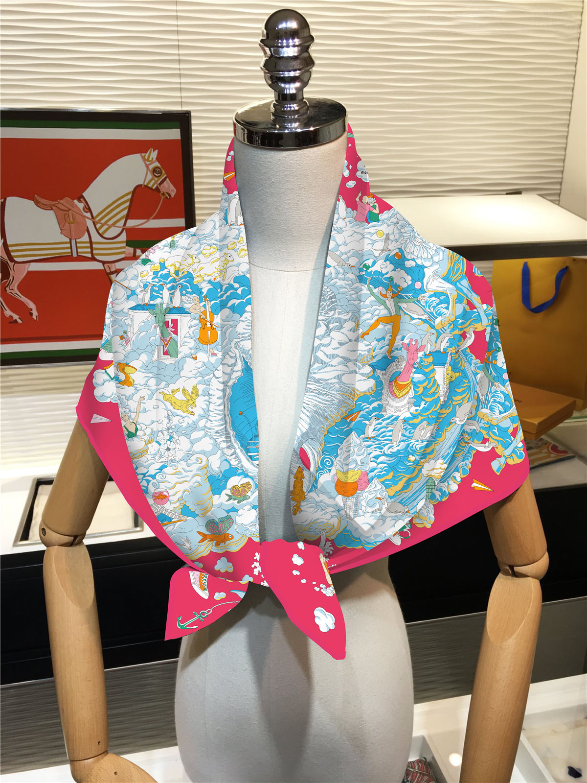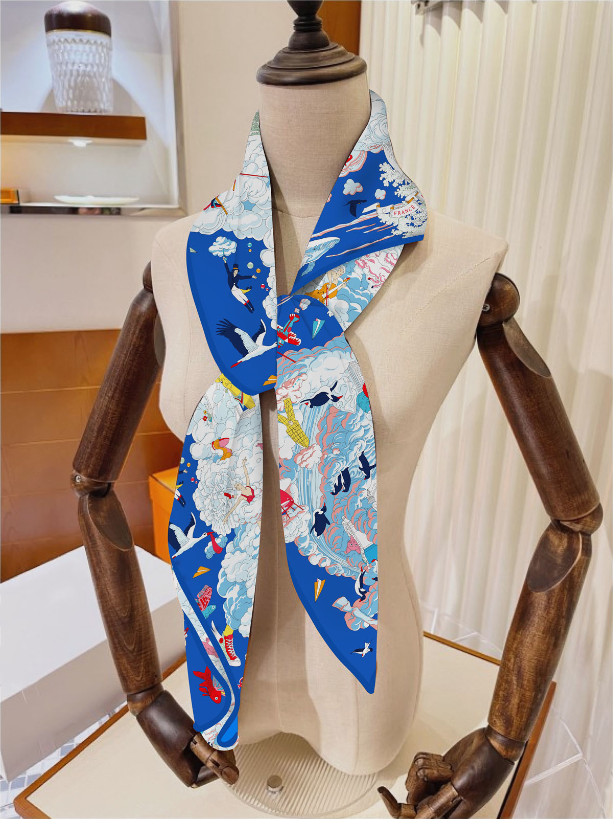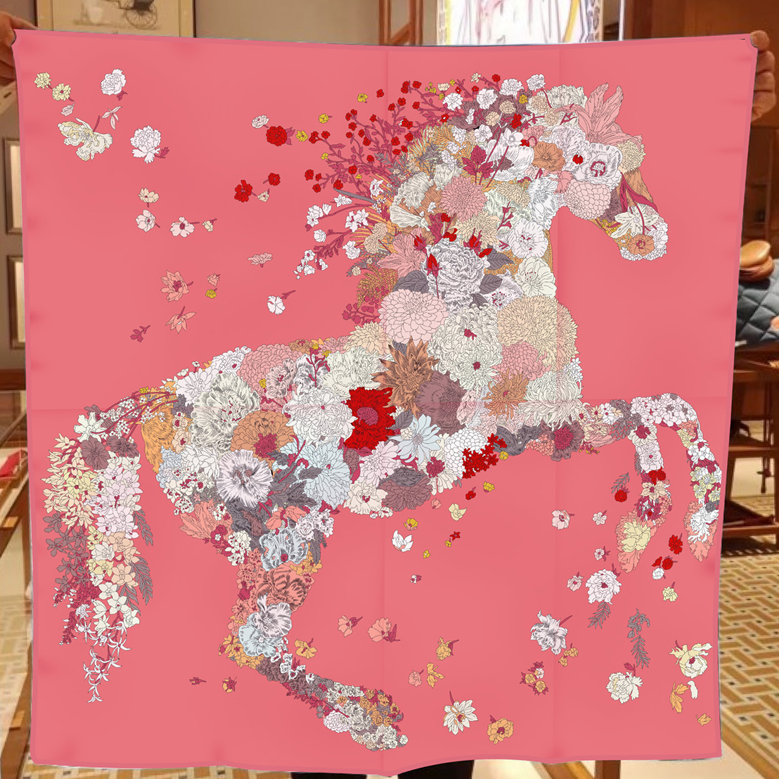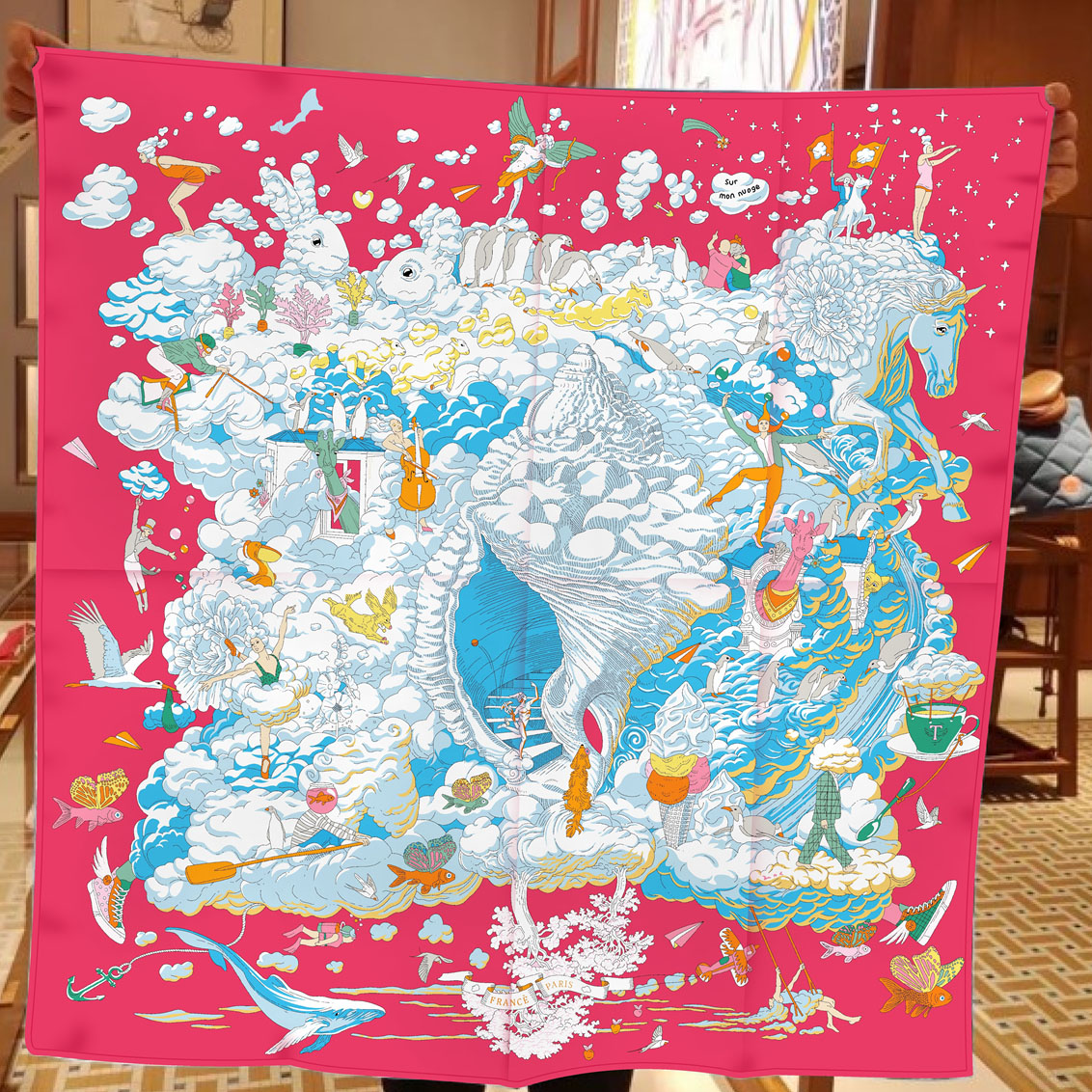 [구름 사이의 나의 비엔티안] 어드밴스드 센스 2022 올해의 새로운 모든 매치 프린트 스퀘어 스카프 여성용 봄과 가을 스카프스토어 가기