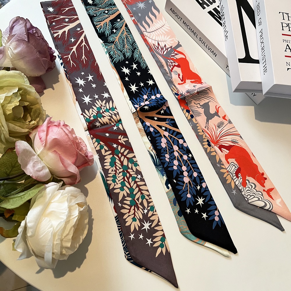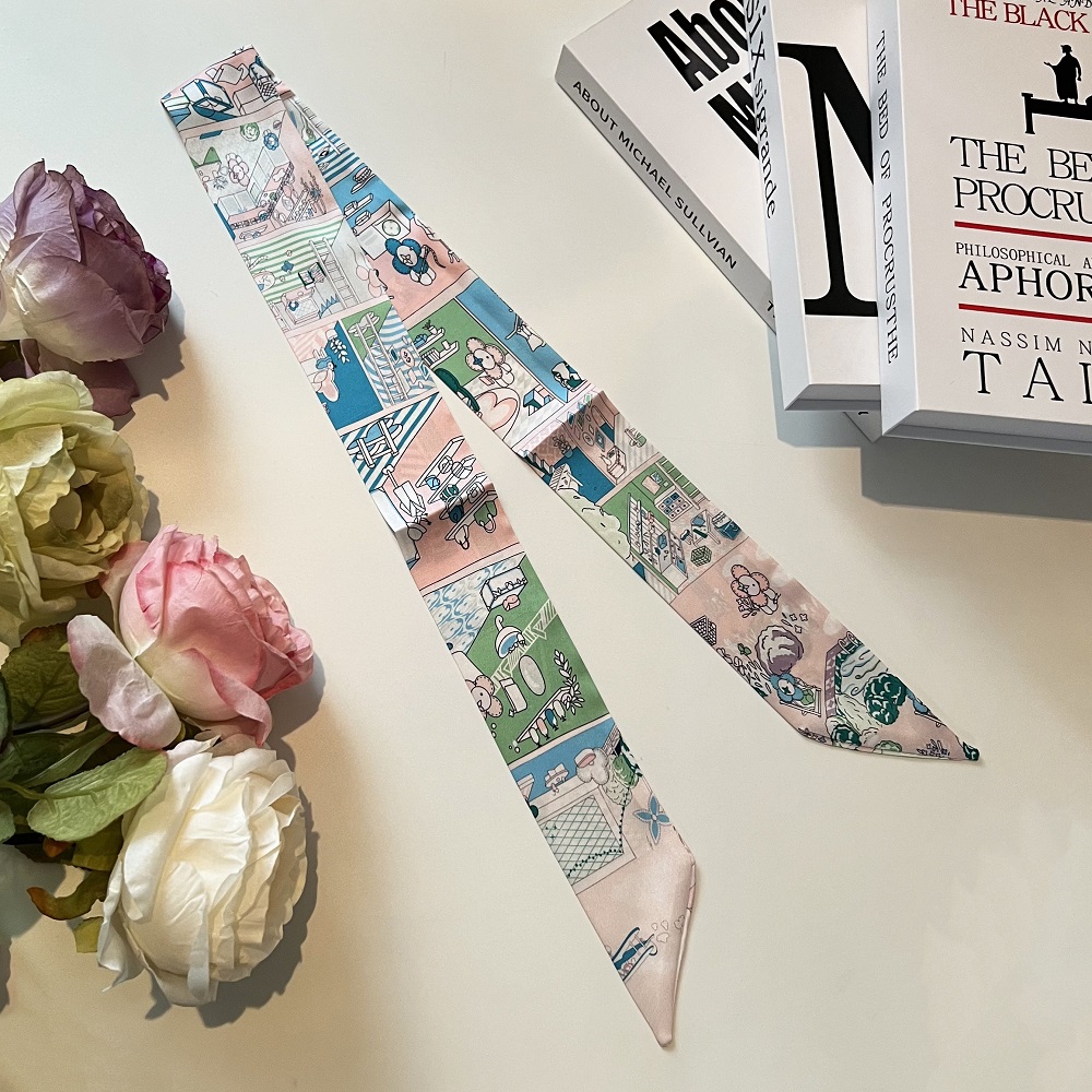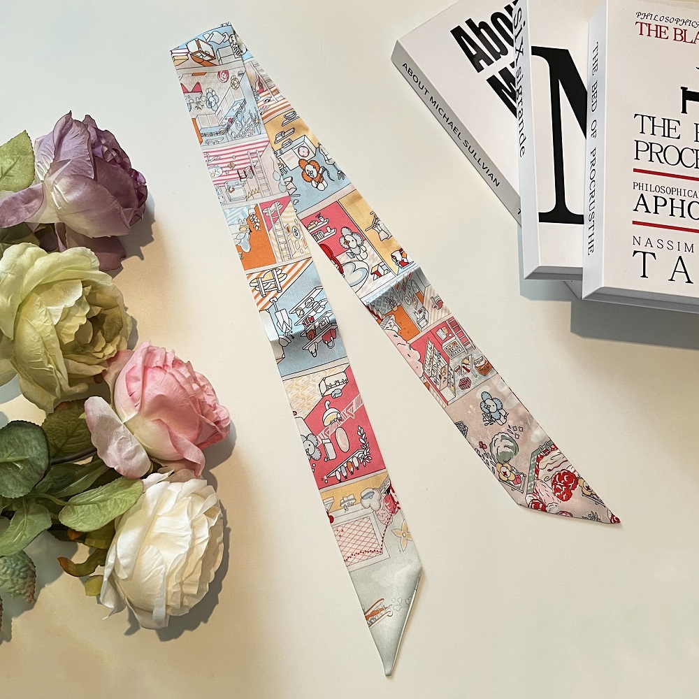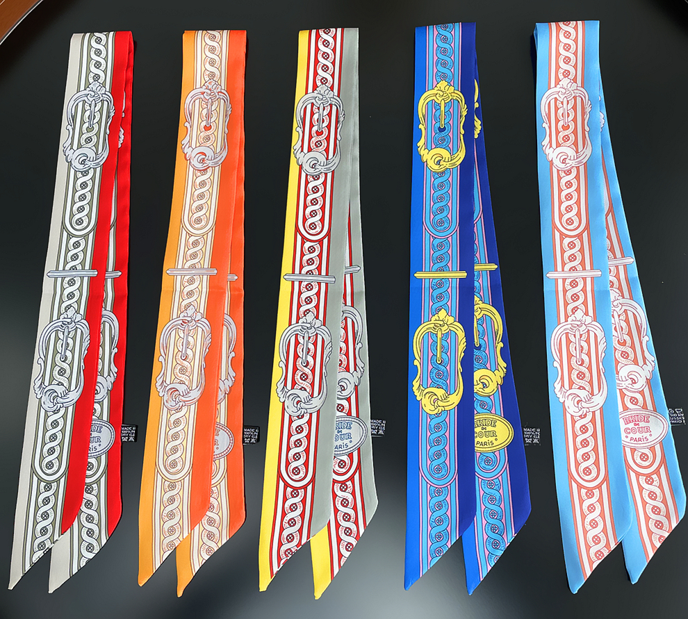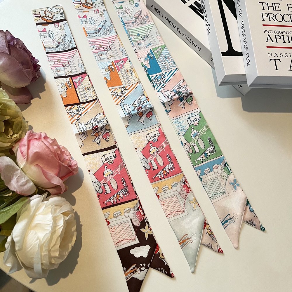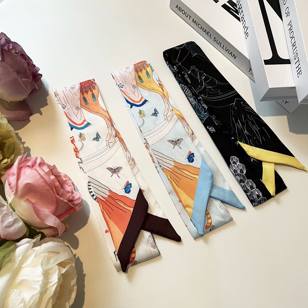 하이 엔드 절묘한 핸들 가방 여성을위한 긴 작은 실크 스카프 2024 새로운 양면 좁은 깃발 얇은 리본 머리띠스토어 가기