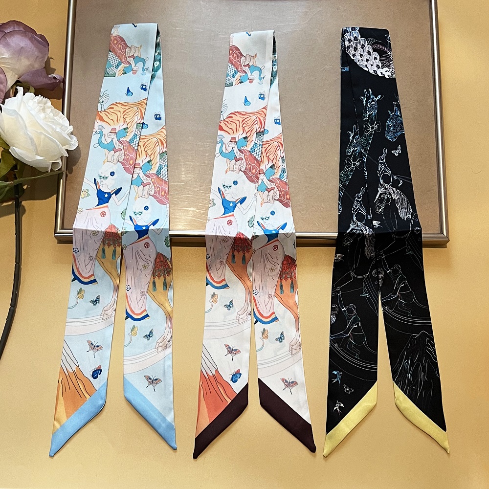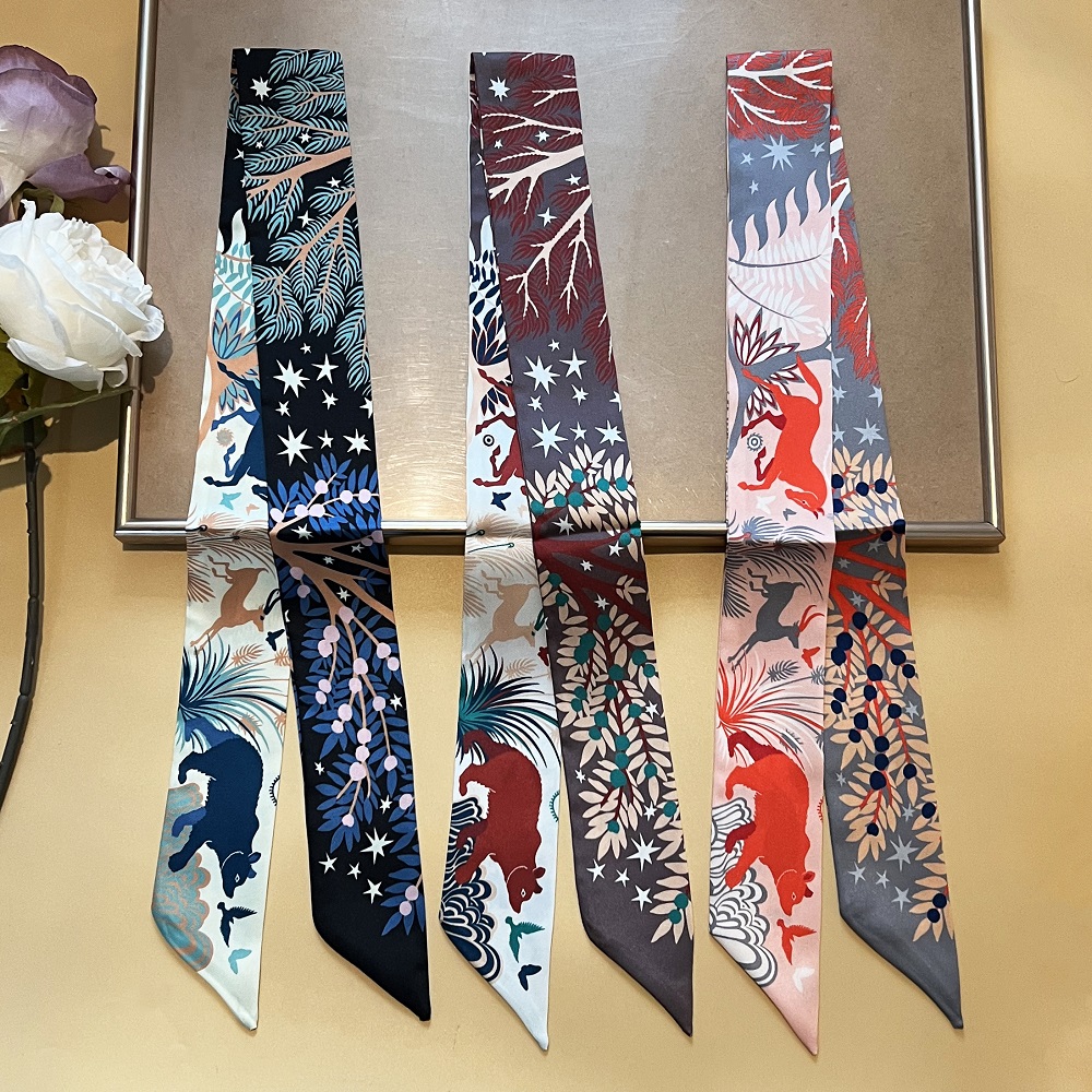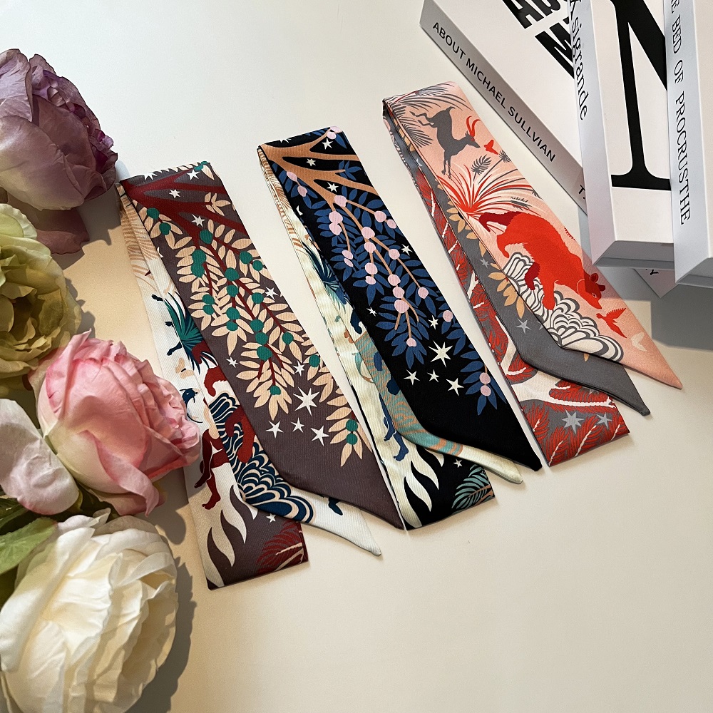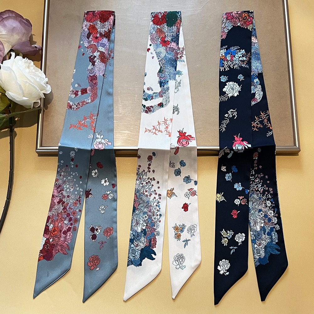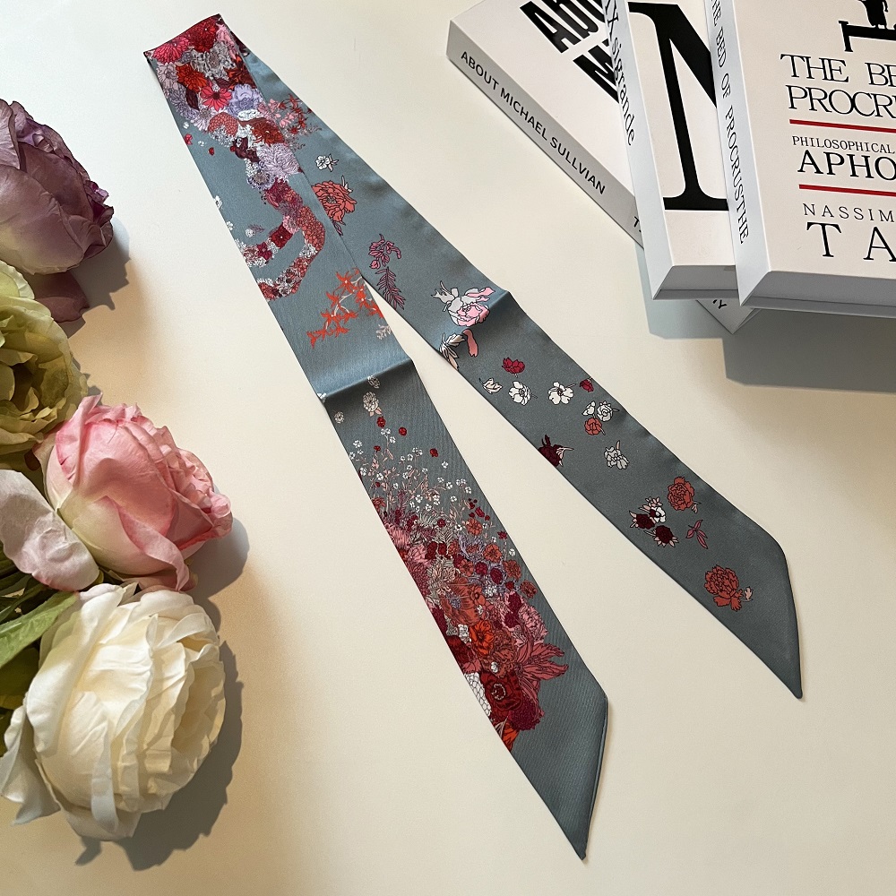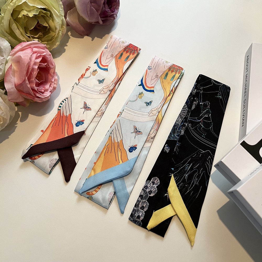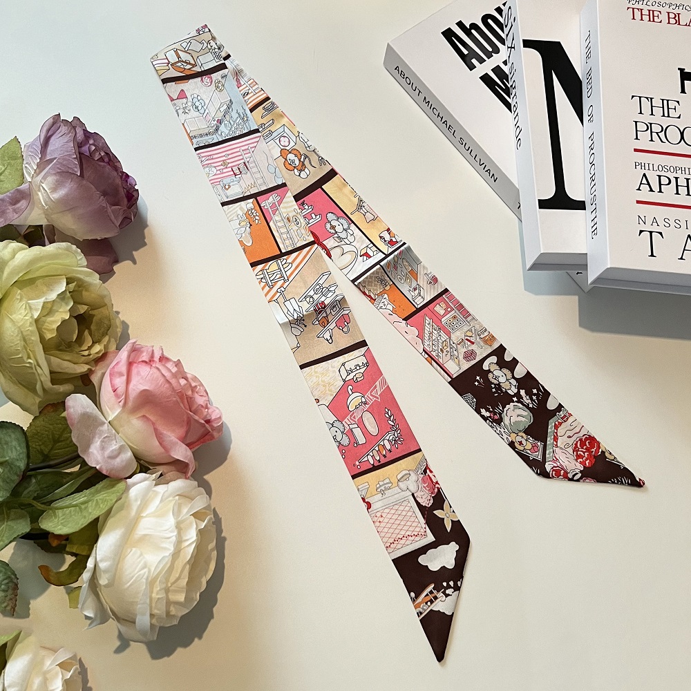 하이 엔드 절묘한 핸들 가방 여성을위한 긴 작은 실크 스카프 2024 새로운 양면 좁은 깃발 얇은 리본 머리띠스토어 가기