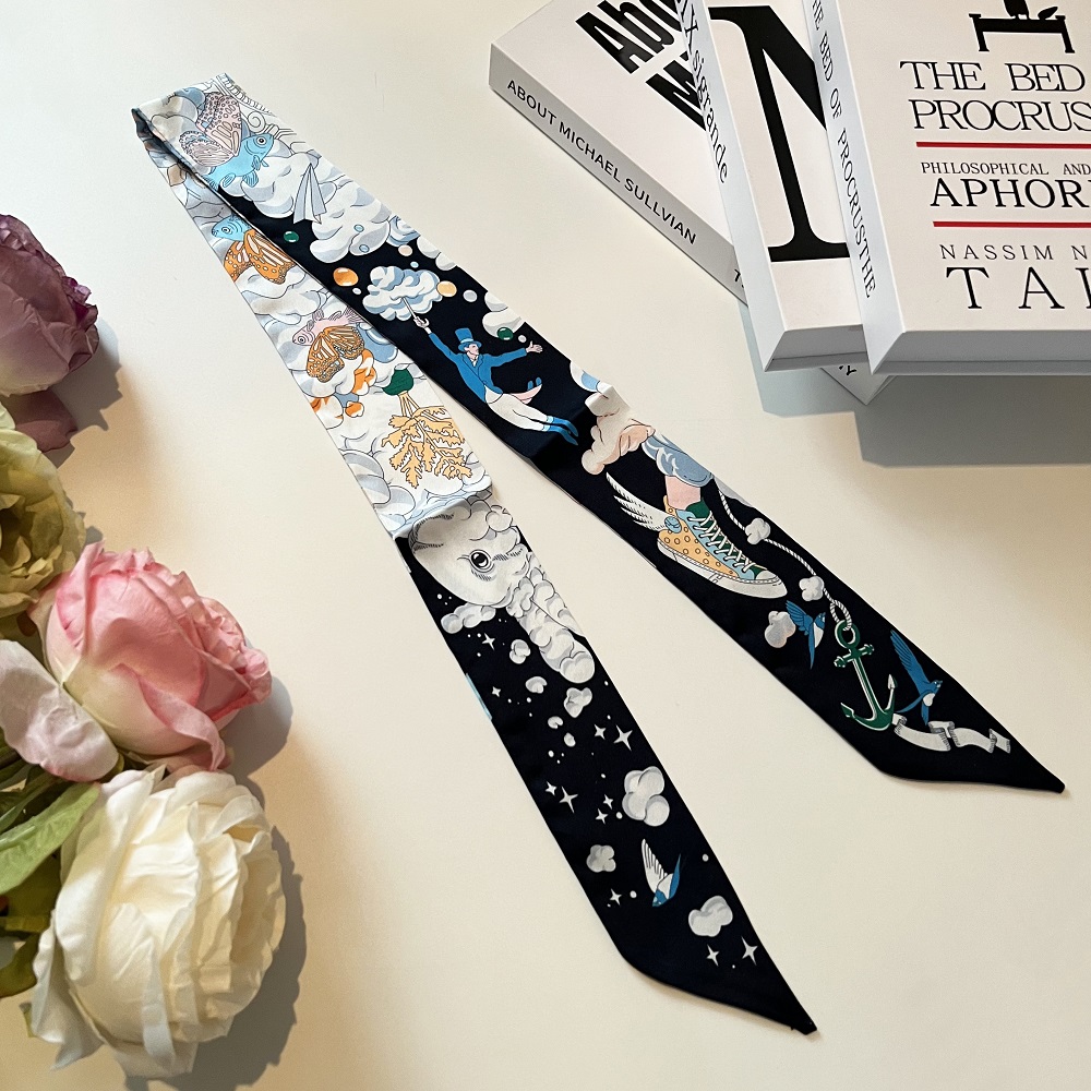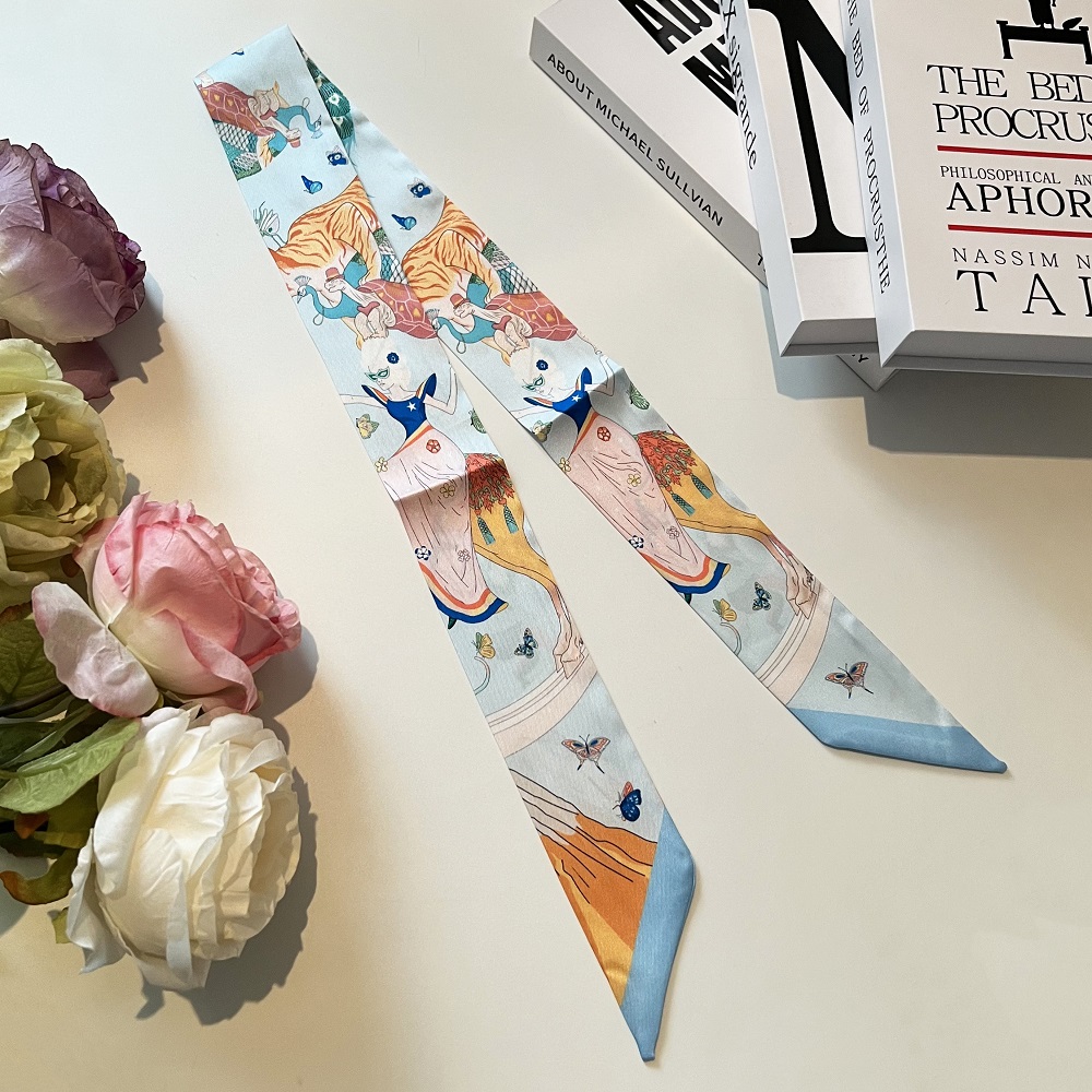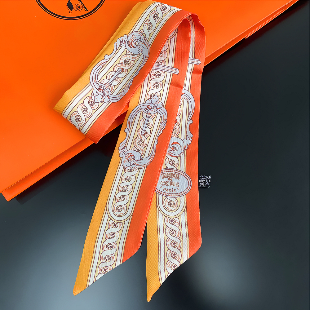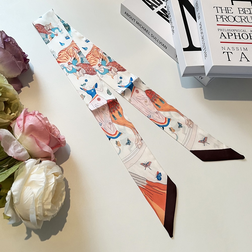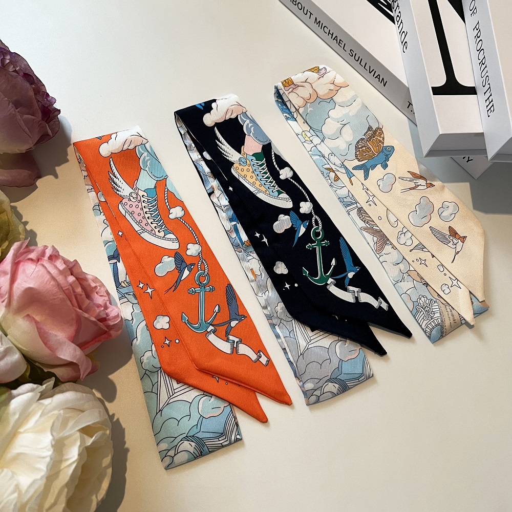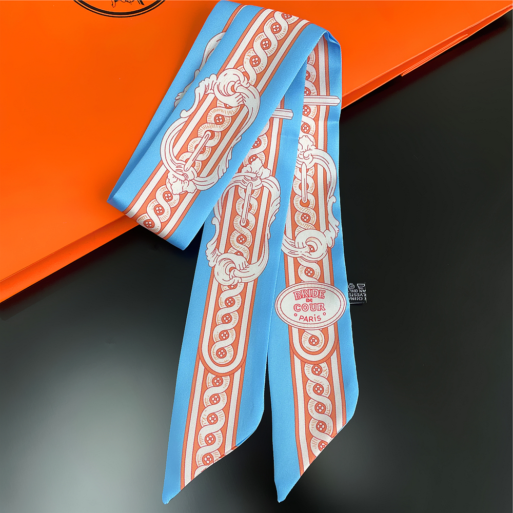 하이 엔드 절묘한 핸들 가방 여성을위한 긴 작은 실크 스카프 2024 새로운 양면 좁은 깃발 얇은 리본 머리띠스토어 가기