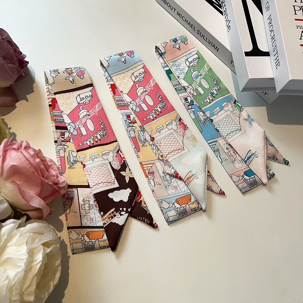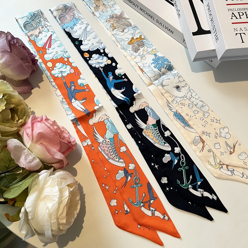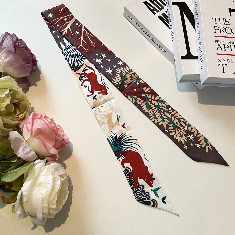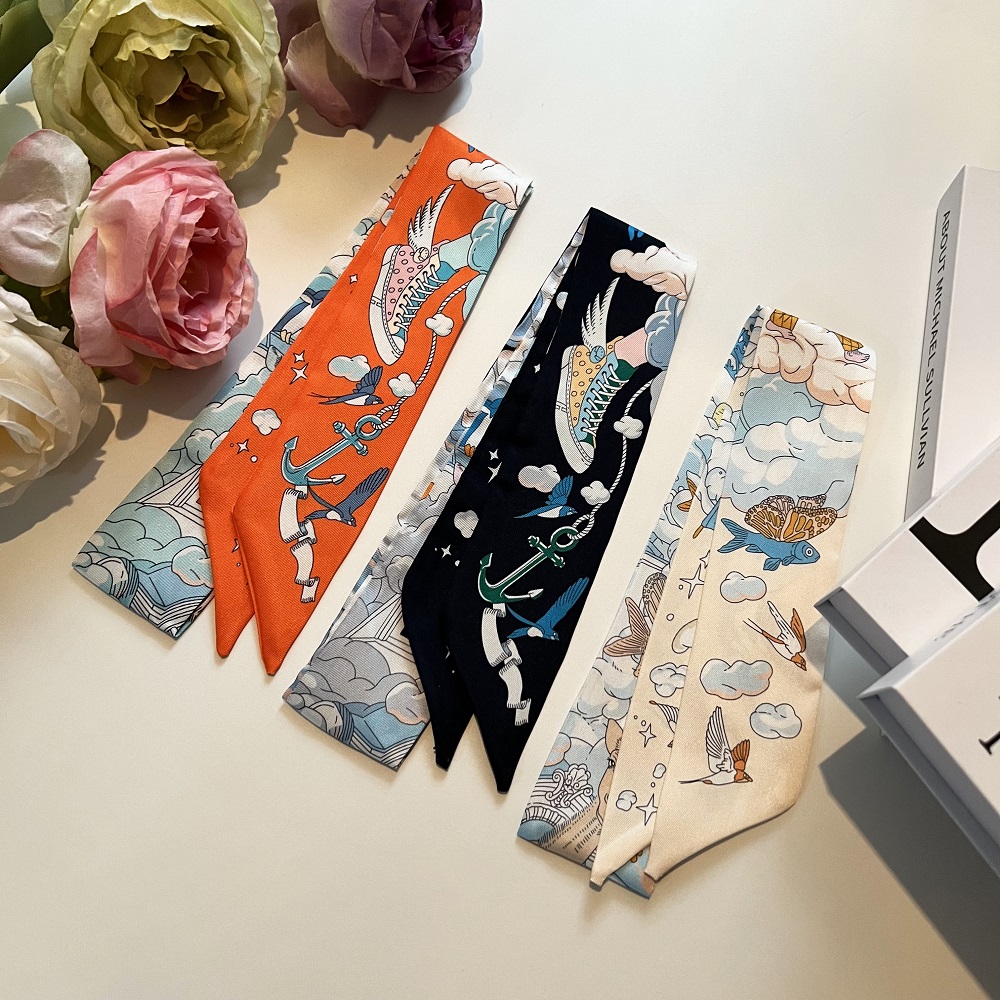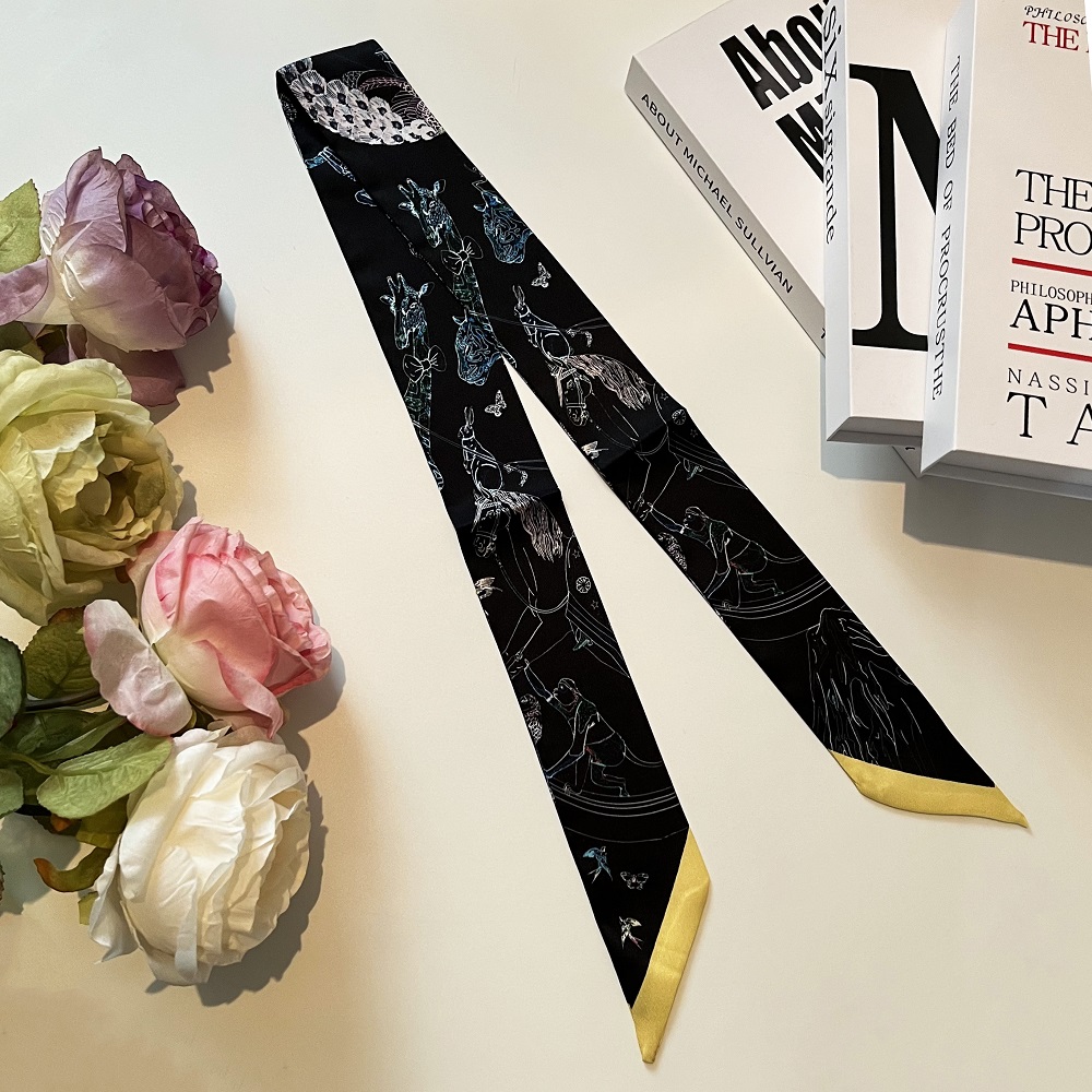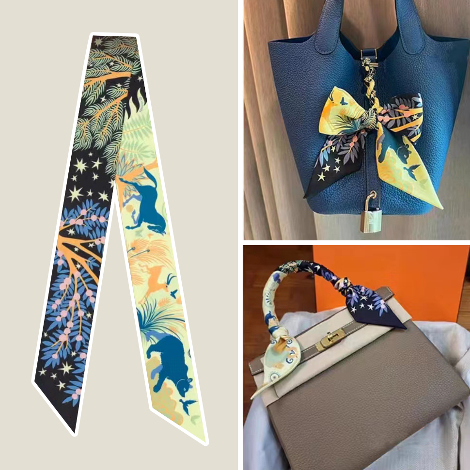 하이 엔드 절묘한 핸들 가방 여성을위한 긴 작은 실크 스카프 2024 새로운 양면 좁은 깃발 얇은 리본 머리띠스토어 가기