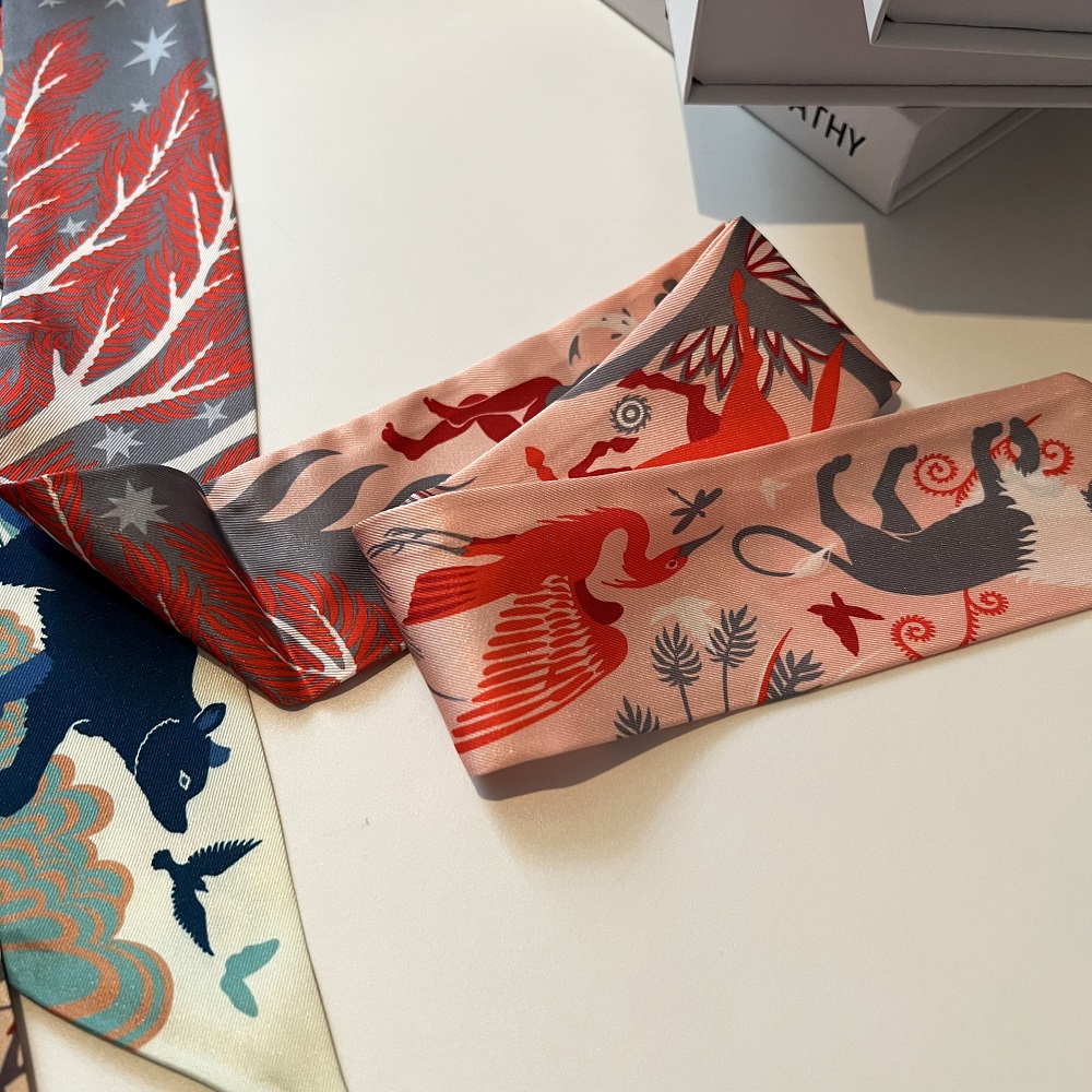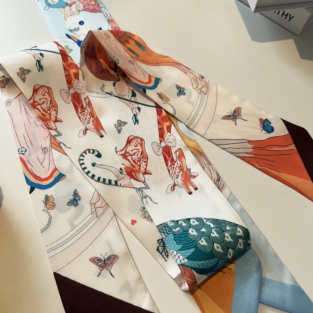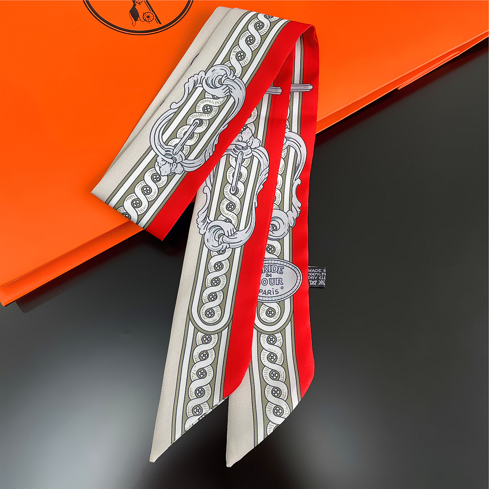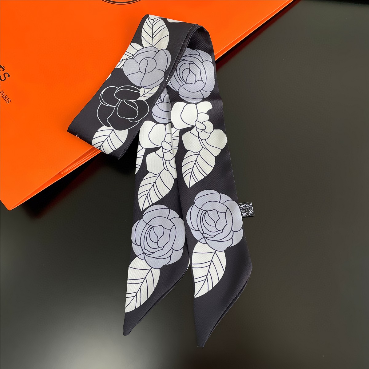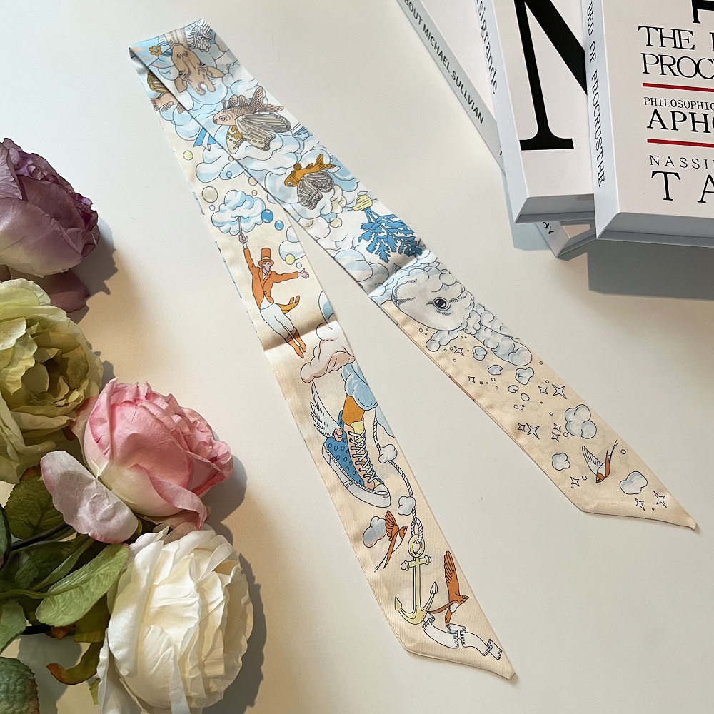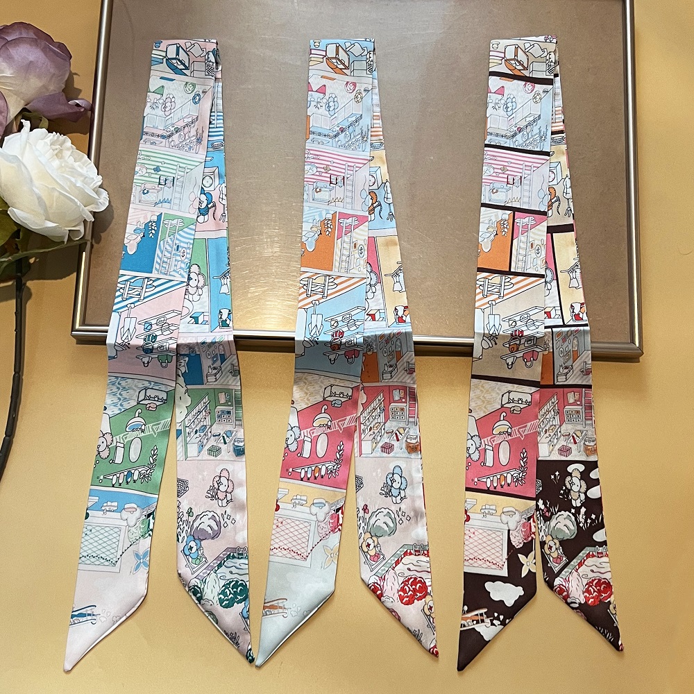 하이 엔드 절묘한 핸들 가방 여성을위한 긴 작은 실크 스카프 2024 새로운 양면 좁은 깃발 얇은 리본 머리띠스토어 가기
