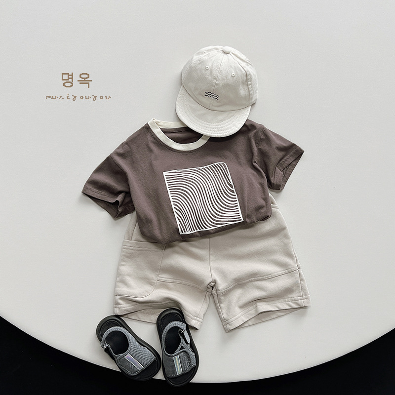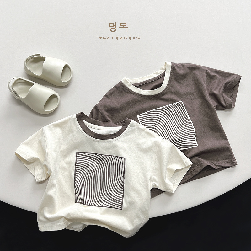 소년과 소녀를위한 얇은 여름 한국 스타일 맞춤형 순수 코튼 프린트 반팔 티셔츠 아기 일본상의 유행 아동 의류스토어 가기