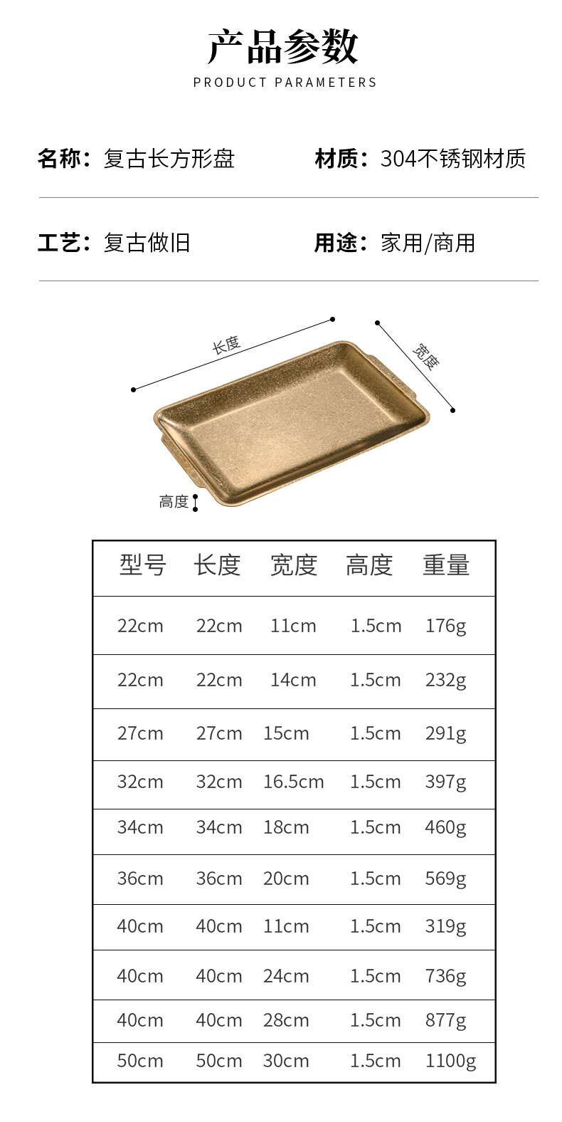 • 직사각형 접시(빈티지 골드)