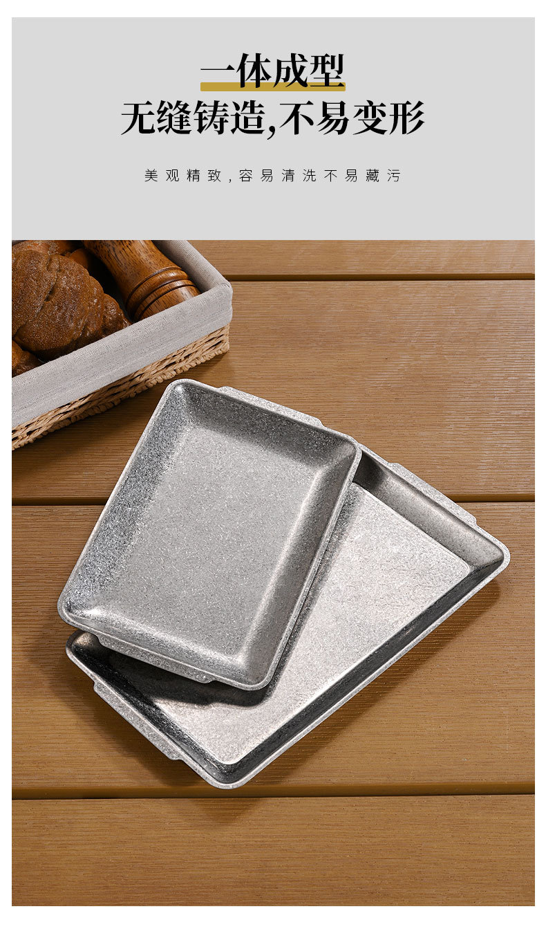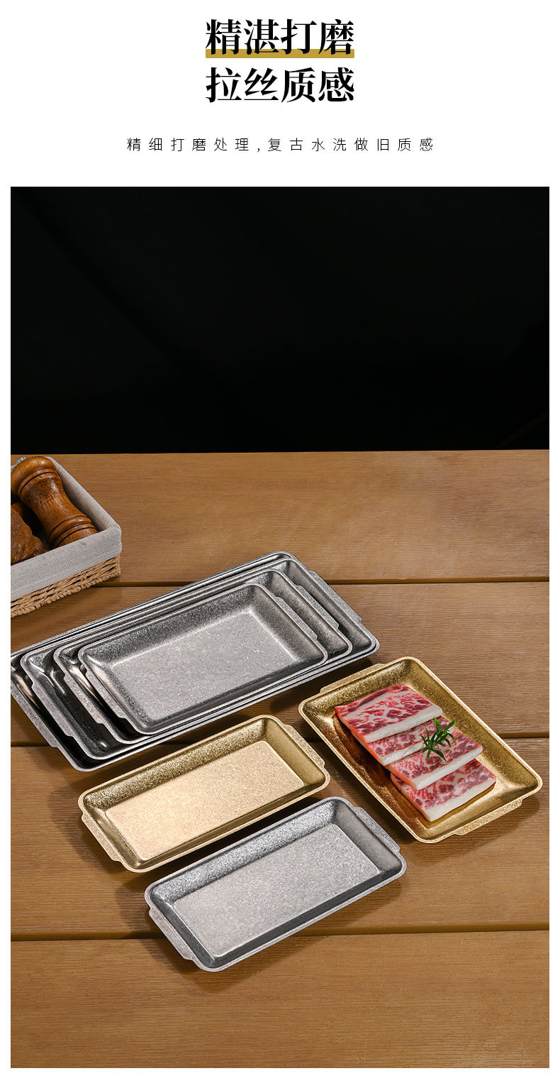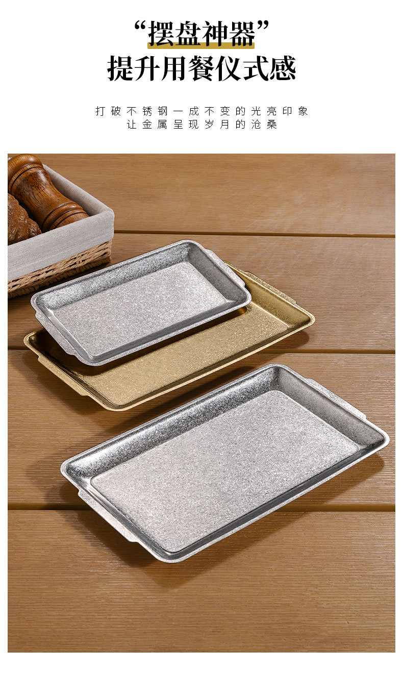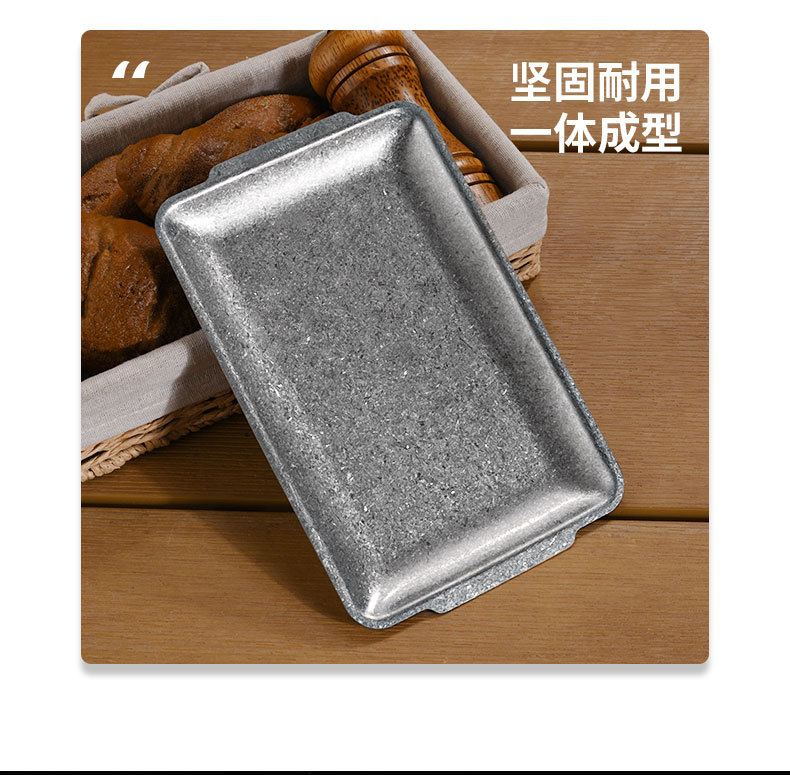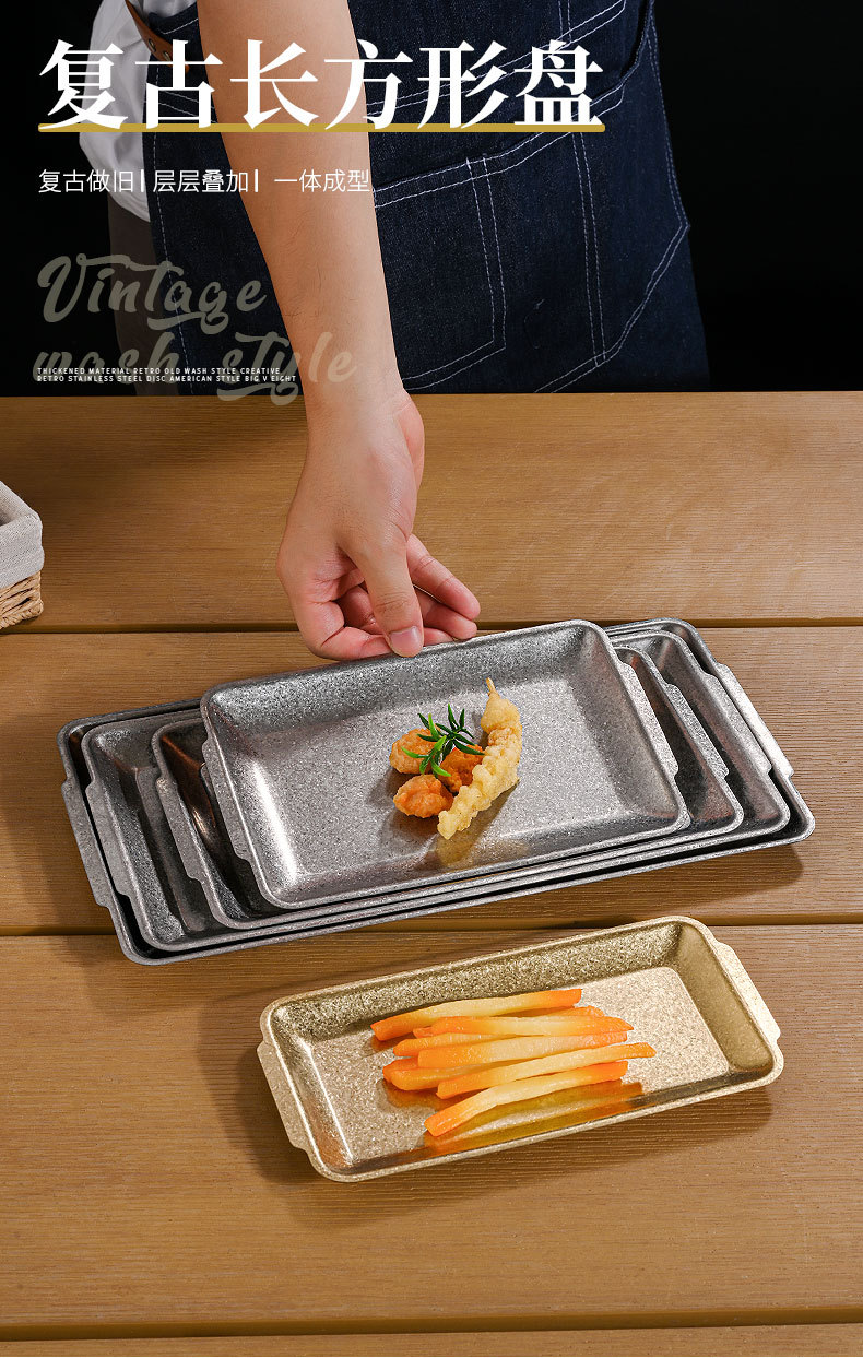 직접 공급 빈티지 스테인레스 스틸 플레이트 산업 스타일 304 직사각형 플레이트 바베큐 가게 장소 고기 플레이트 오래된 바베큐 플레이트 트레이스토어 가기
