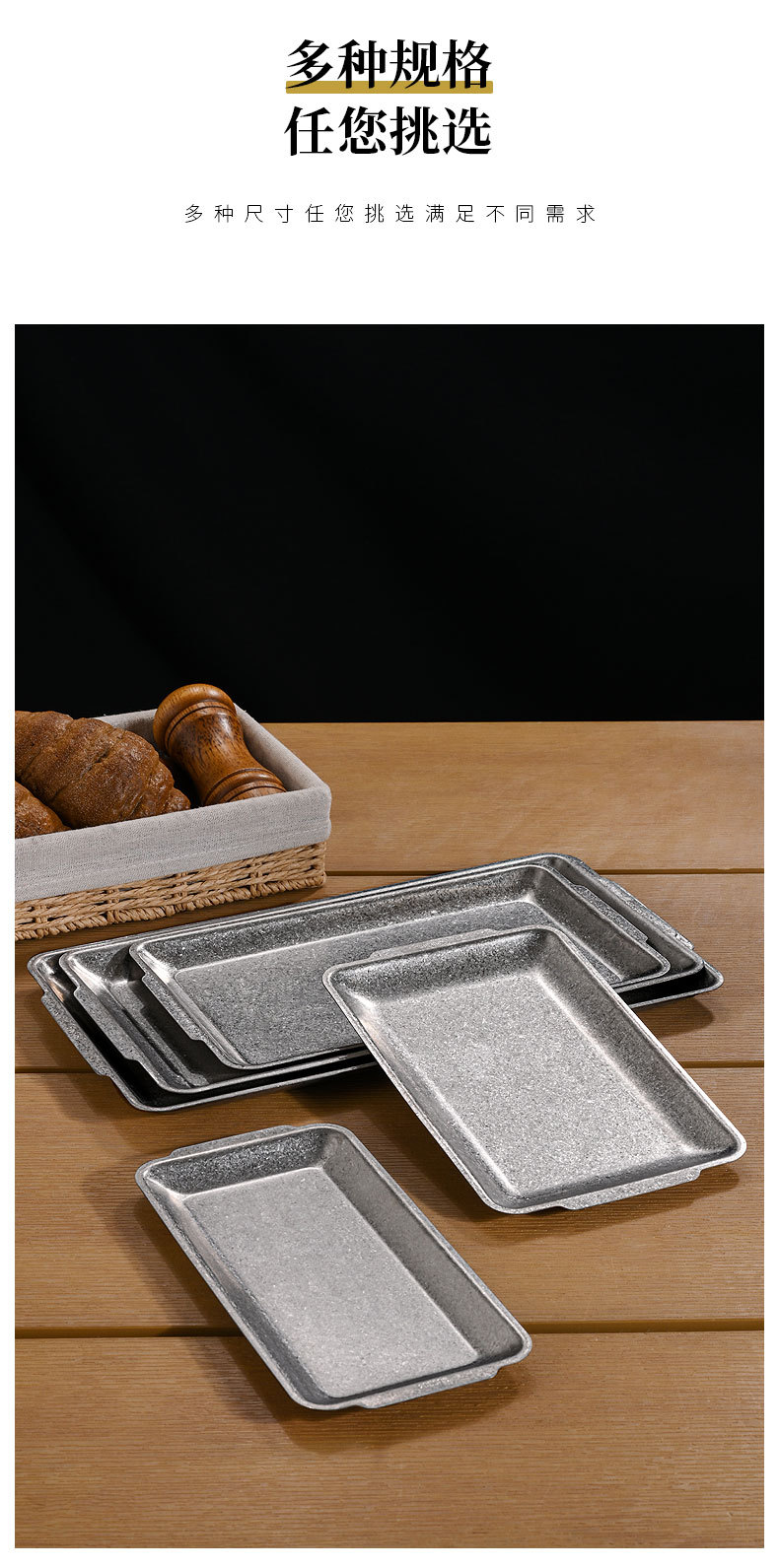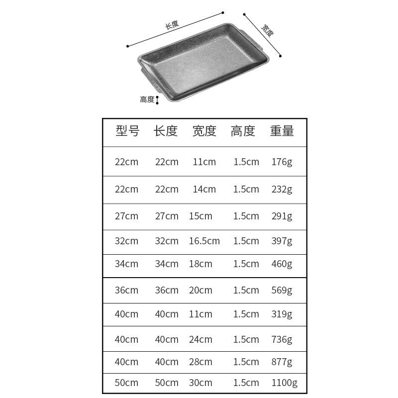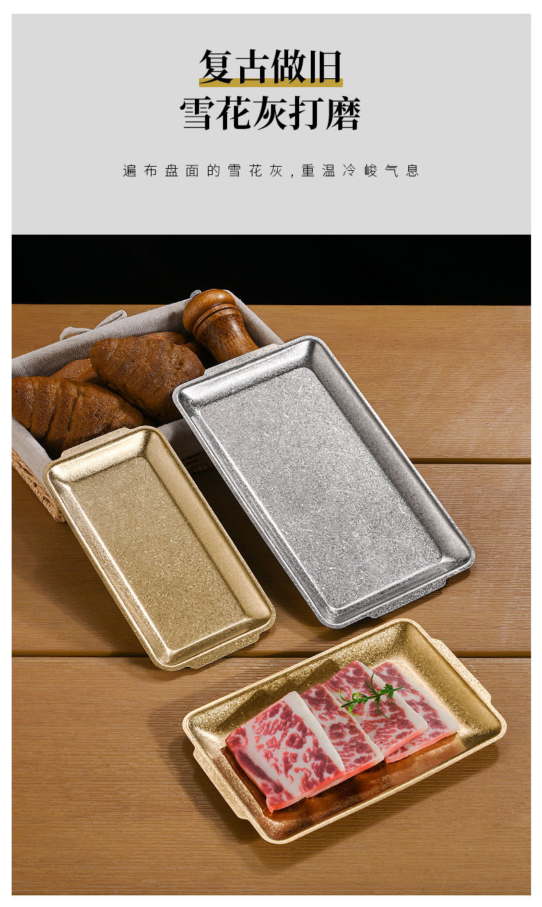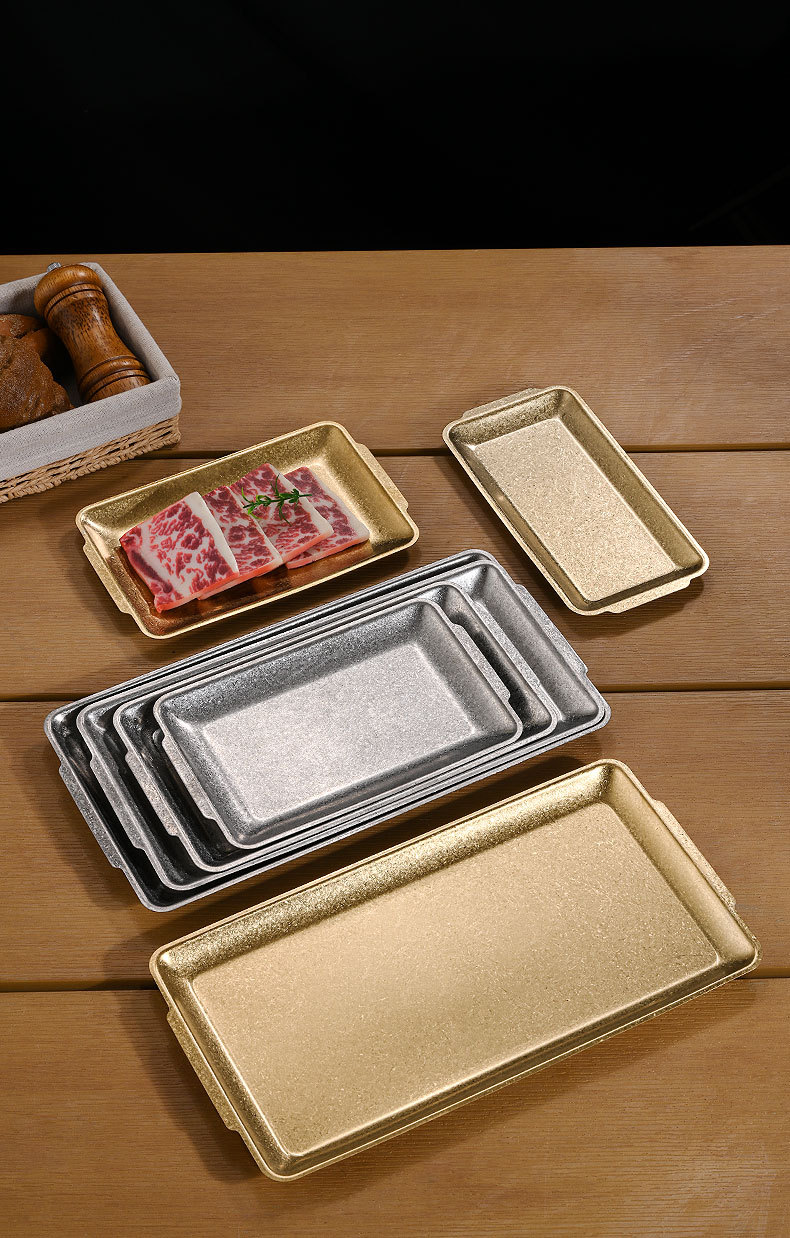 직접 공급 빈티지 스테인레스 스틸 플레이트 산업 스타일 304 직사각형 플레이트 바베큐 가게 장소 고기 플레이트 오래된 바베큐 플레이트 트레이스토어 가기