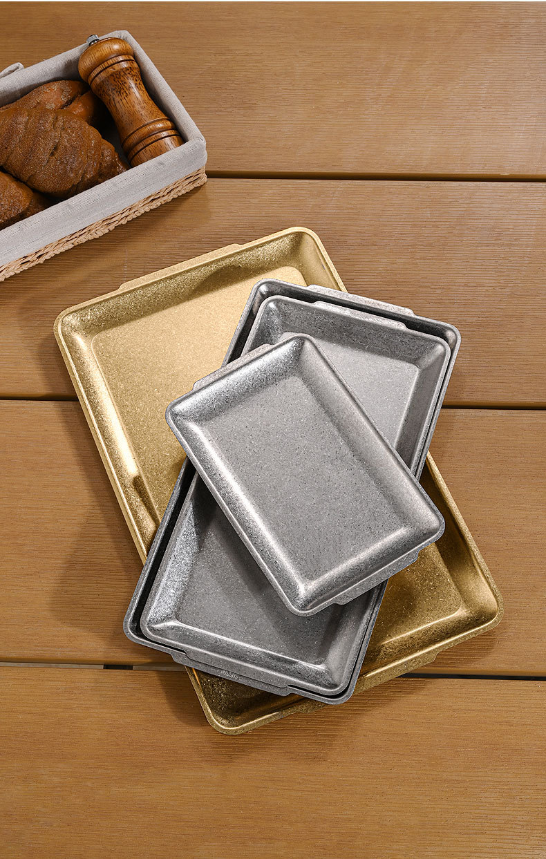 직접 공급 빈티지 스테인레스 스틸 플레이트 산업 스타일 304 직사각형 플레이트 바베큐 가게 장소 고기 플레이트 오래된 바베큐 플레이트 트레이