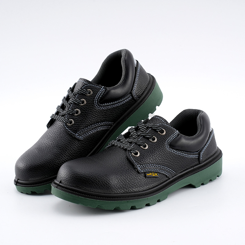 녹색 하단 소 가죽 안전 신발 남성용 안티 스매싱 안티 피어싱 내유성 산성 폴리 우레탄 솔리드 바닥 안전 작업 신발 도매스토어 가기