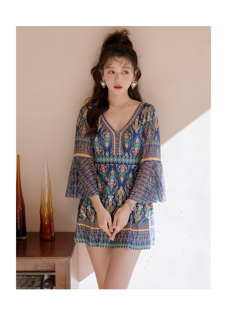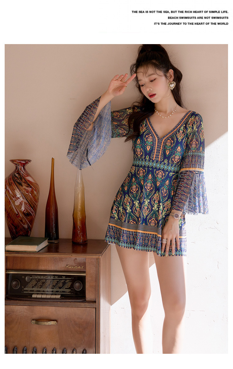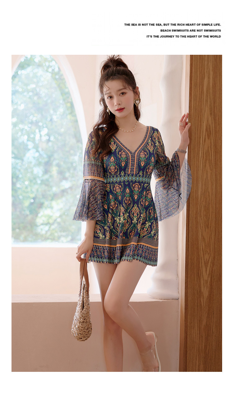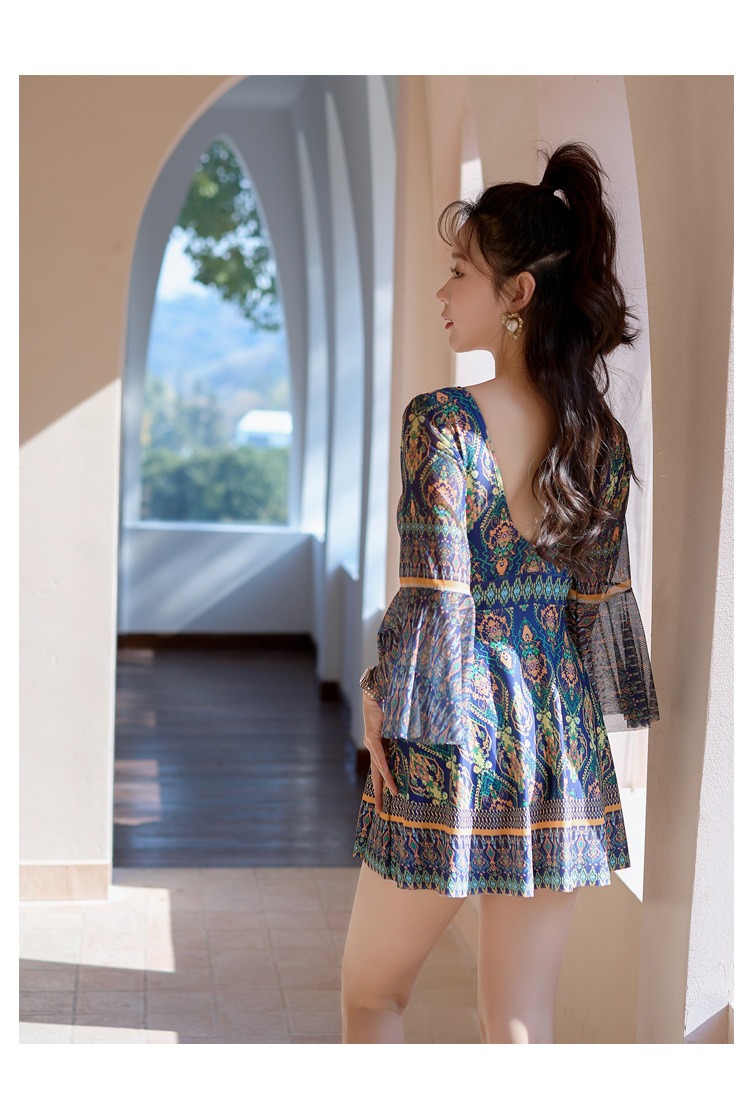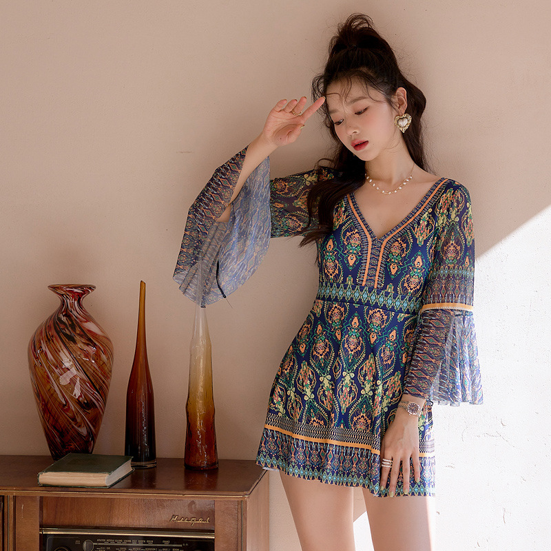 수영복 여자의 2023 여름 새로운 비행 소매 뜨거운 봄 에 스타일 슬리밍 배꼽 커버 보수 스커트 원피스 플러스 사이즈 수영