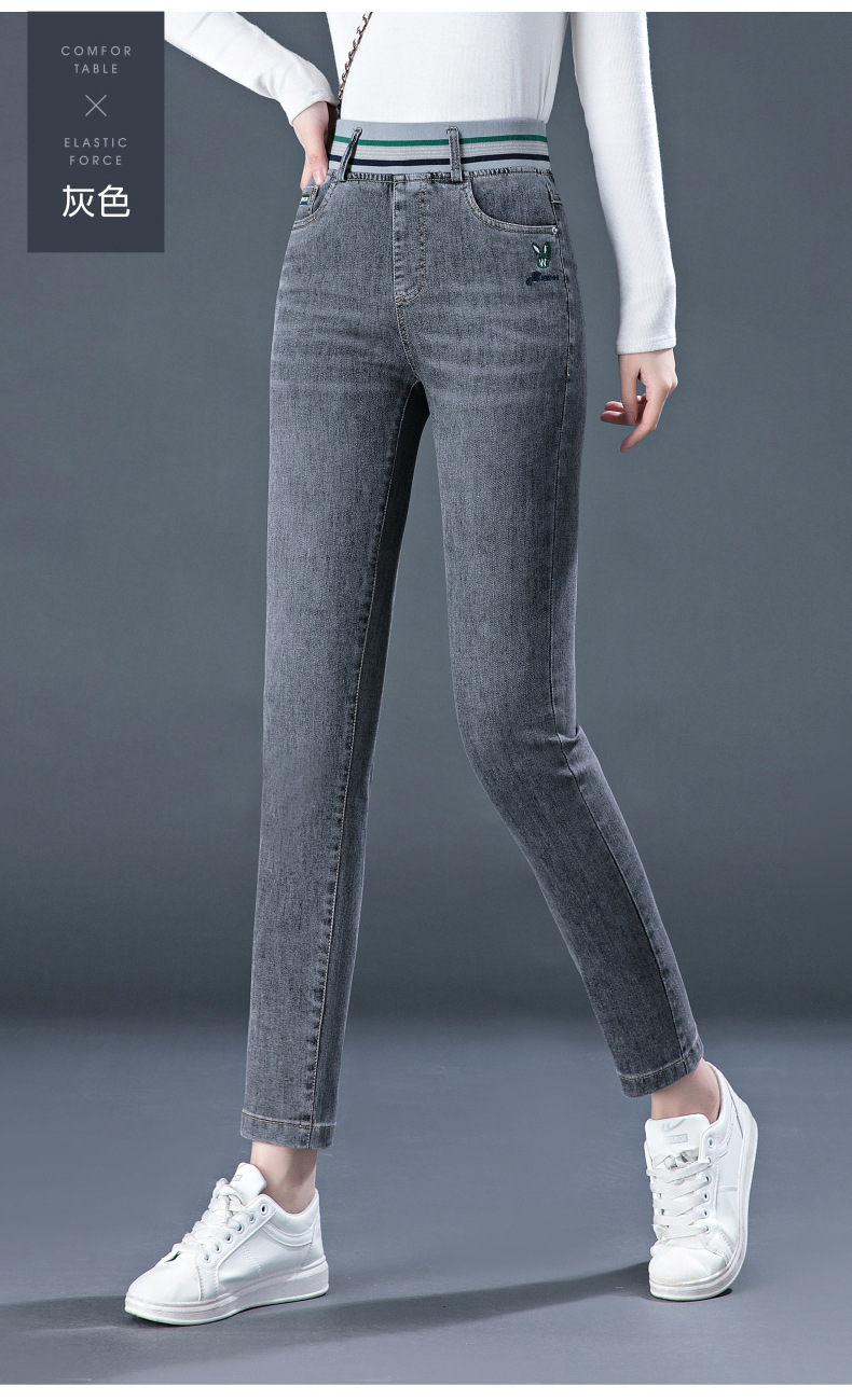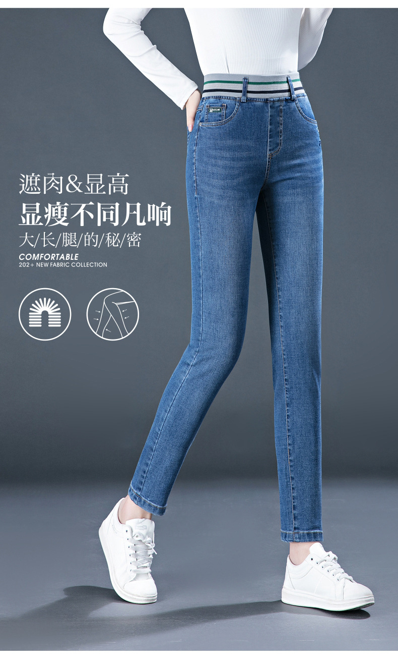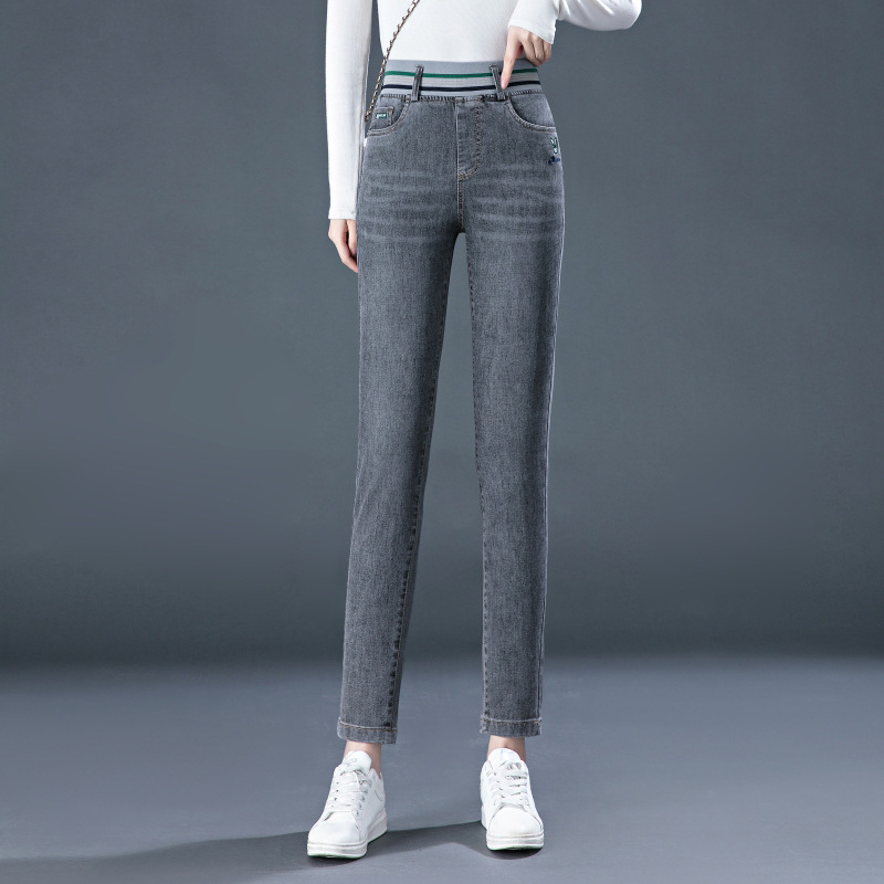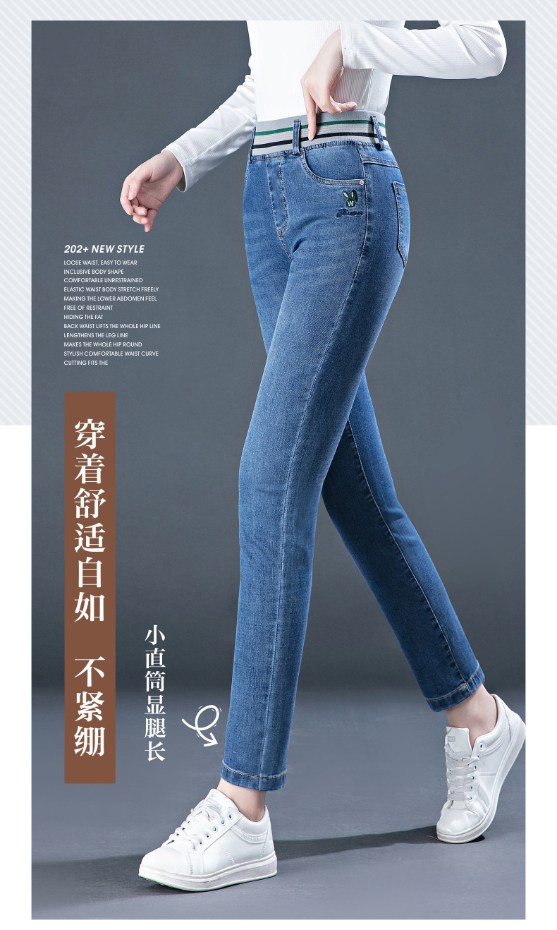 높은 허리 청바지 여성용 작은 스트레이트 바지 봄과 여름 얇은 2024 새로운 스트레치 바지 슬림 핏 슬리밍 여성용 자른 바지스토어 가기