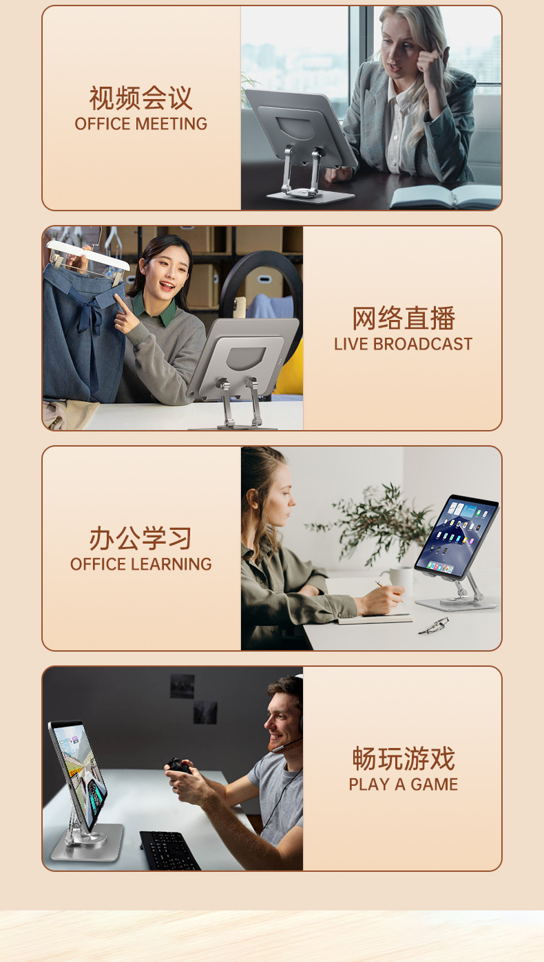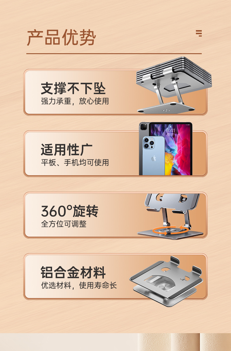1、适合11寸内平板电脑或者手机,高度和承重需平板电脑大小和重量调节合适角度和平衡度。