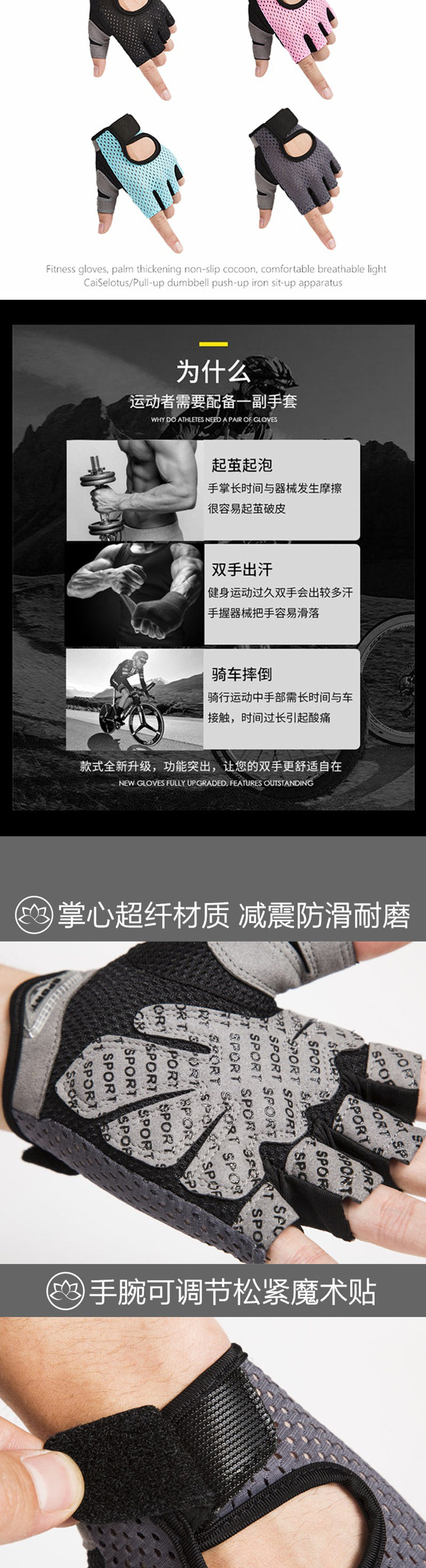 등산 달리기 피트니스 손목 타기 반 손가락 장갑 남여 공용 역도 미끄럼 방지 통기성 장갑 공장 도매스토어 가기