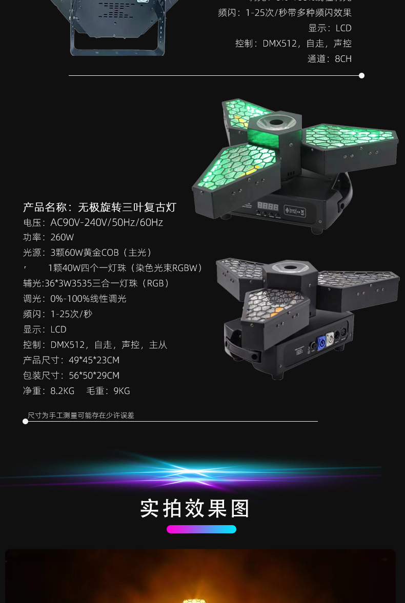 LED 일곱 복고풍 조명 플래시 조명 led 픽셀 3 잎 복고풍 조명 무대 배경 조명 바 분위기