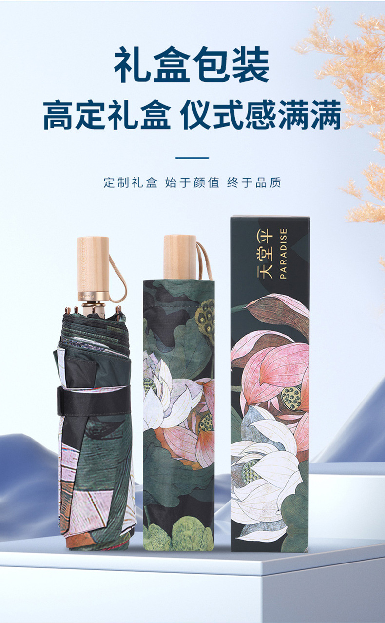 파라다이스 우산 30% 더블 레이어 선물 상자 로터스 풀 에디션 터치 블랙 접착제 황금 우산 프레임 써니 우산스토어 가기