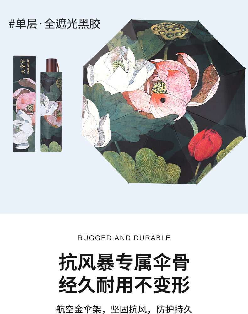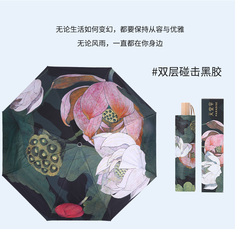 파라다이스 우산 30% 더블 레이어 선물 상자 로터스 풀 에디션 터치 블랙 접착제 황금 우산 프레임 써니 우산