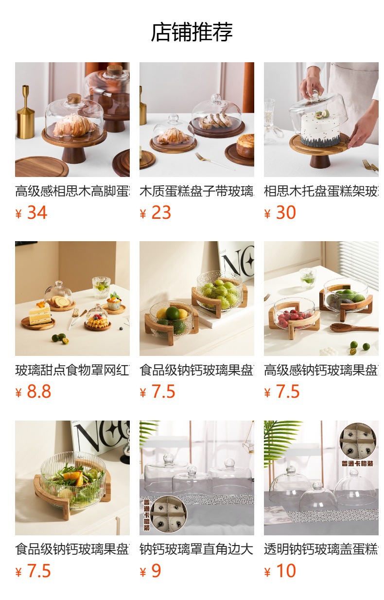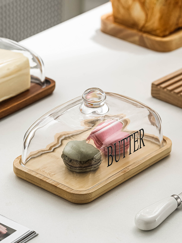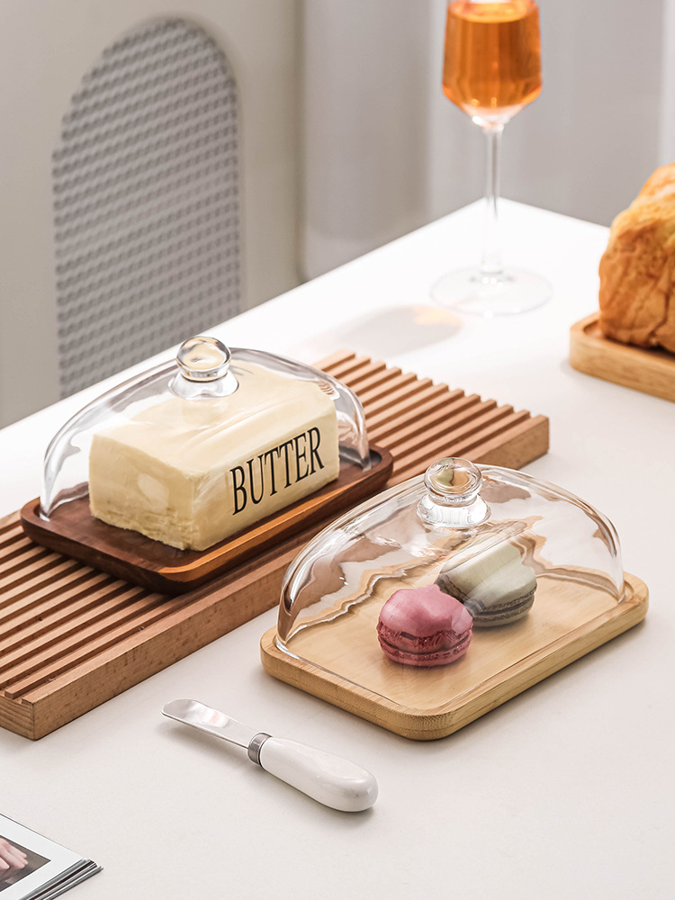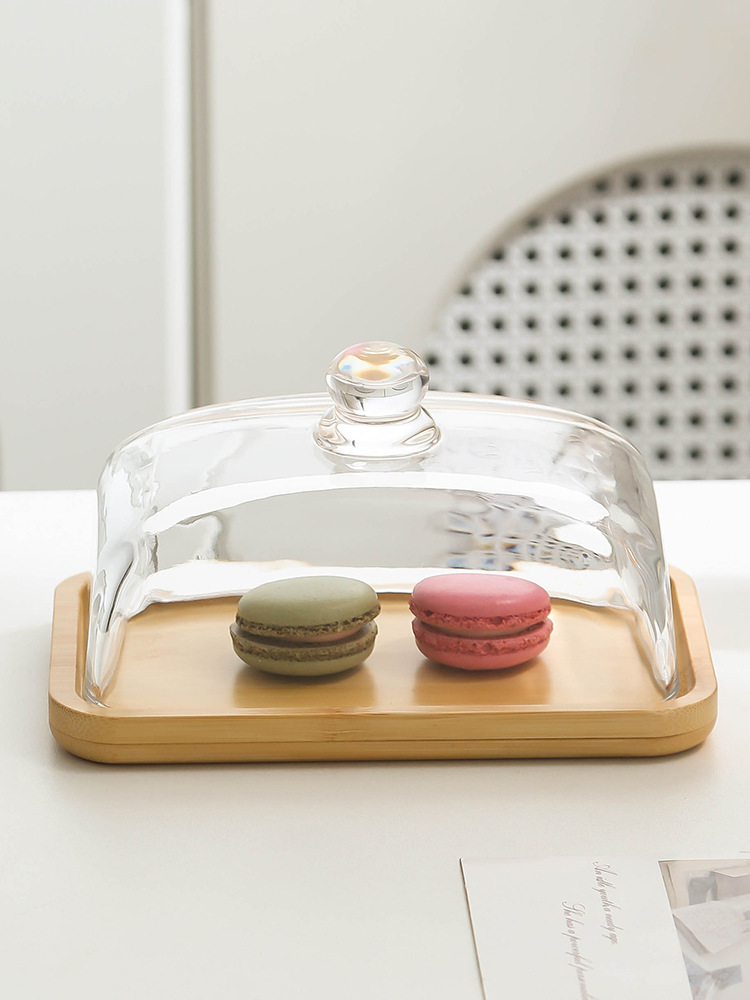 대나무와 나무 케이크 접시 투명 유리 디스플레이 디너 플레이트 디저트 케이크 서양 접시 세트 테이블 버터 플레이트 국경 대외 무역스토어 가기