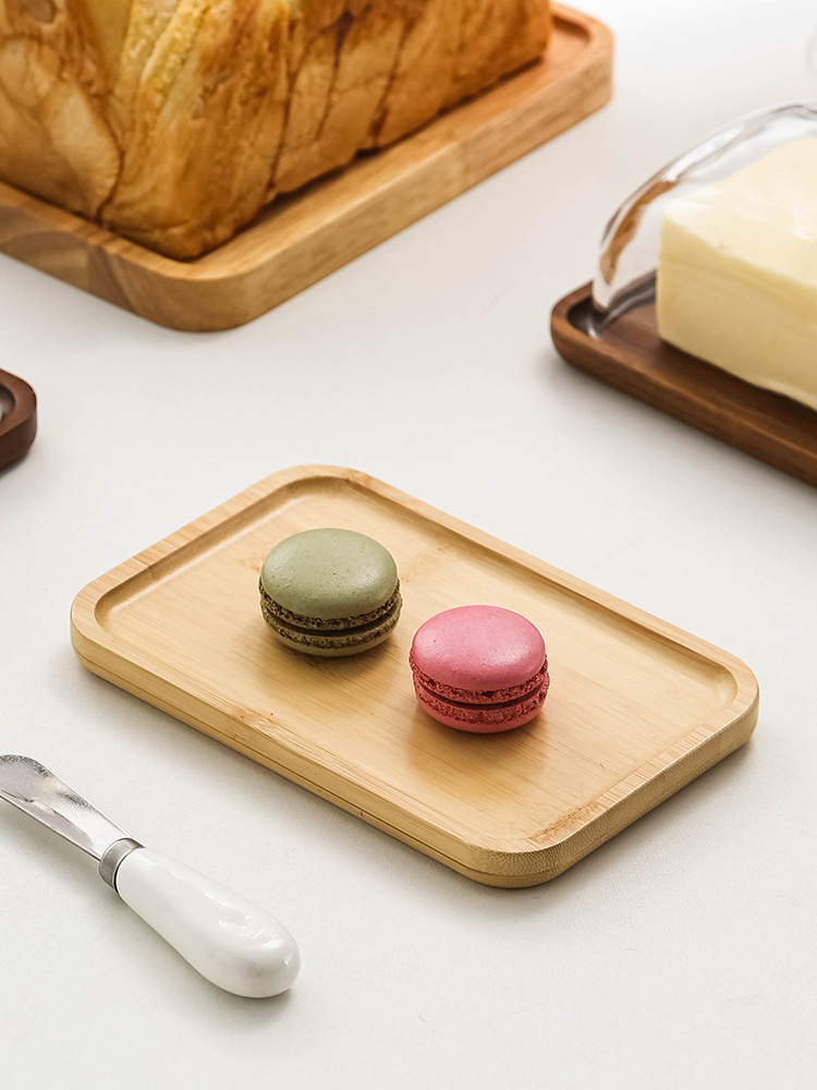 대나무와 나무 케이크 접시 투명 유리 디스플레이 디너 플레이트 디저트 케이크 서양 접시 세트 테이블 버터 플레이트 국경 대외 무역