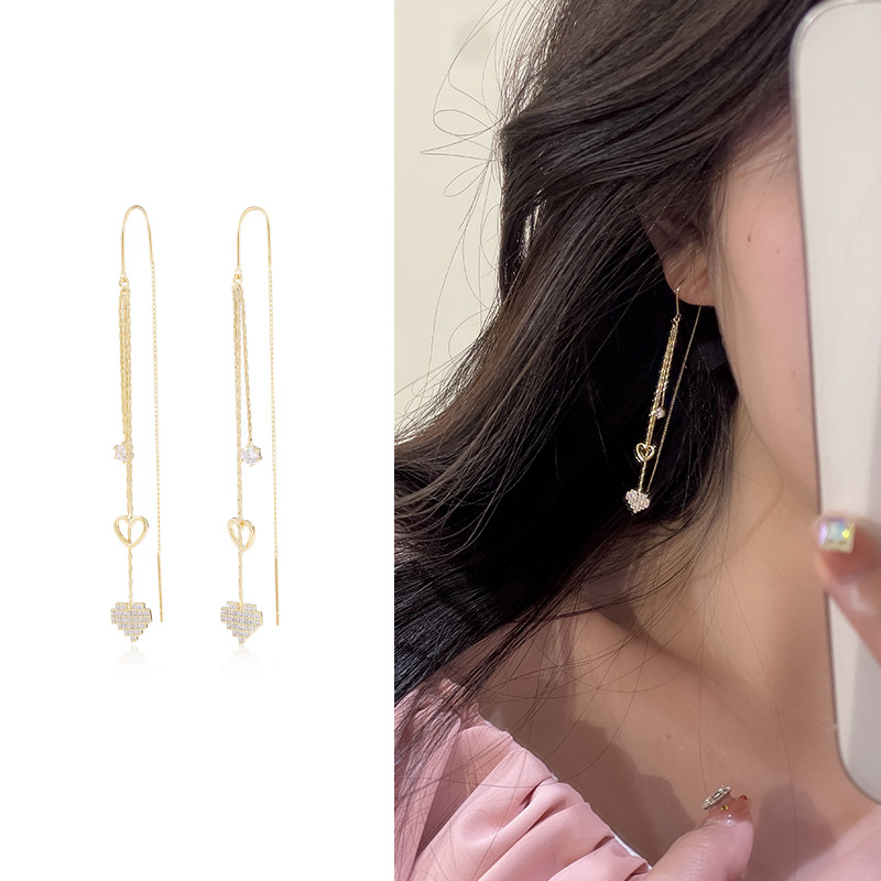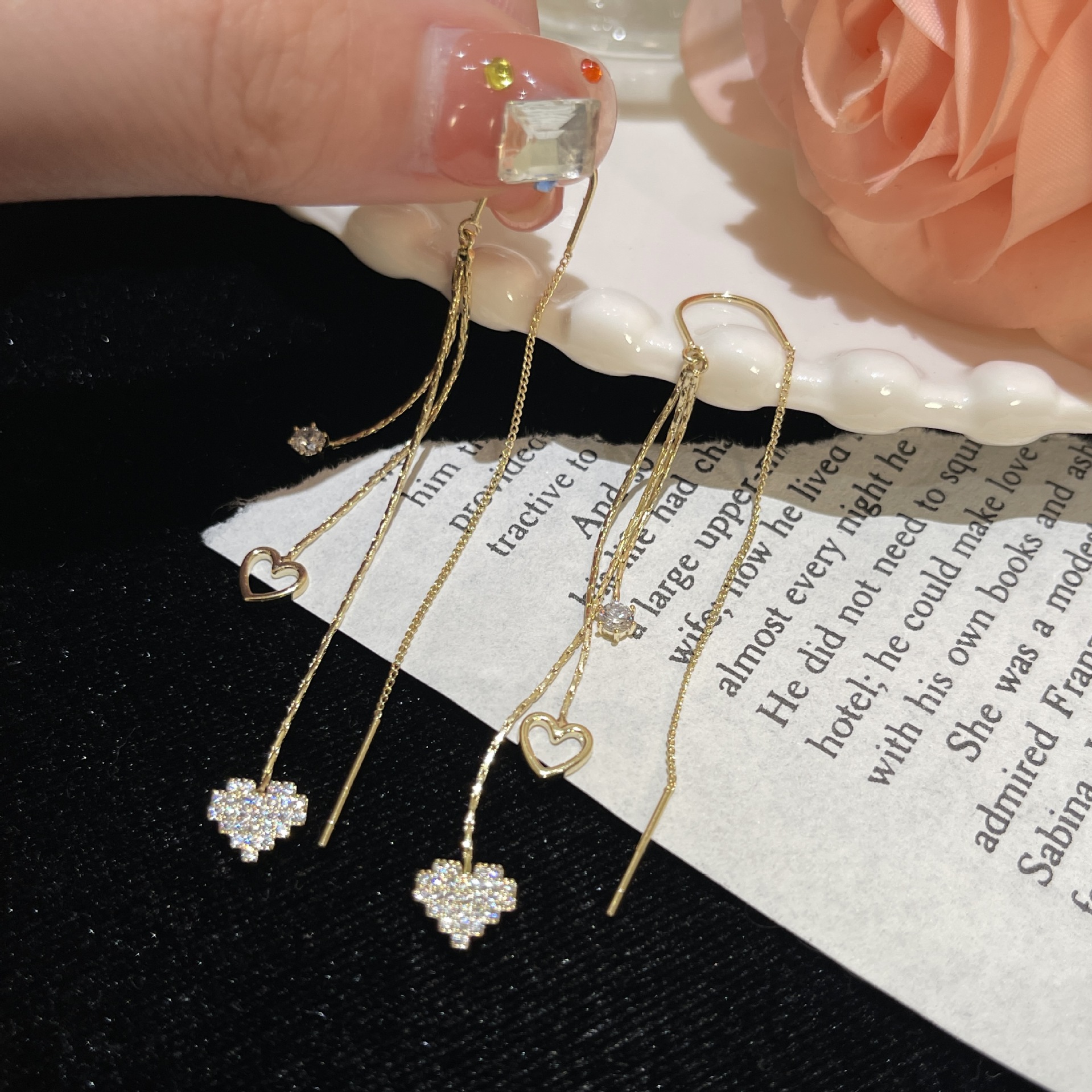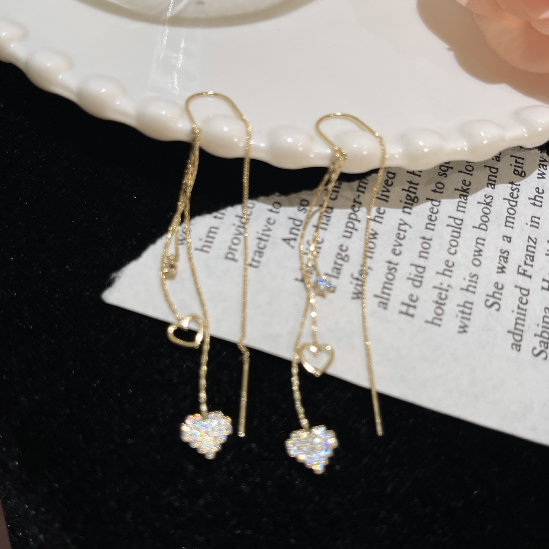 TikTok 같은 스타일 기질 높은 감각 사랑 술 이어 라인 여성의 틈새 높은 감각 빛 럭셔리 패션 귀걸이스토어 가기