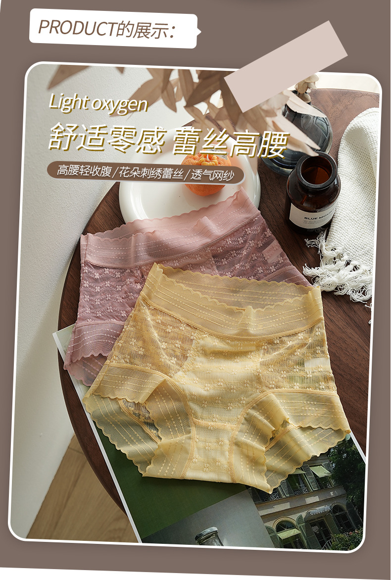 여름 하이 웨이스트 가벼운 배꼽 레이스 브리프 여성용 섹시 고탄성 엉덩이 뽕나무 실크 가랑이 브리프 여성용 얇은 브리프스토어 가기