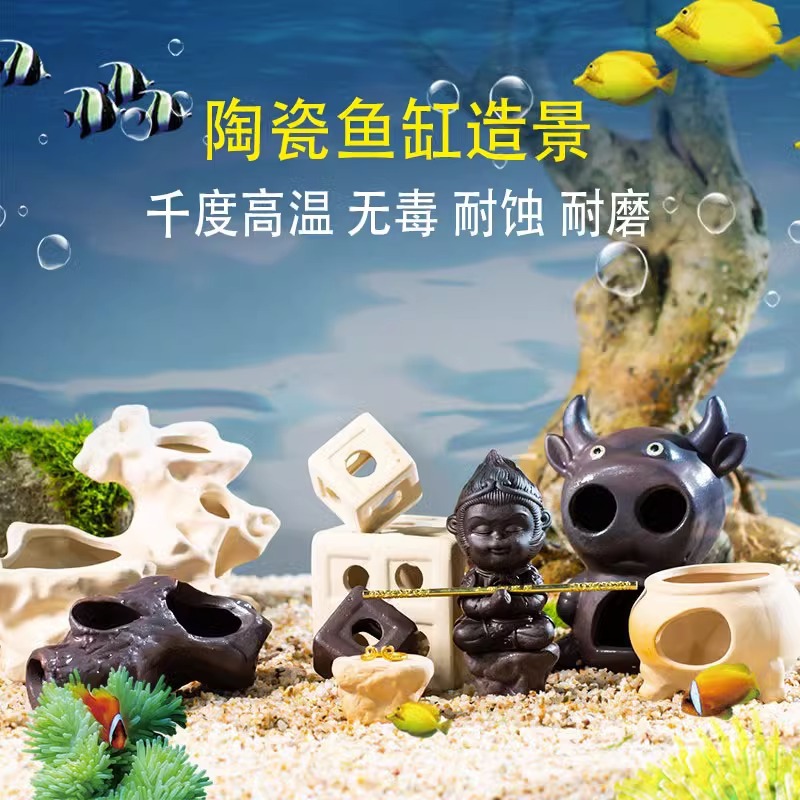 국경 간 직접 판매 세라믹 어항 조경 장식 마이크로 풍경 탈출 구멍 새우 둥지 물고기 새우 탈출 집 번식 집 장식품