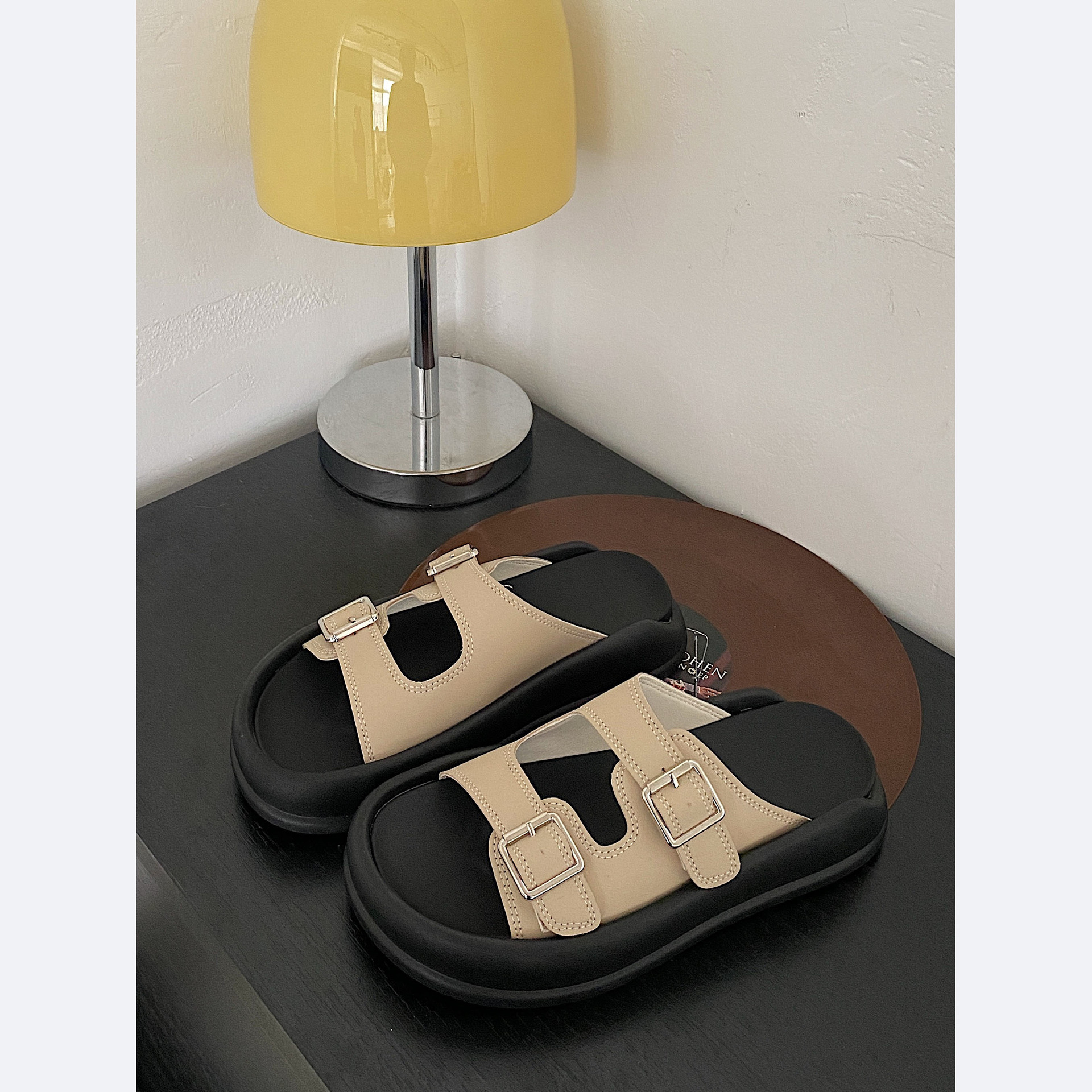 인터넷 인기 블랙 올 매치 미끄럼 방지 슬리퍼 여성용 여름 겉옷 2023 새로운 슈퍼 인기 유행 비치 샌들