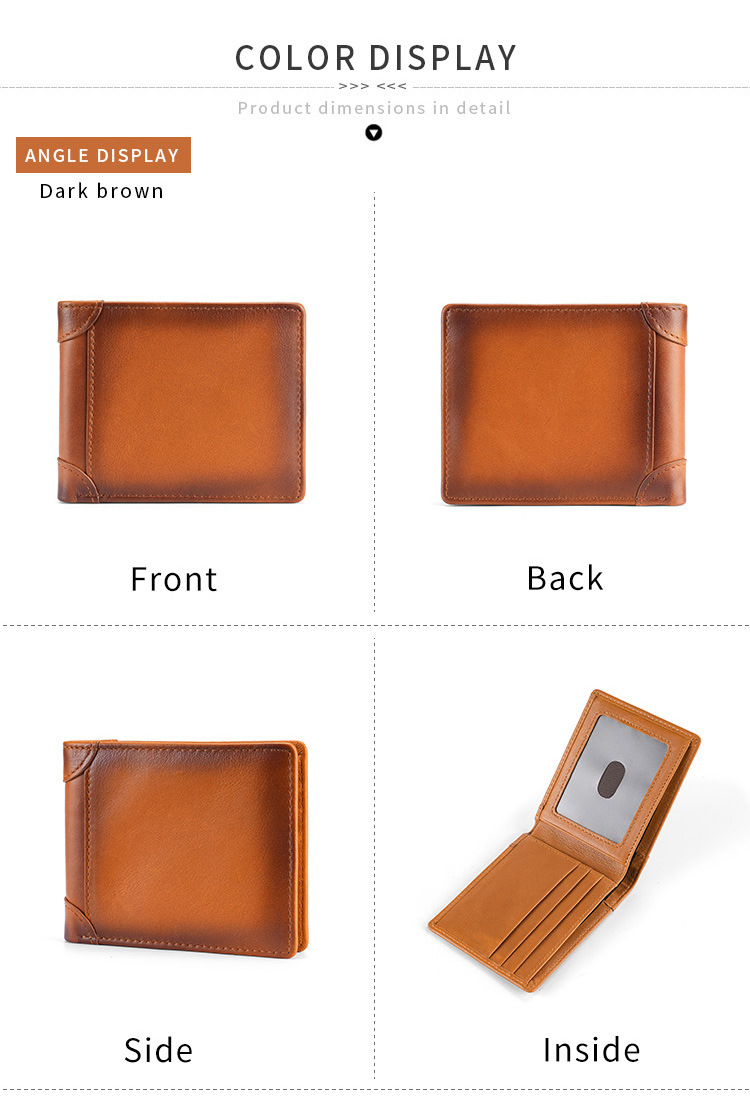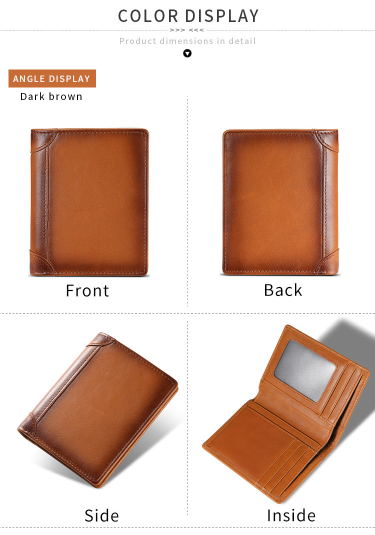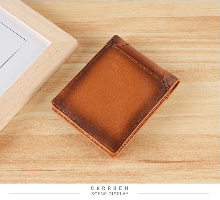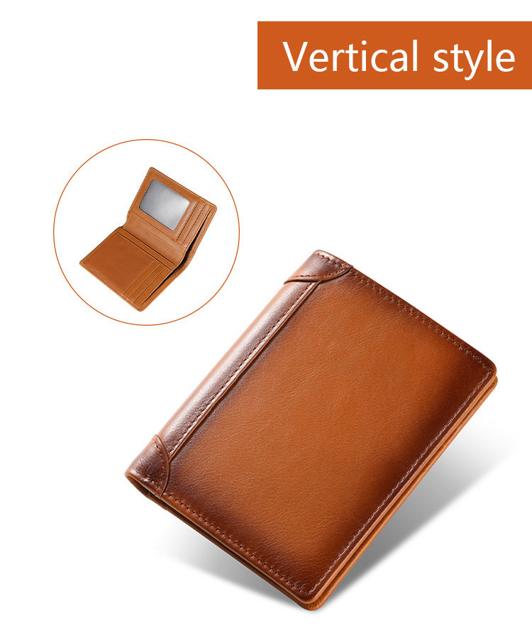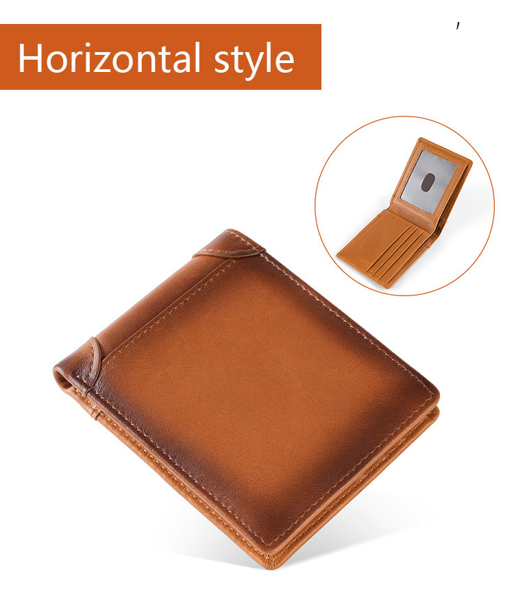 대비 컬러 오일 왁스 가죽 짧은 지갑 남성용 헤드 레이어 소가죽 가로 및 세로 머니 클립 빈티지 컬러 멀티 카드 머니 세트스토어 가기