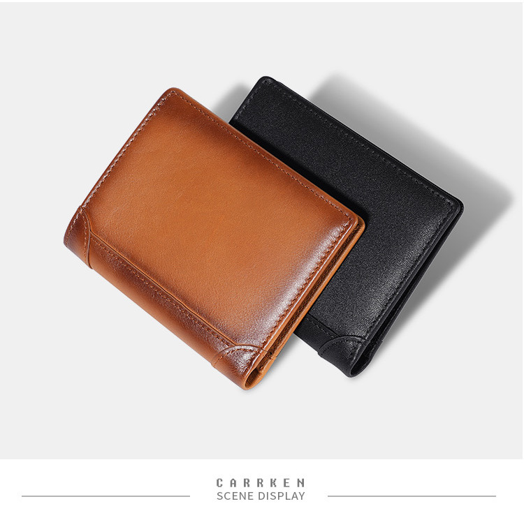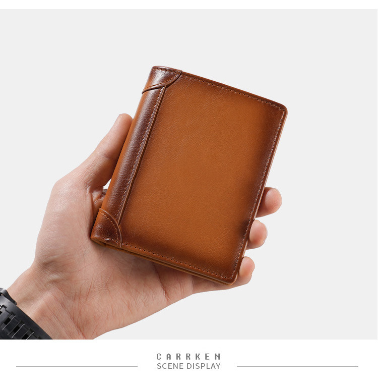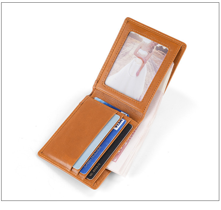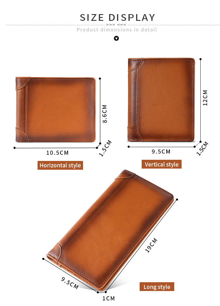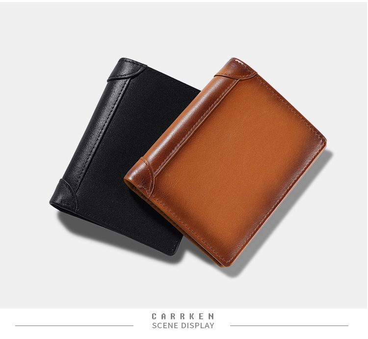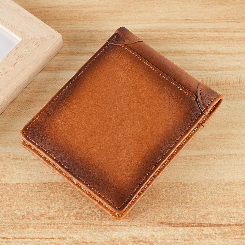대비 컬러 오일 왁스 가죽 짧은 지갑 남성용 헤드 레이어 소가죽 가로 및 세로 머니 클립 빈티지 컬러 멀티 카드 머니 세트스토어 가기