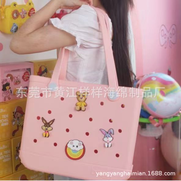 재고 EVA 비치 백 인쇄 바구니 구멍 큰 가방 해변 보관 가방 여성용 핸드백스토어 가기