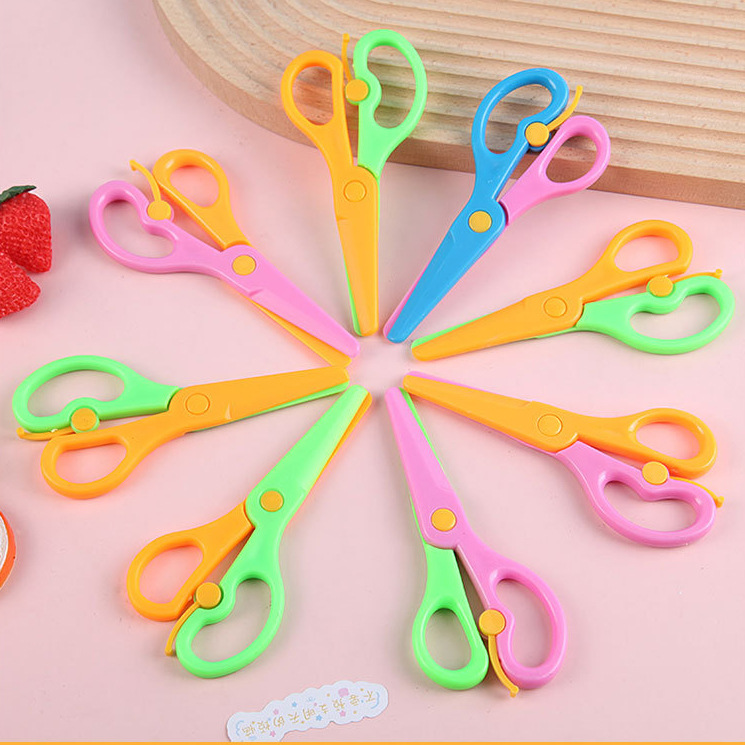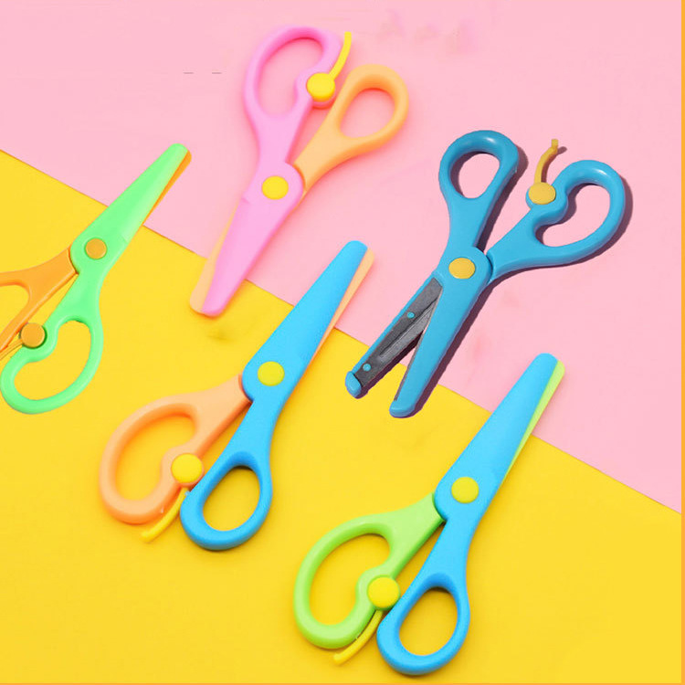스프링 안전 가위 유치원 DIY 종이 컷 아트 가위 어린이 플라스틱 가위 초등학교 문구 도매