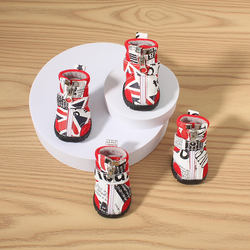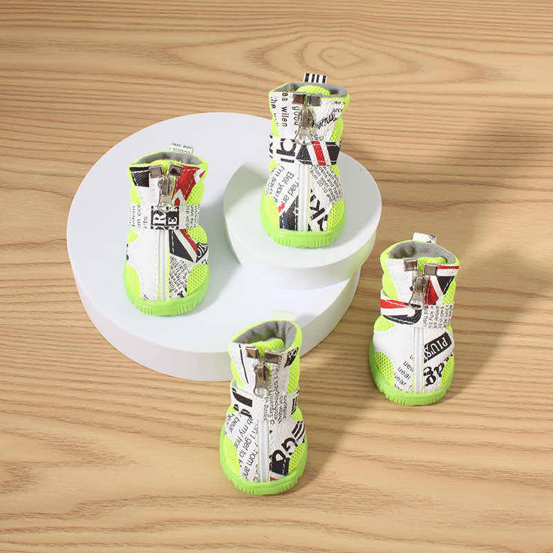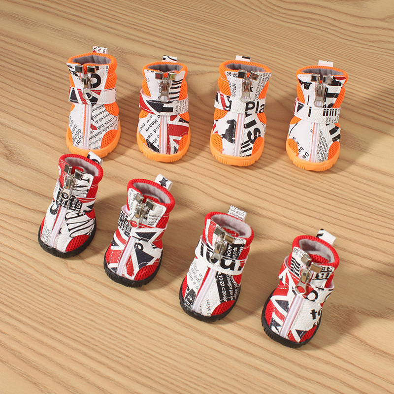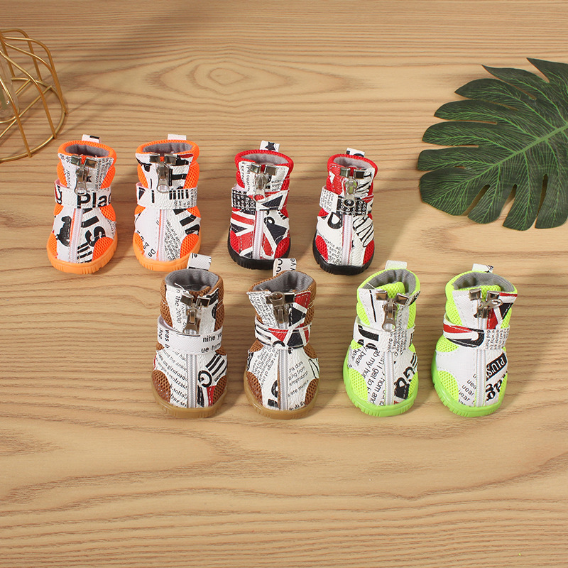 애완견 신발, 중소형견 테디 비숑 부드러운 밑창 신발, 넘어짐 방지 통기성 신발, 지퍼 샌들, 넘어짐 방지