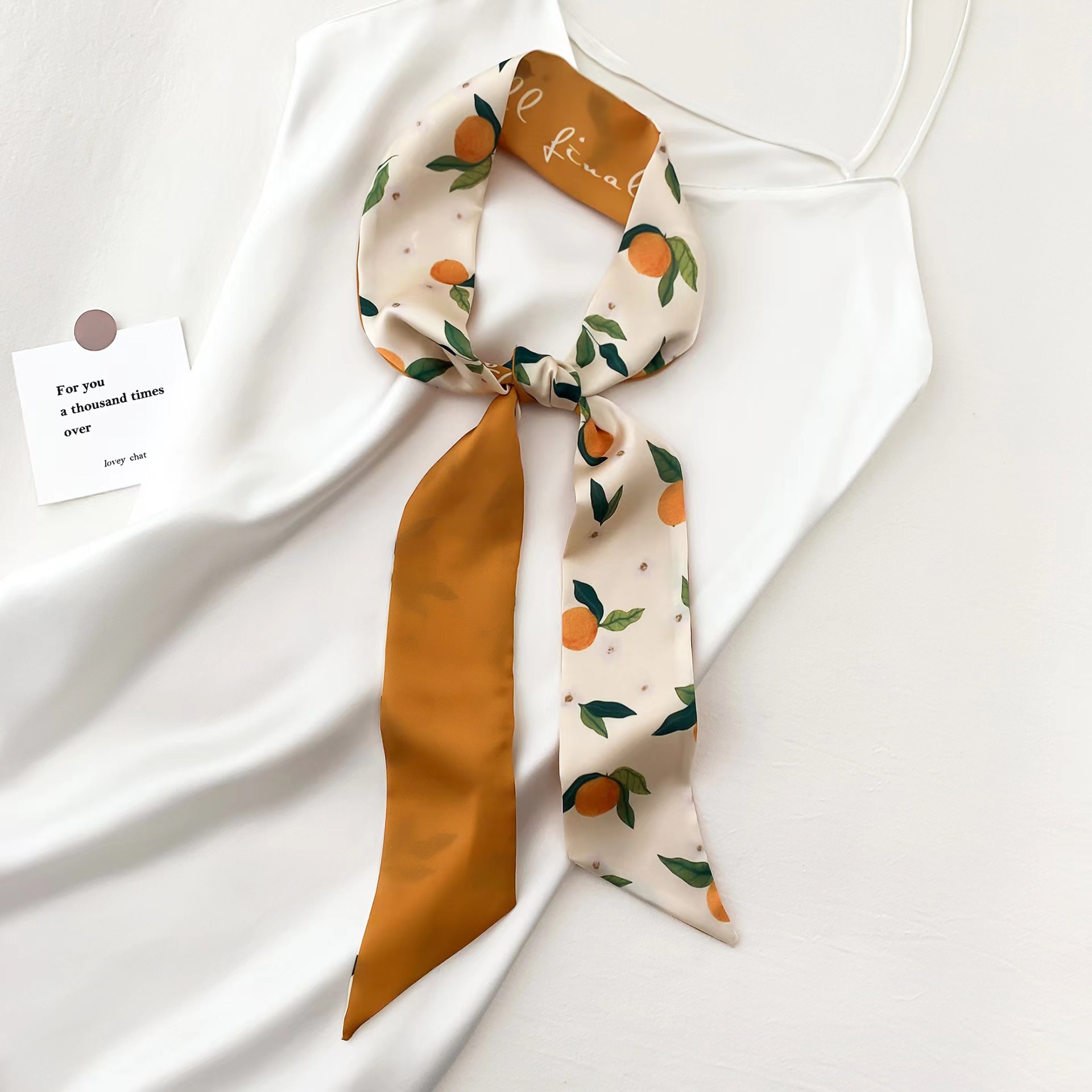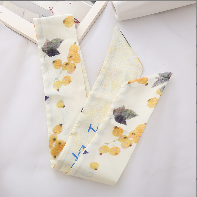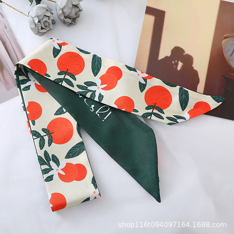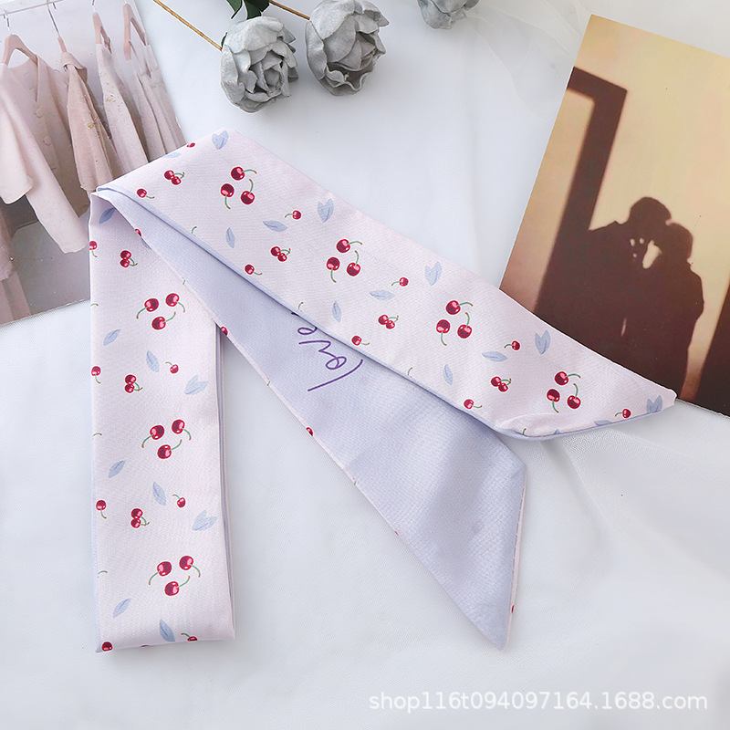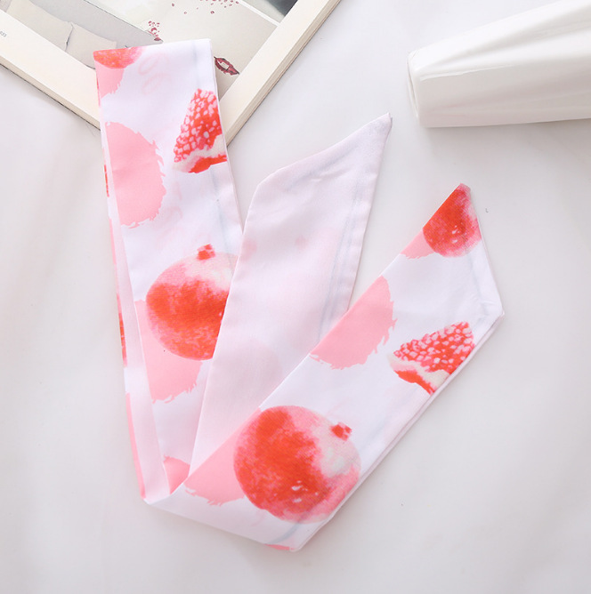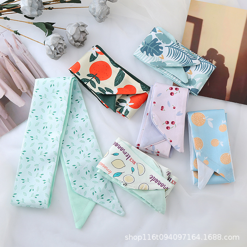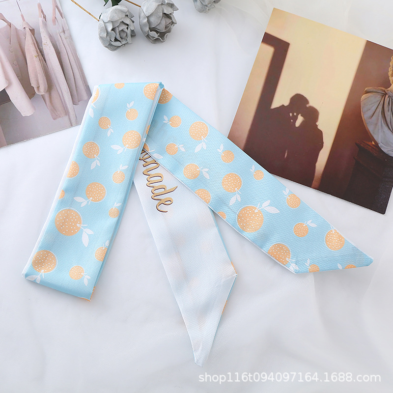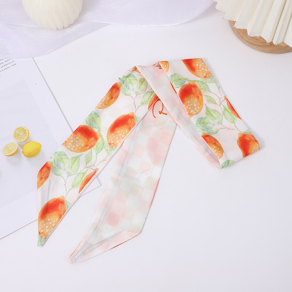과일 작은 스카프 스키니 스트립 헤어 밴드 귀여운 작은 스카프 인터넷 연예인 양면 인쇄 헤어 액세서리 모든 매치 모자 리본