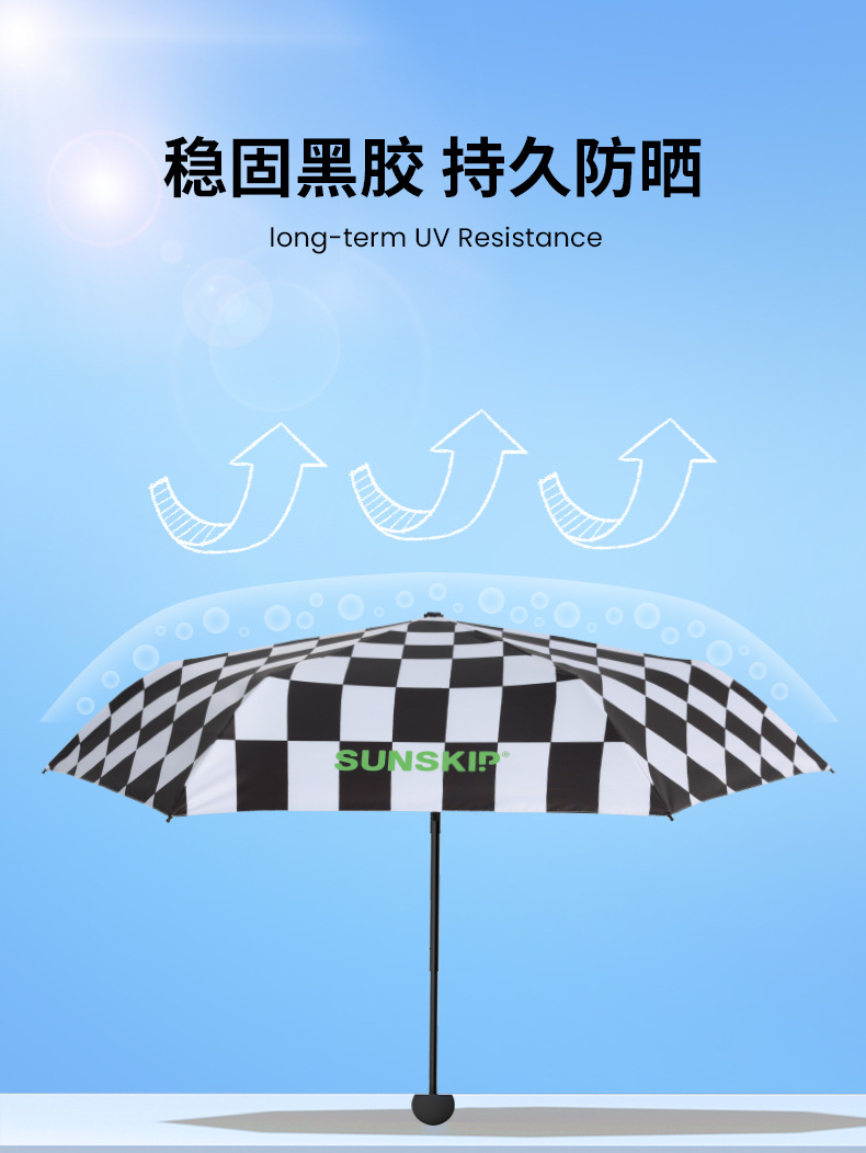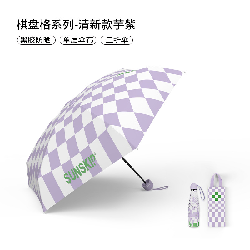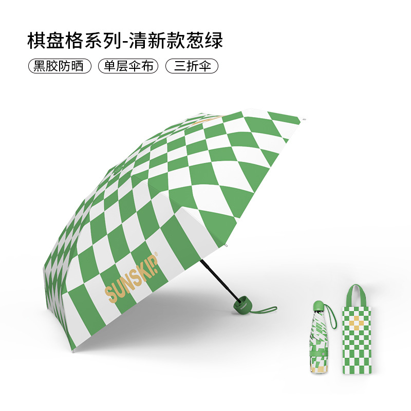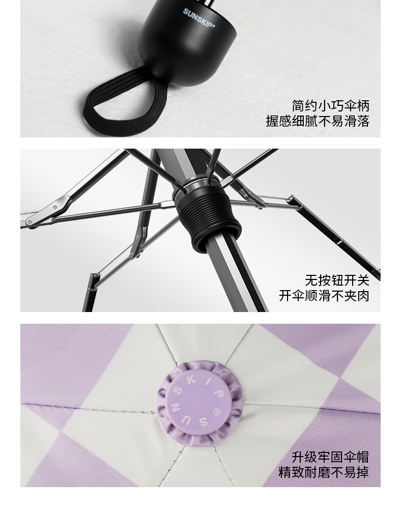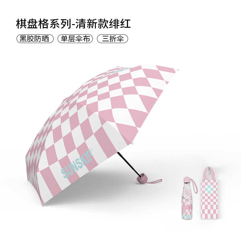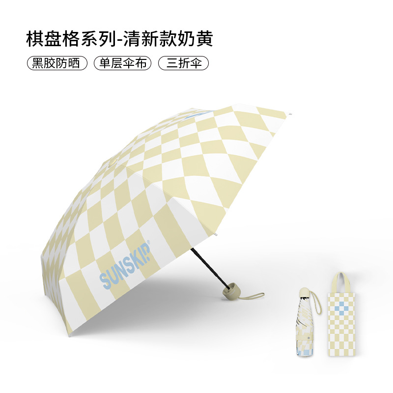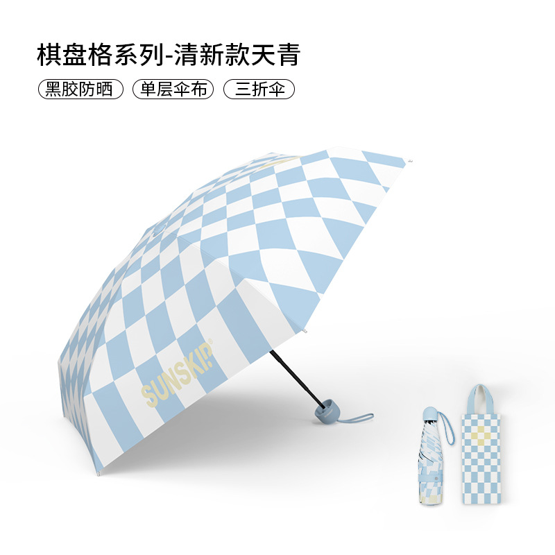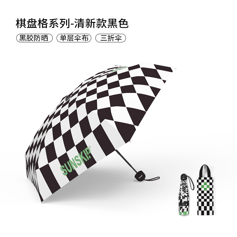 SUNSKIP 선샤인 점프 바둑판 트리플 폴드 6 본 울트라 라이트 우산 블랙 접착제 태양 보호 자외선 차단 야외 양산 우산스토어 가기