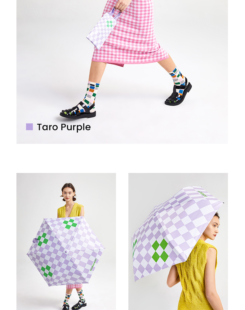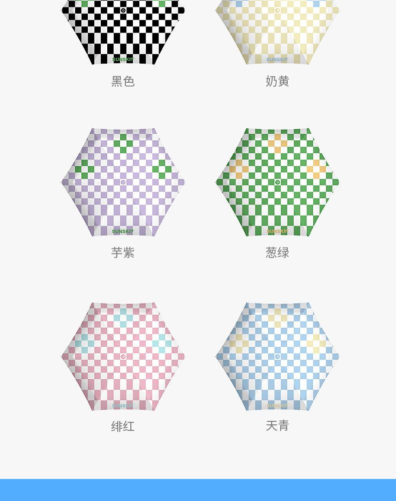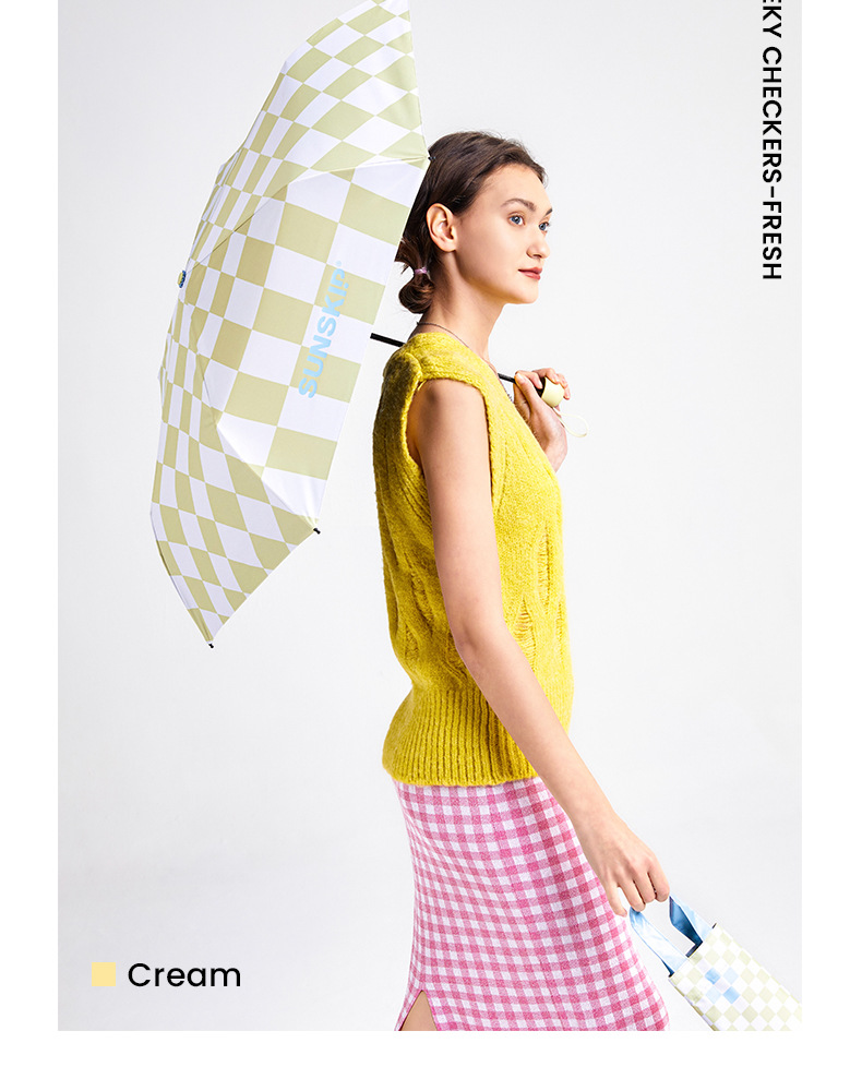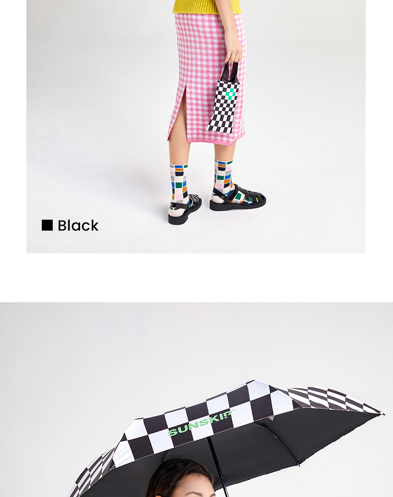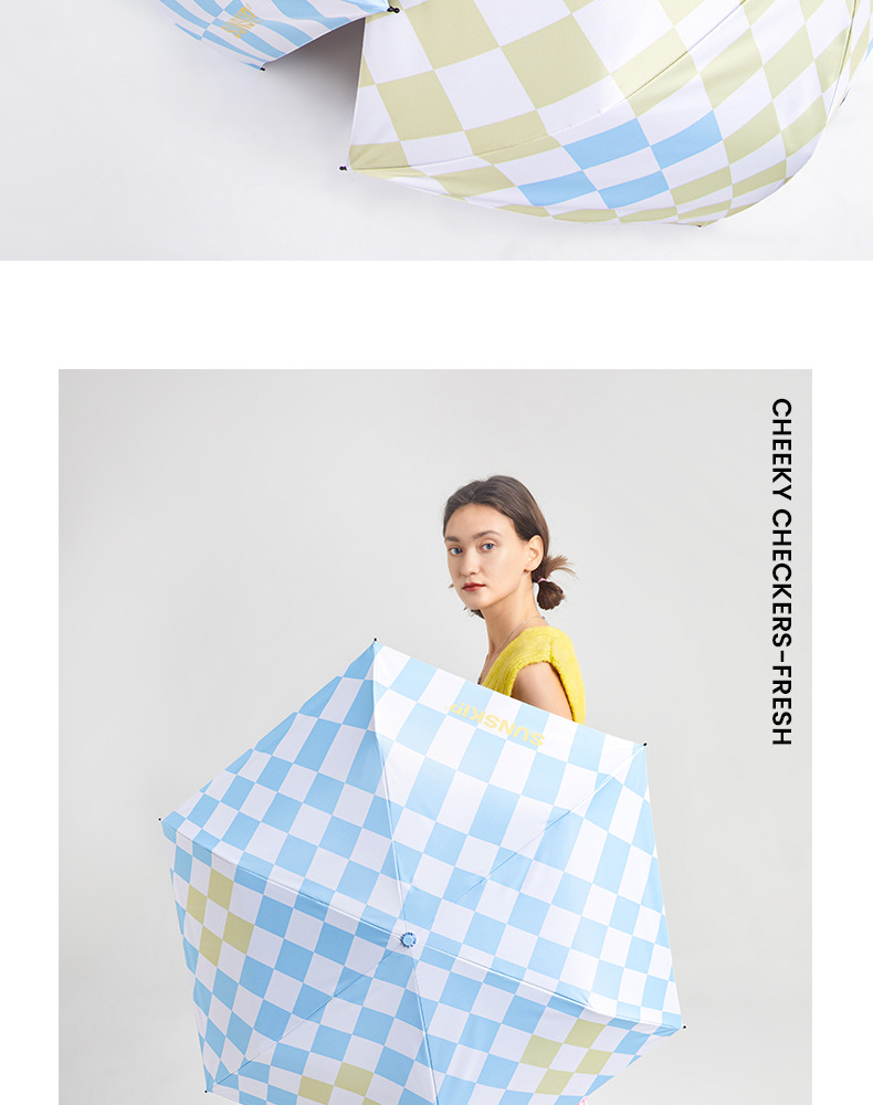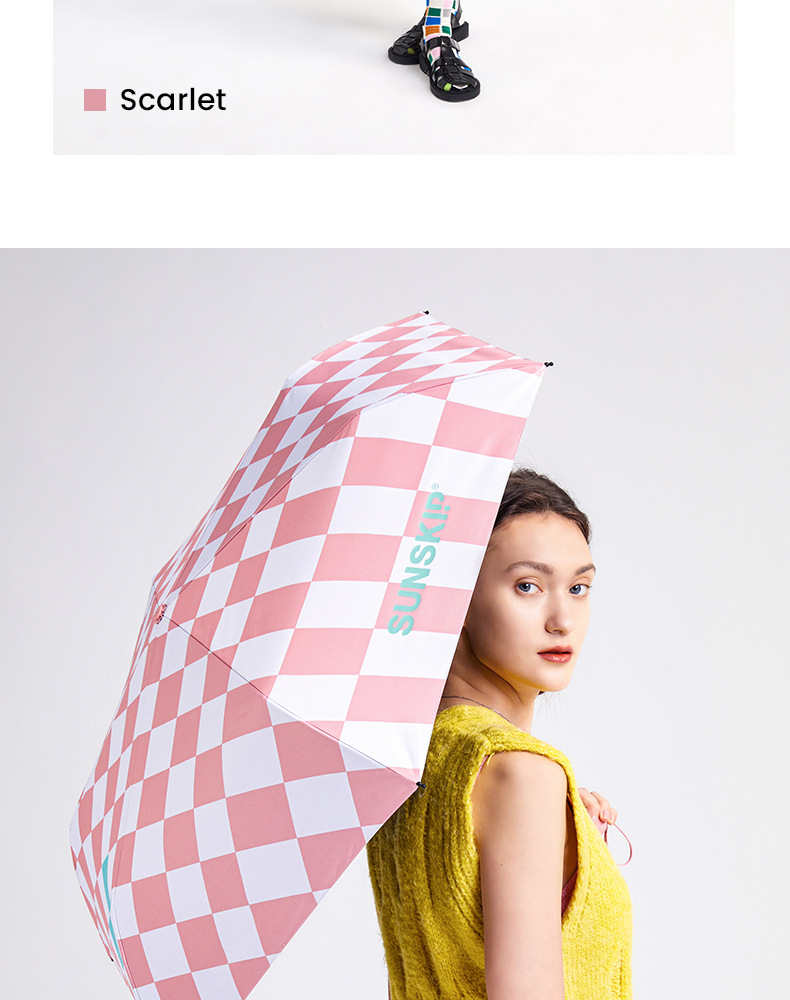 SUNSKIP 선샤인 점프 바둑판 트리플 폴드 6 본 울트라 라이트 우산 블랙 접착제 태양 보호 자외선 차단 야외 양산 우산스토어 가기