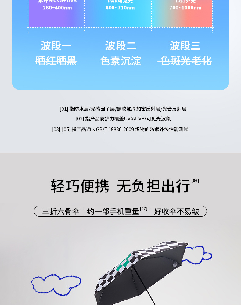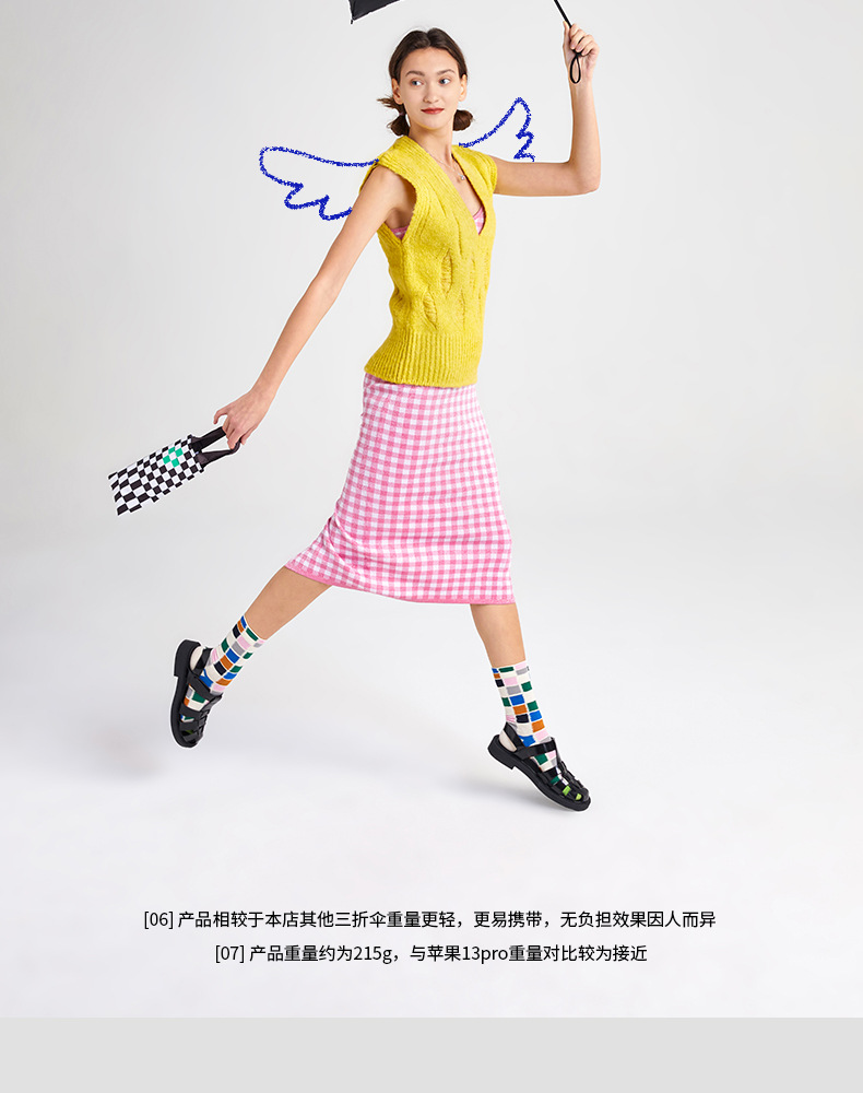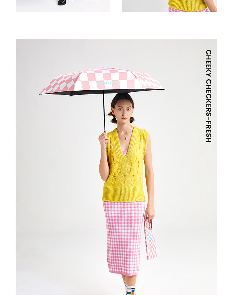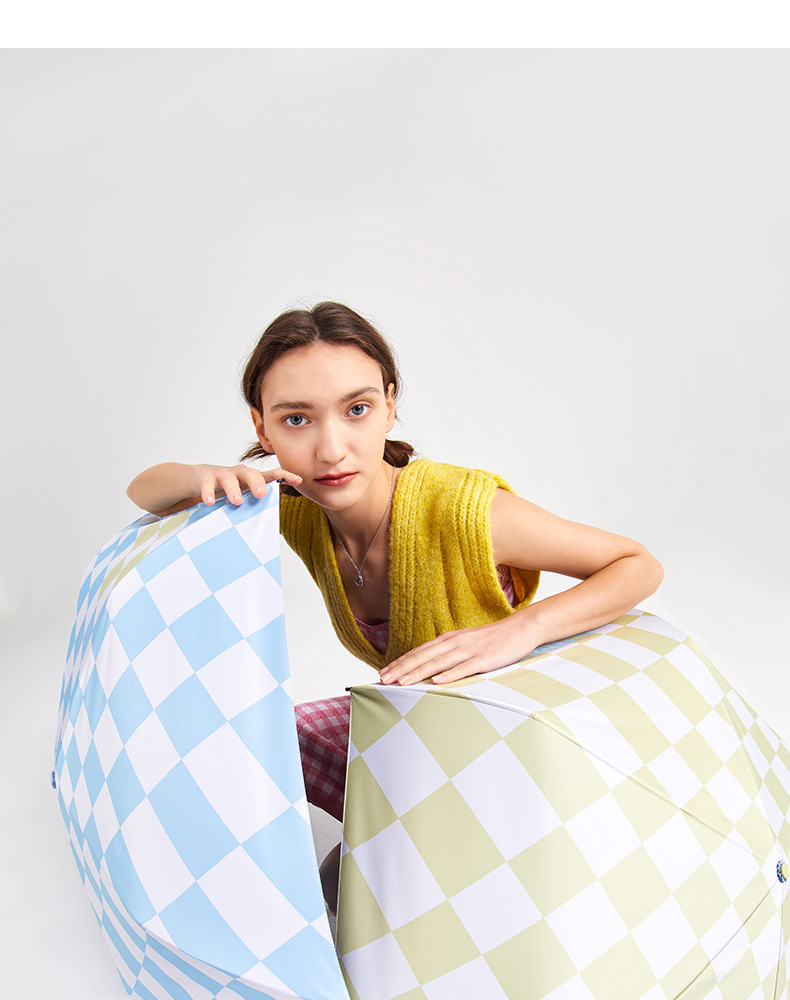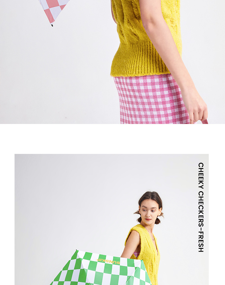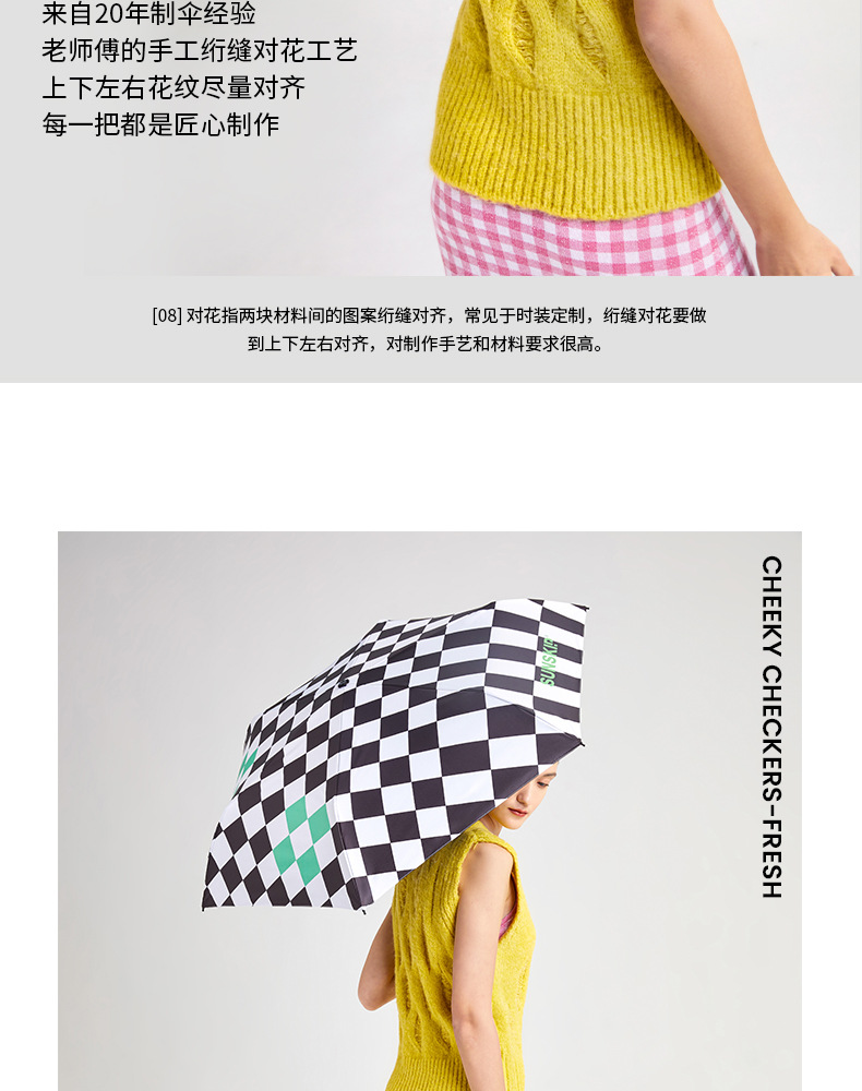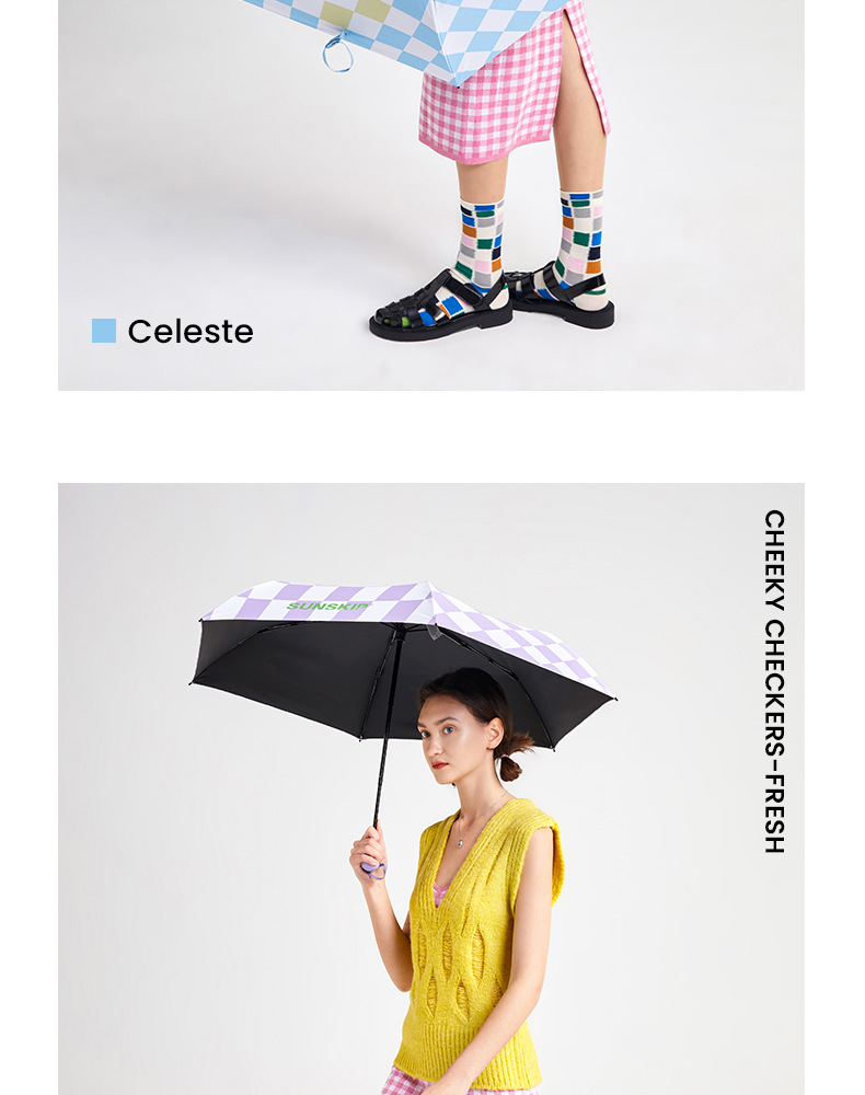 SUNSKIP 선샤인 점프 바둑판 트리플 폴드 6 본 울트라 라이트 우산 블랙 접착제 태양 보호 자외선 차단 야외 양산 우산스토어 가기