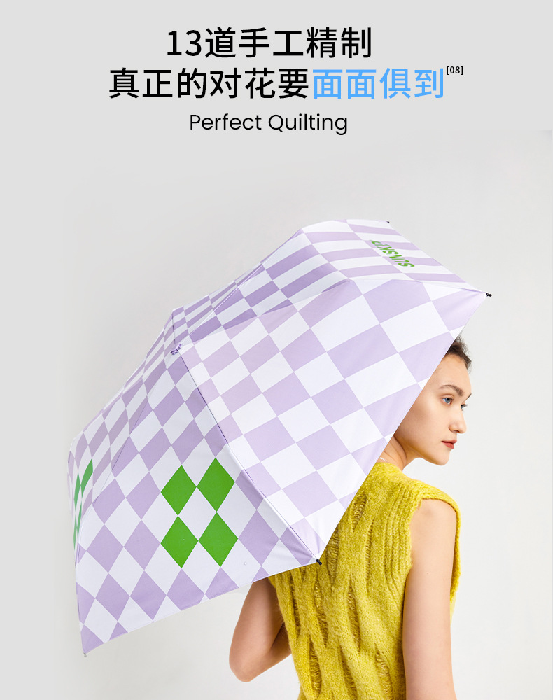 SUNSKIP 선샤인 점프 바둑판 트리플 폴드 6 본 울트라 라이트 우산 블랙 접착제 태양 보호 자외선 차단 야외 양산 우산