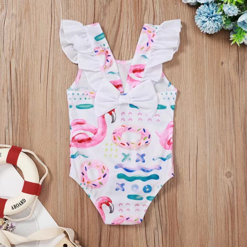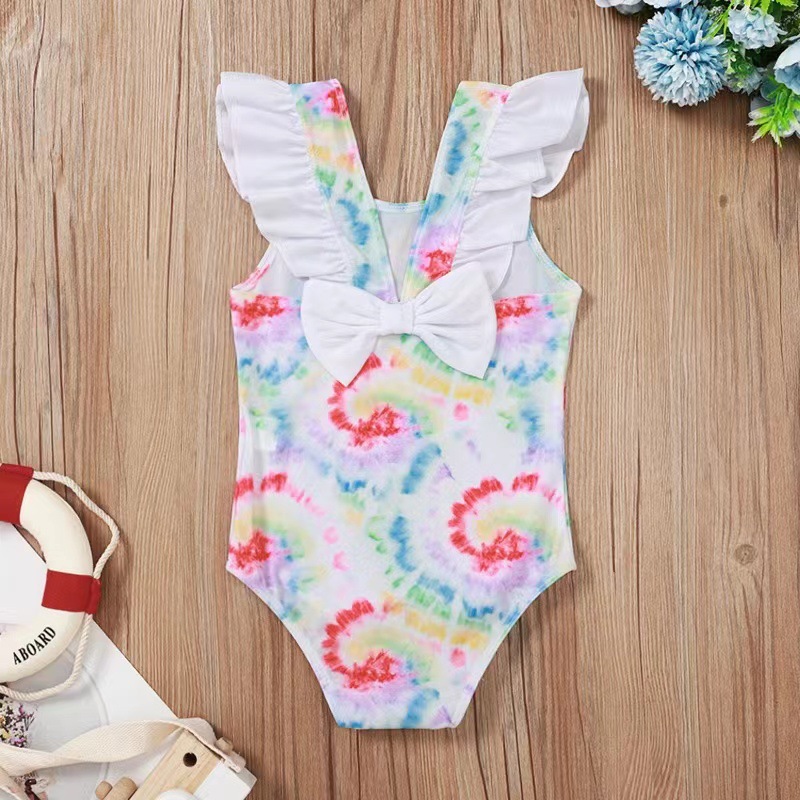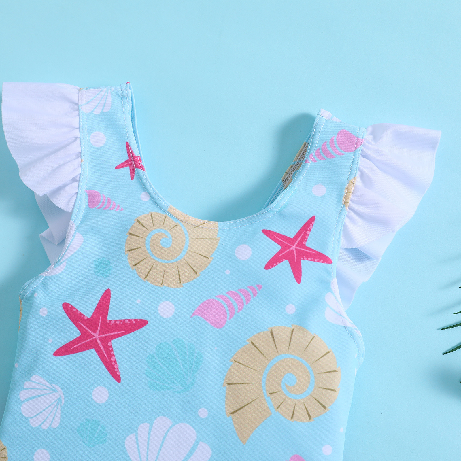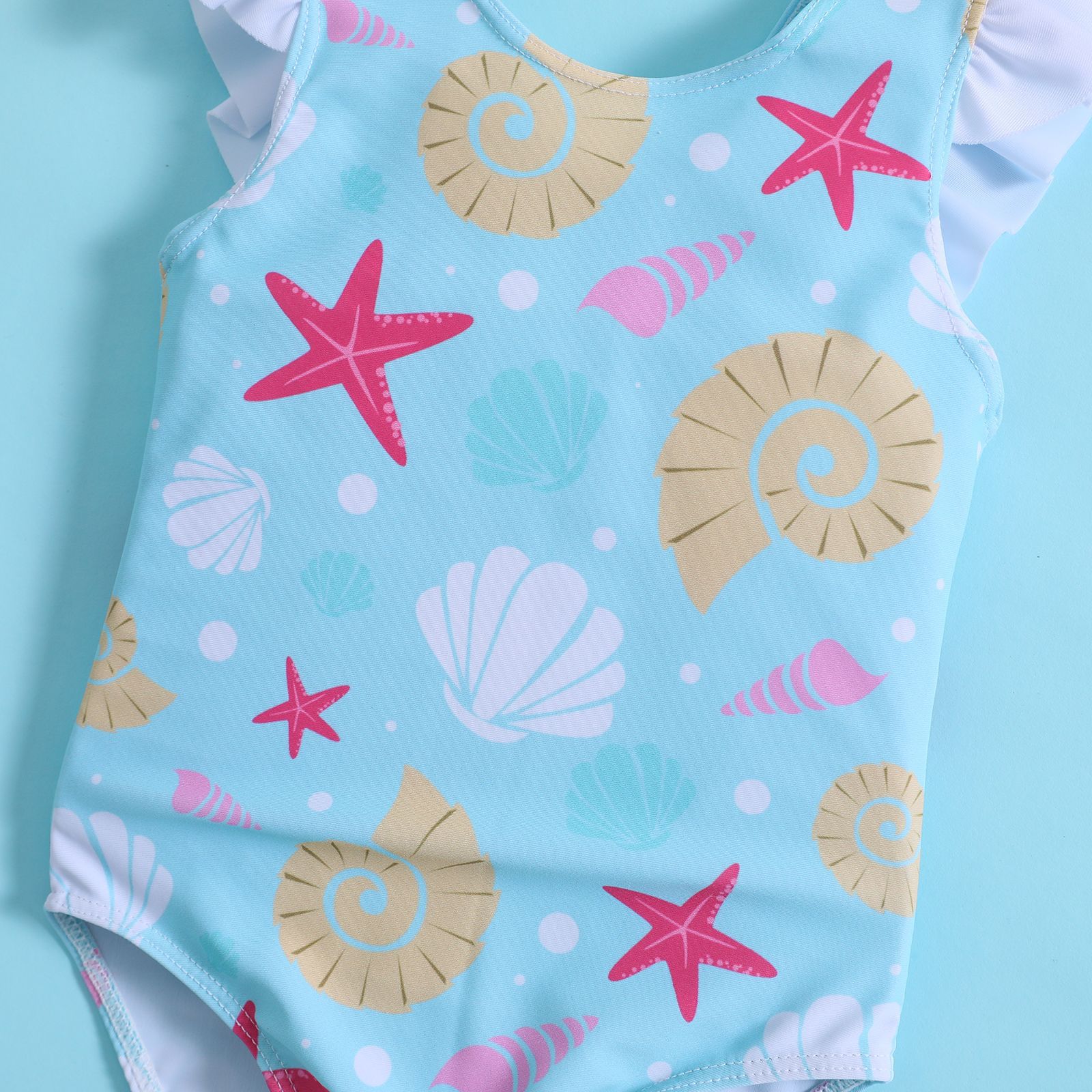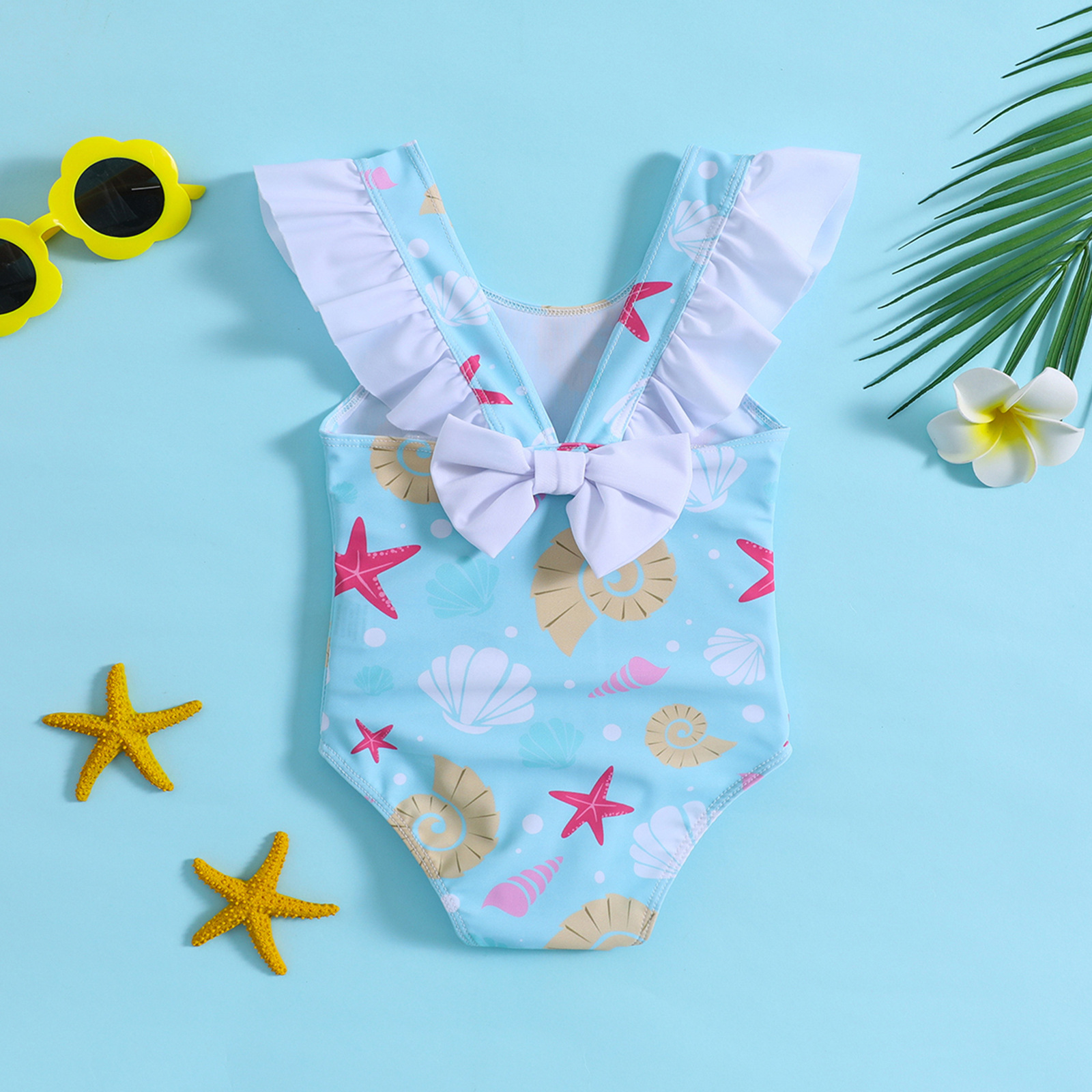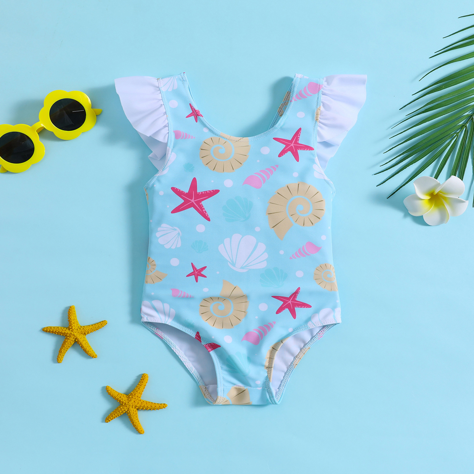 어린이와 아기 소녀를위한 국경 간 대외 무역 불가사리 껍질 인쇄 결합 연꽃 잎 활 수영복