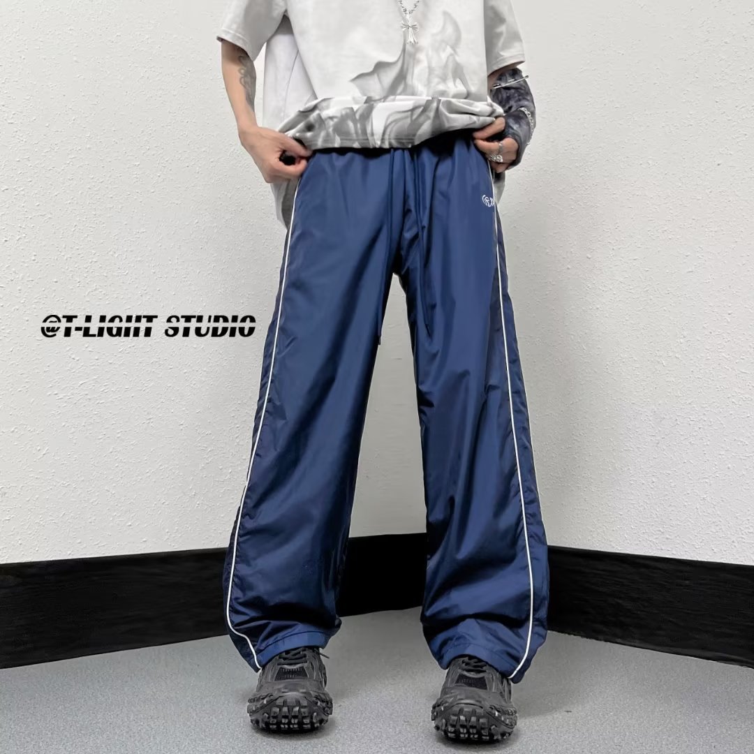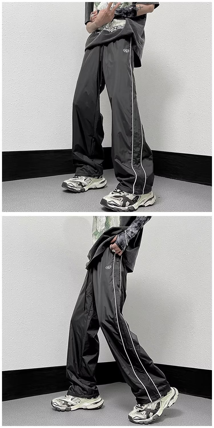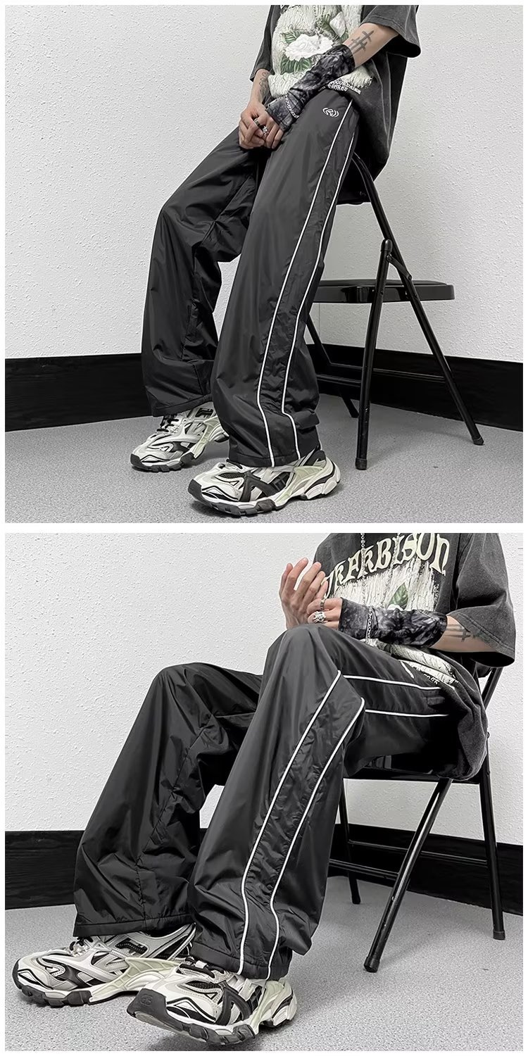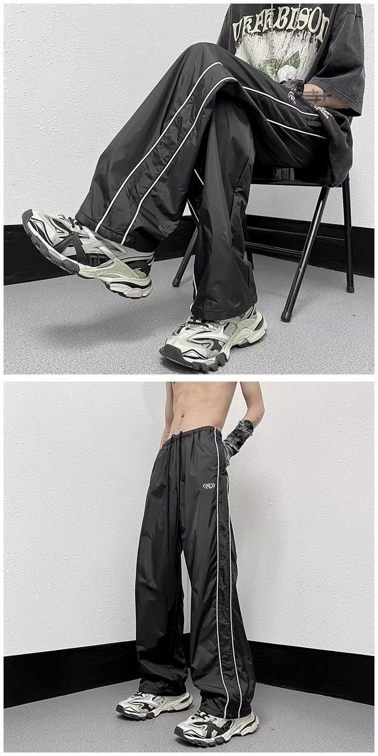 미국 기능성 충전 바지 야외 방수 바지 남성용 아메리칸 하이 스트리트 바이브 아이스 실크 와이드 레그 팬츠 스트라이프 캐주얼 바지