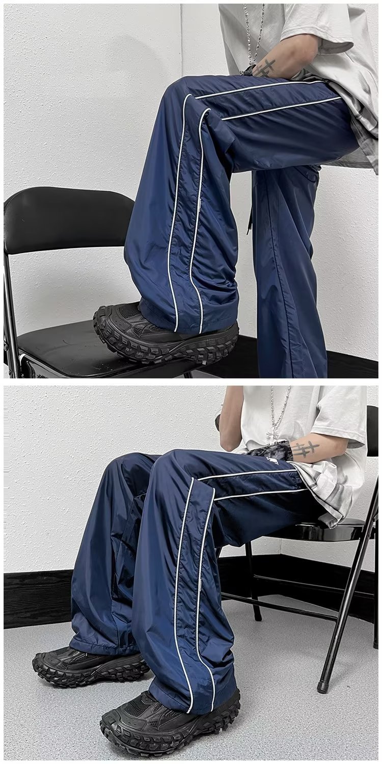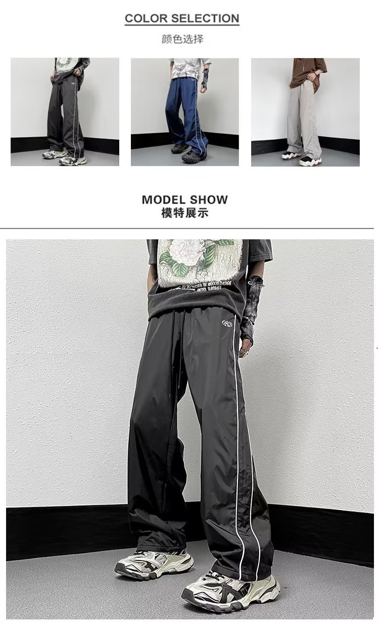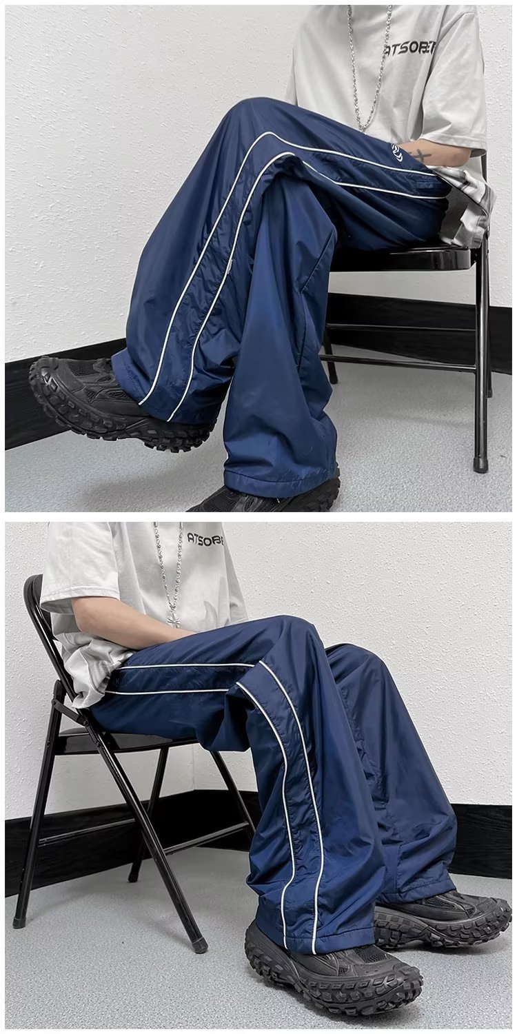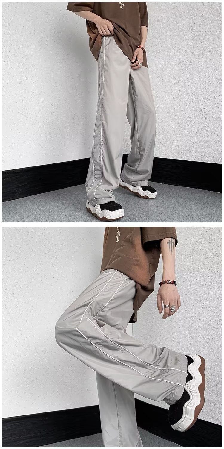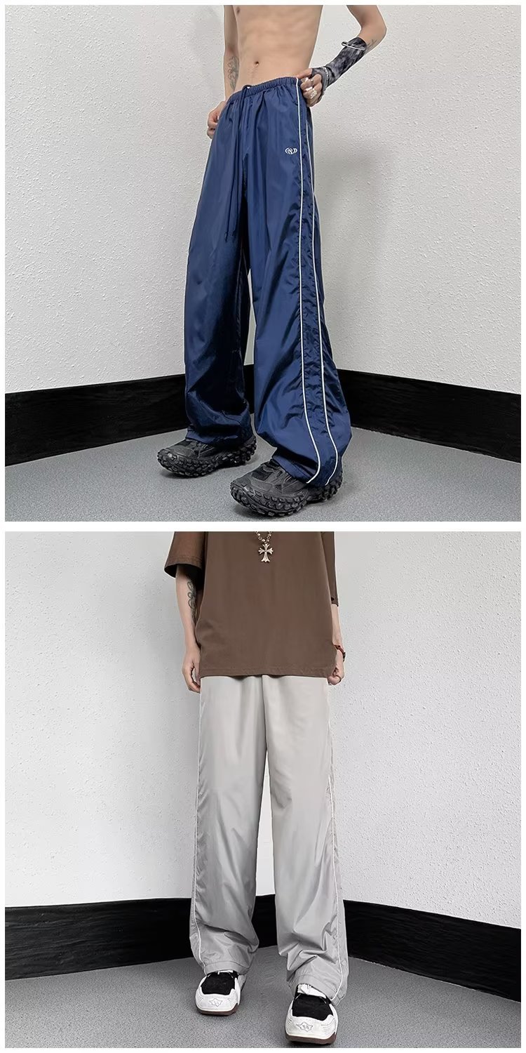 미국 기능성 충전 바지 야외 방수 바지 남성용 아메리칸 하이 스트리트 바이브 아이스 실크 와이드 레그 팬츠 스트라이프 캐주얼 바지