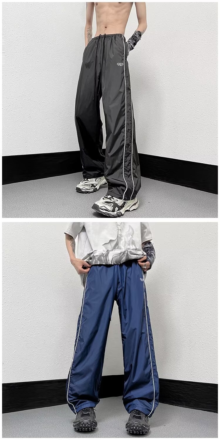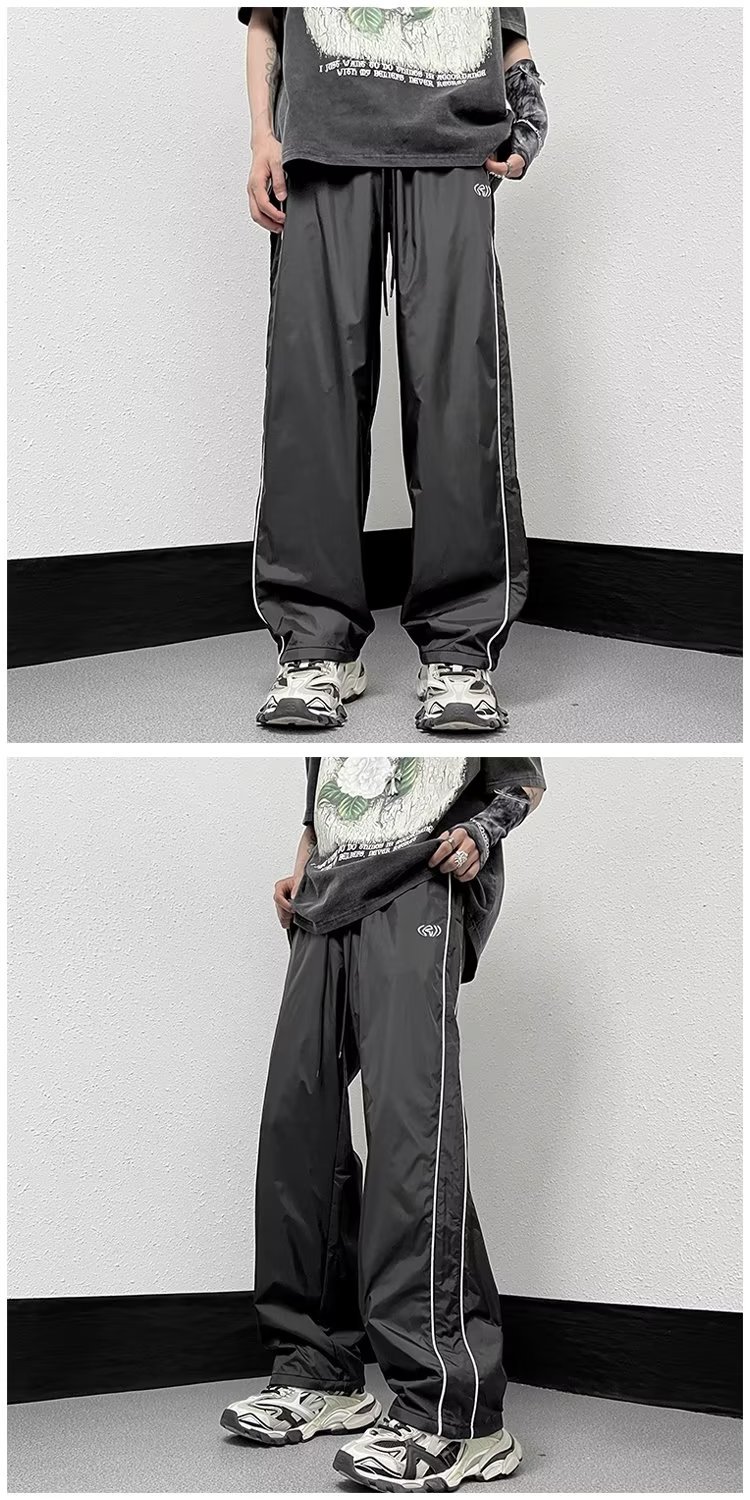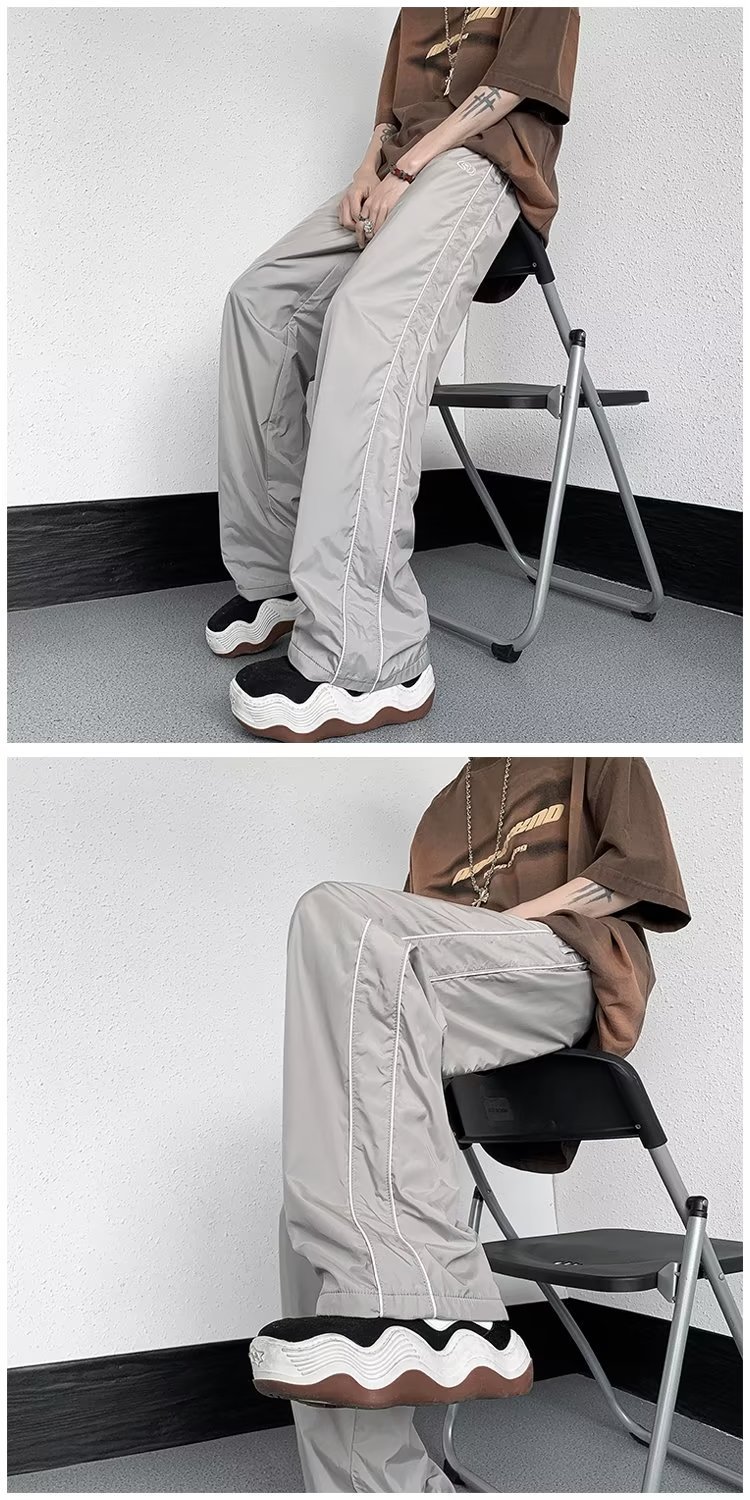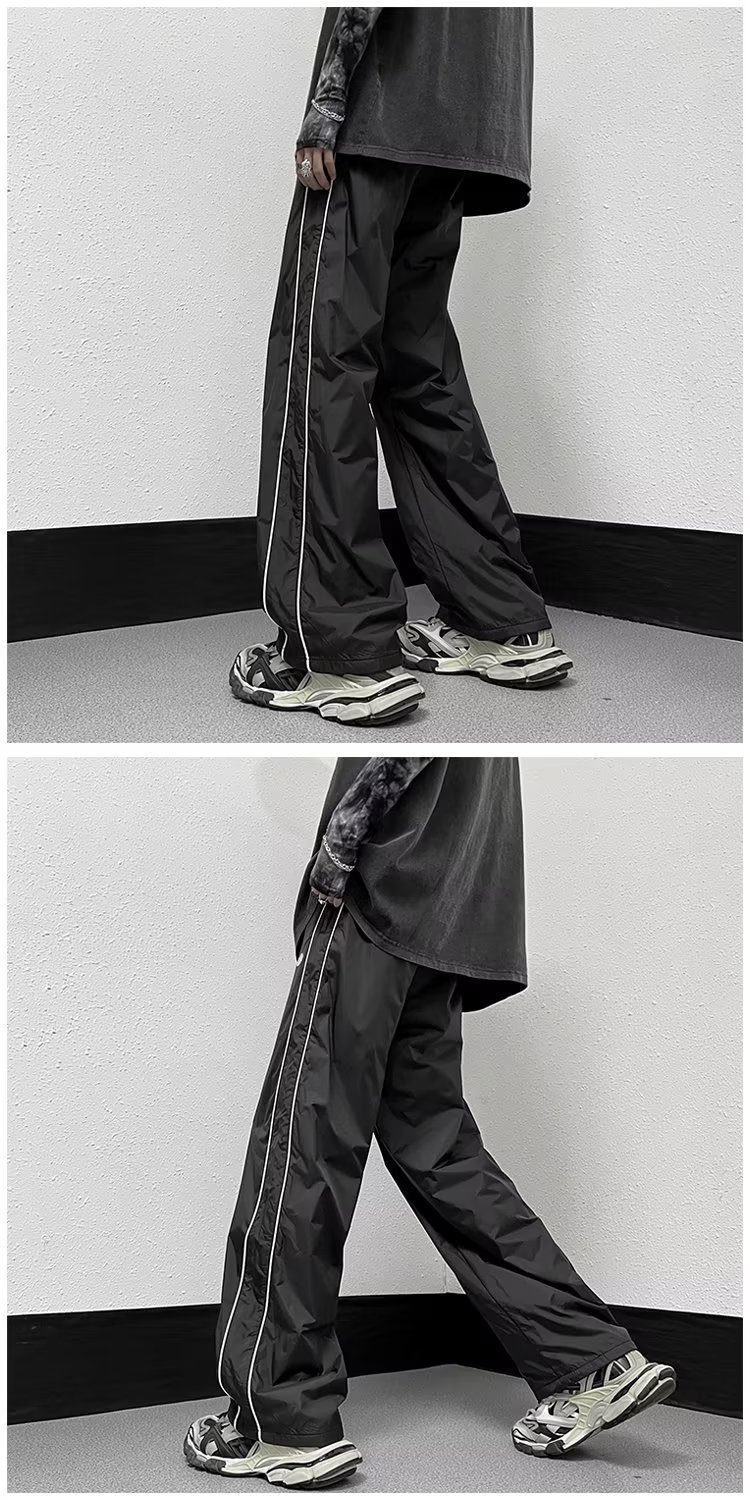 미국 기능성 충전 바지 야외 방수 바지 남성용 아메리칸 하이 스트리트 바이브 아이스 실크 와이드 레그 팬츠 스트라이프 캐주얼 바지