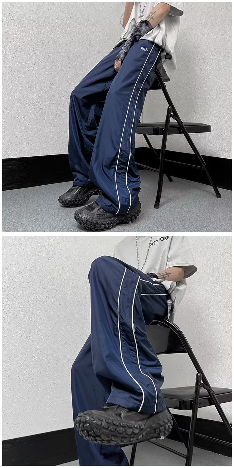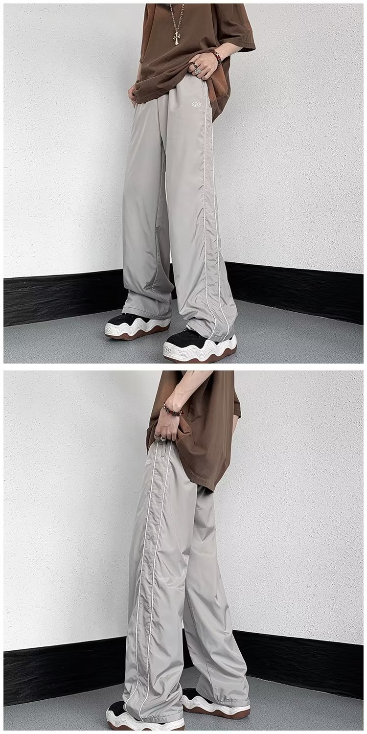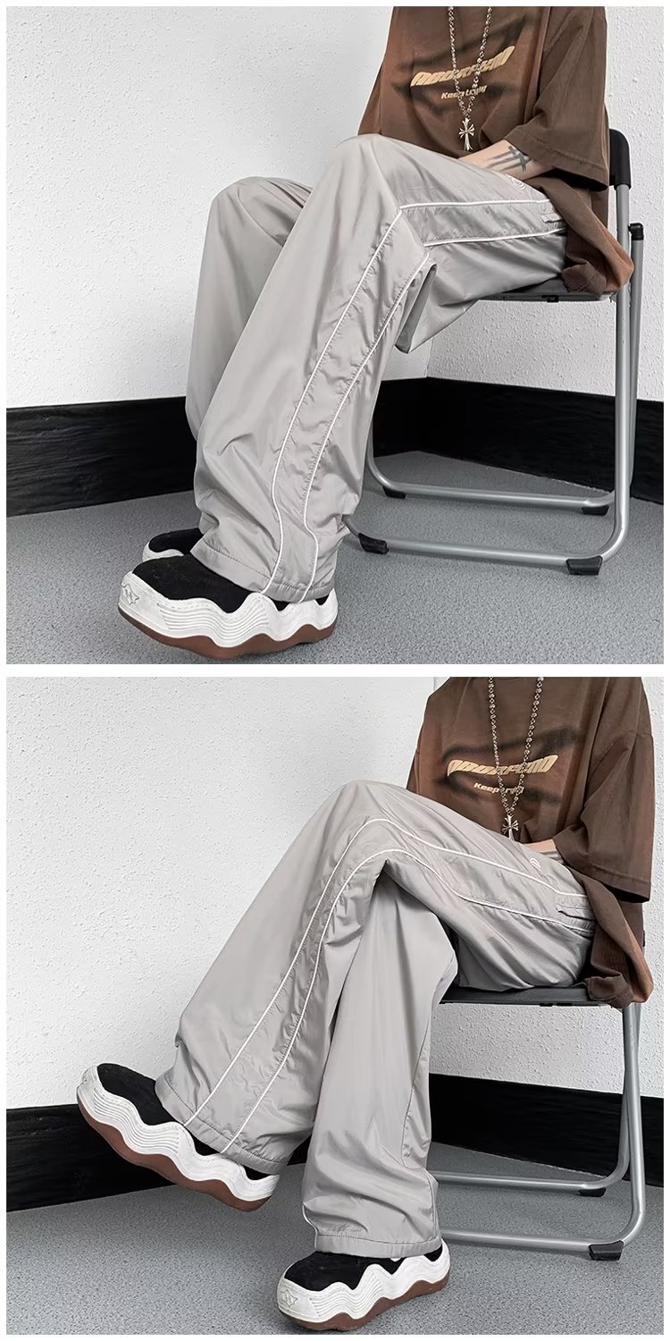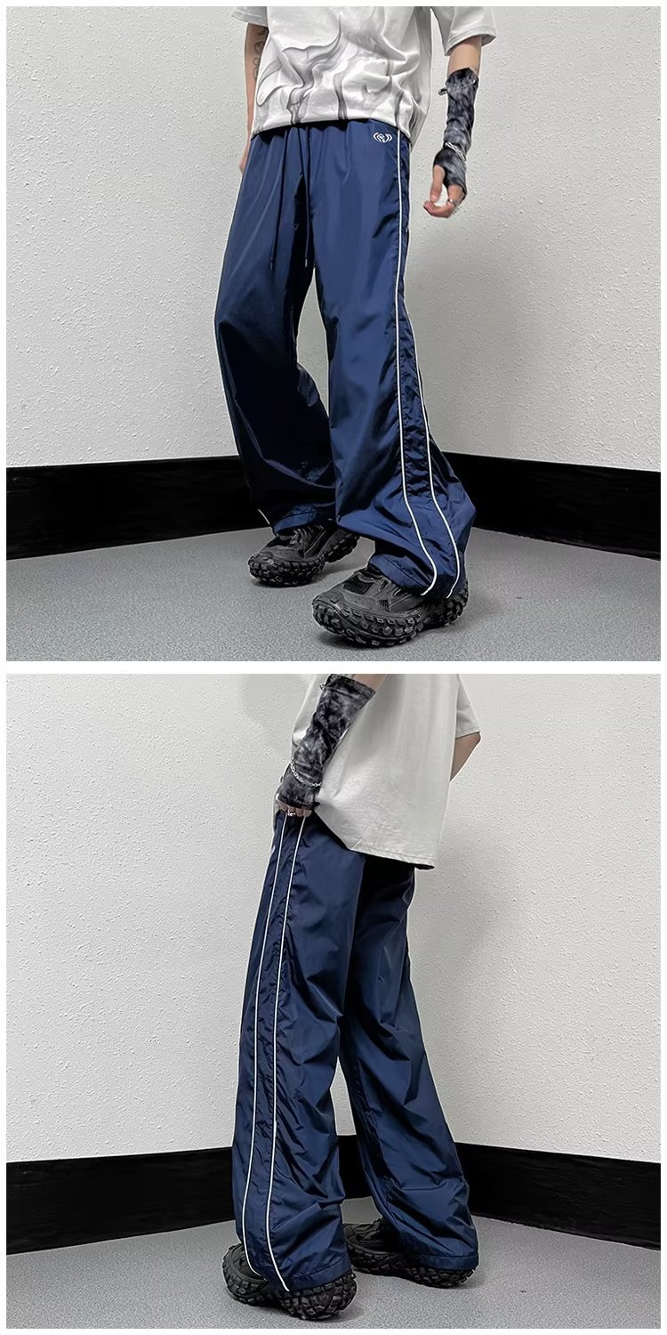 미국 기능성 충전 바지 야외 방수 바지 남성용 아메리칸 하이 스트리트 바이브 아이스 실크 와이드 레그 팬츠 스트라이프 캐주얼 바지