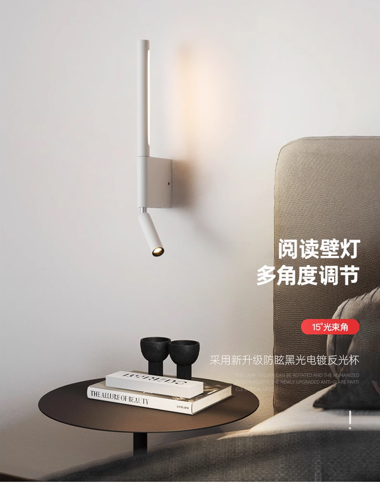 북유럽 미니멀리스트 침실 침대 옆 램프 간단한 현대 독서 램프 미니멀리스트 홈스테이 호텔 연구 조정 가능한 회전 벽 램프